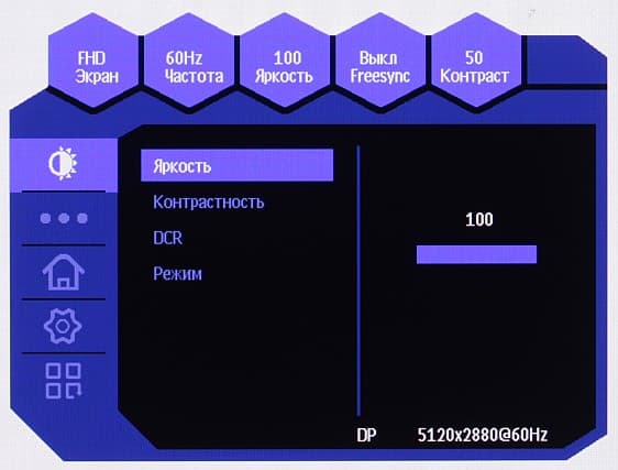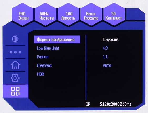 В данном мониторе реализована поддержка технологии AMD FreeSync (в варианте VRR и Adaptive-Sync) как минимум по входам DisplayPort и HDMI. Диапазон поддерживаемых частот, который указывается на панели настроек видеокарты, равен 48—60 Гц для режимов с частотой обновления 60 Гц. Для визуальной оценки мы использовали описанную в указанной статье тестовую утилиту. Включение FreeSync позволило получить изображение с плавным движением в кадре и без разрывов. С видеокартами Nvidia этот монитор поддерживает G-Sync в режиме G-Sync Compatible, но только по входу DisplayPort. В утилите G-Sync Pendulum Demo режим G-Sync включается, плавность без разрывов присутствует. Проверить вход USB-C на совместимость с FreeSync и G-Sync Compatible возможности не было.
