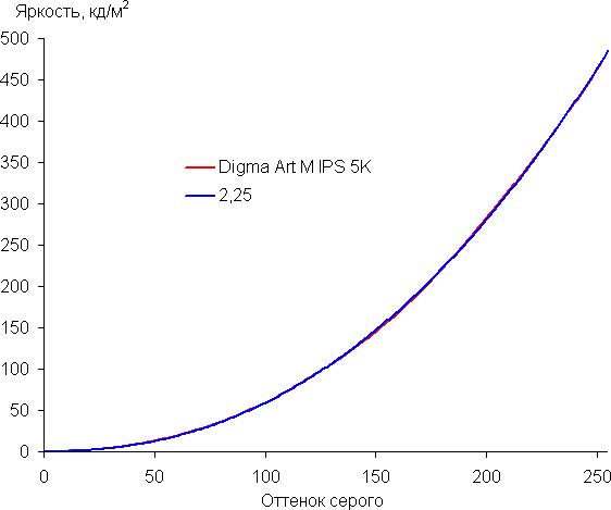 Аппроксимация полученной гамма-кривой дала показатель 2,25, что совсем немного выше стандартного значения 2,2, при этом реальная гамма-кривая мало отклоняется от аппроксимирующей степенной функции: