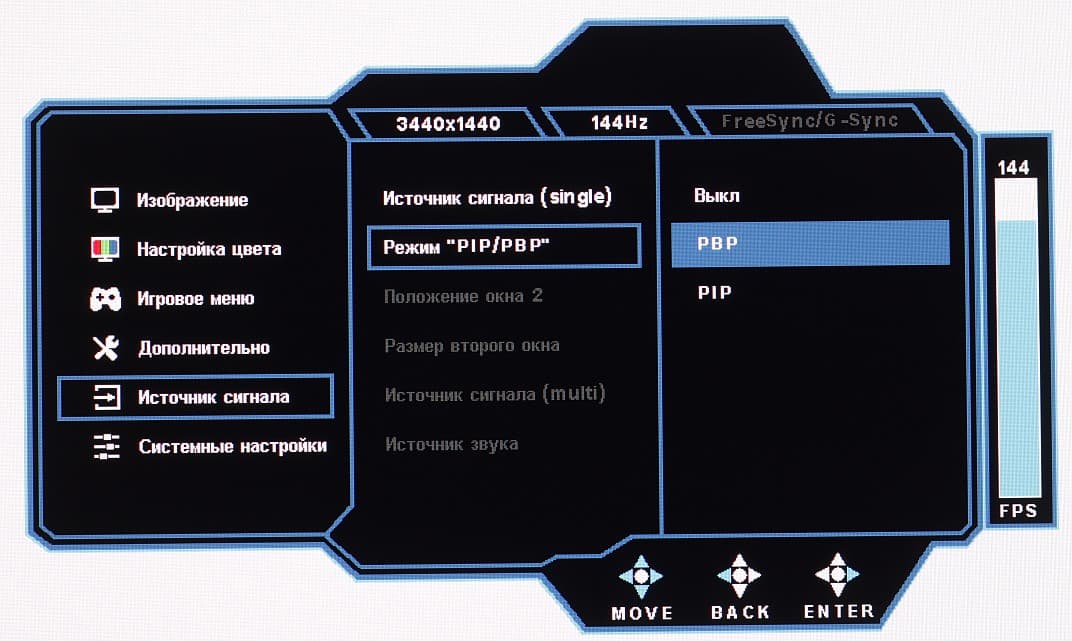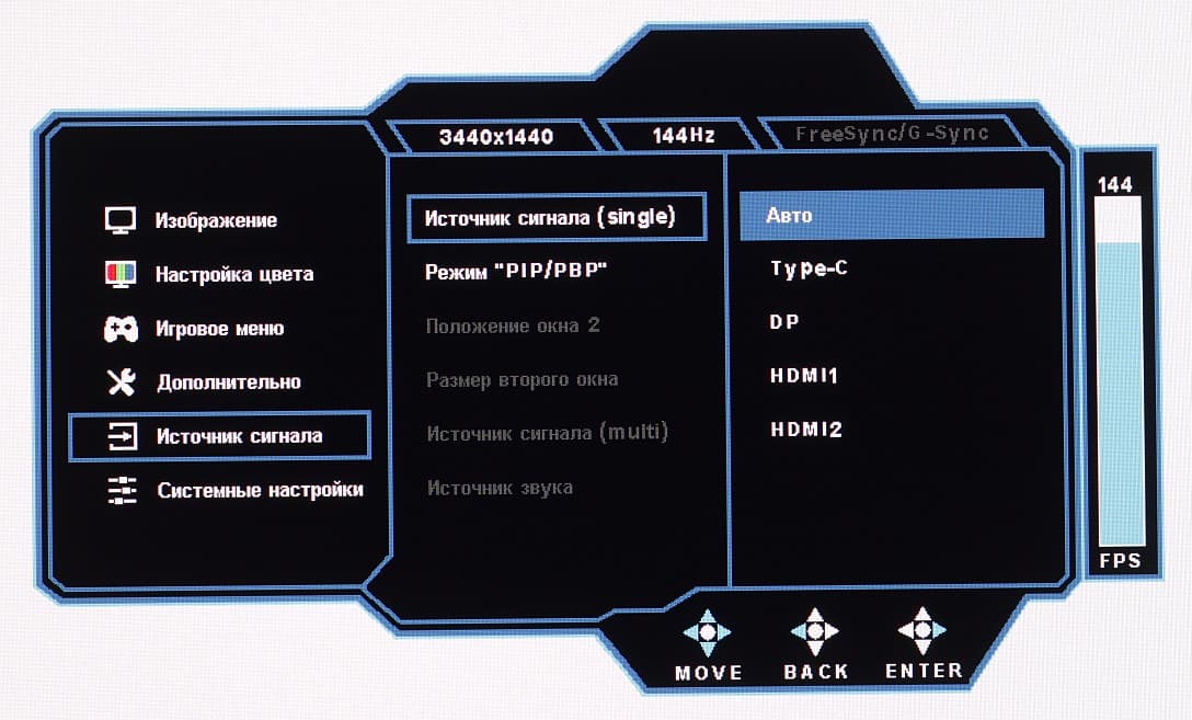 Только при подключении к компьютеру по DisplayPort поддерживается разрешение до 3440×1440 при 165 Гц кадровой частоты в режиме 10 бит на цвет на вход и без потери цветовой четкости. Как показали тесты, реальная частота обновления ниже, то есть при 165 Гц на вход часть кадров пропускается, что приводит к некоторым артефактам и т.д. По факту рабочая частота обновления – это 144 Гц максимум. При подключении по HDMI в разрешении 3440×1440 можно получить максимум 100 Гц кадровой частоты при 8 бит на цвет.
