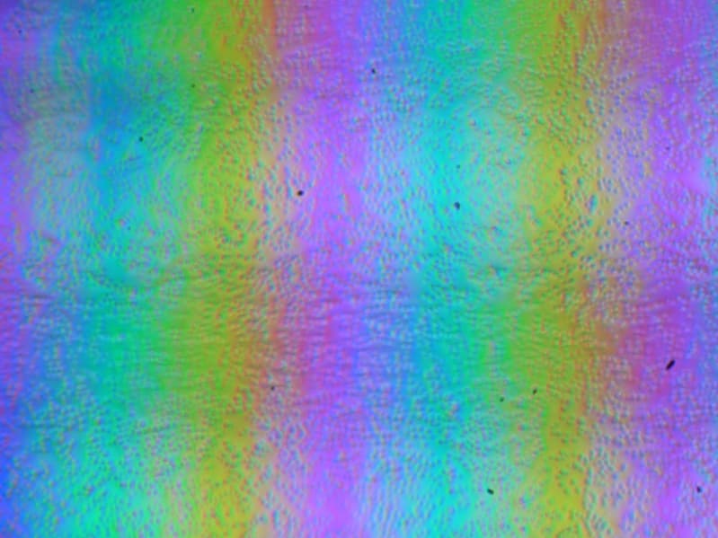 Зерно этих дефектов в несколько раз меньше размеров субпикселей, поэтому фокусировка на микродефектах и «перескок» фокуса по субпикселям при изменении угла зрения выражены слабо, из-за этого нет и «кристаллического» эффекта.