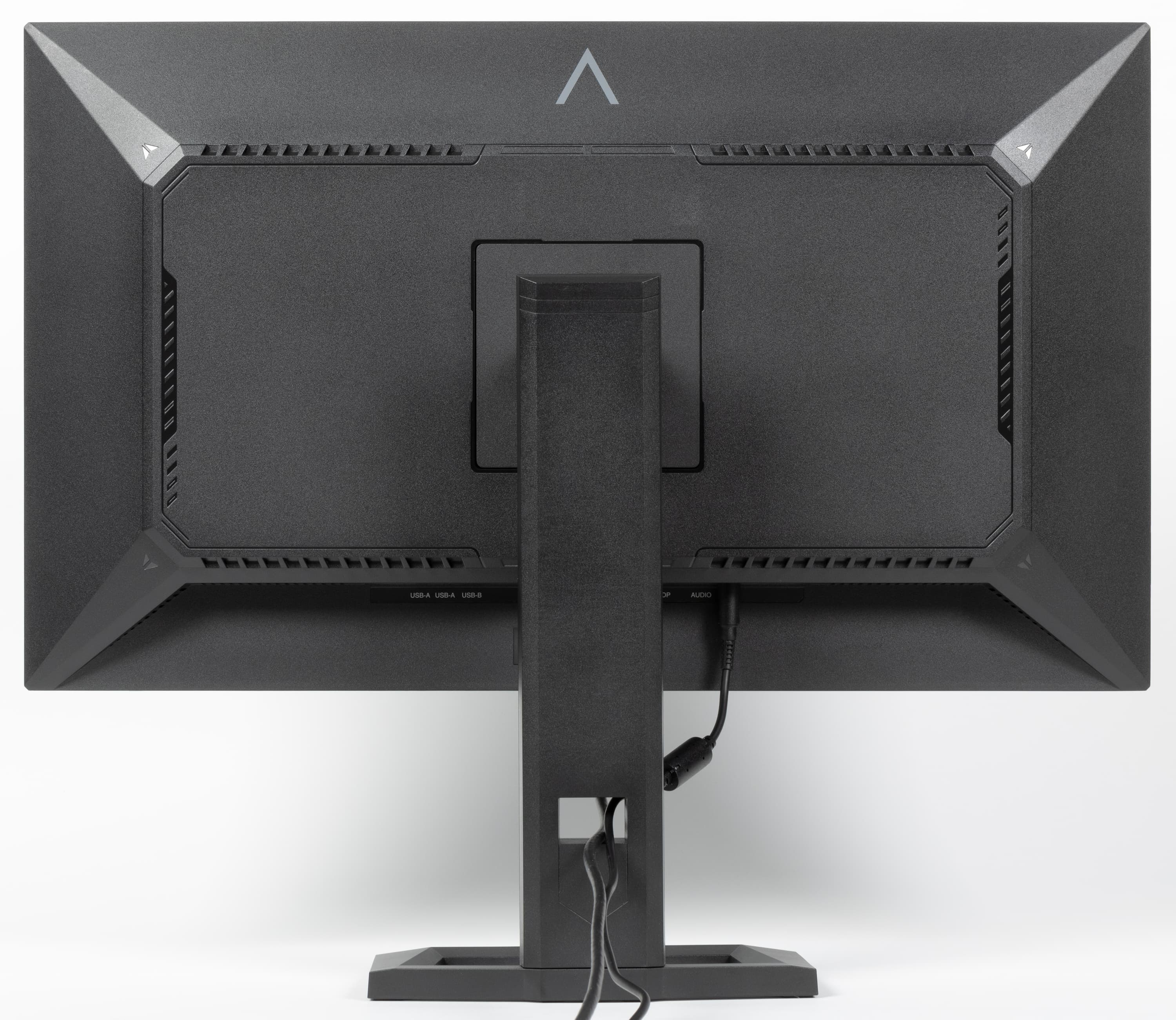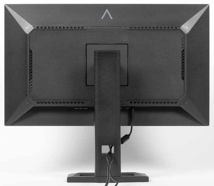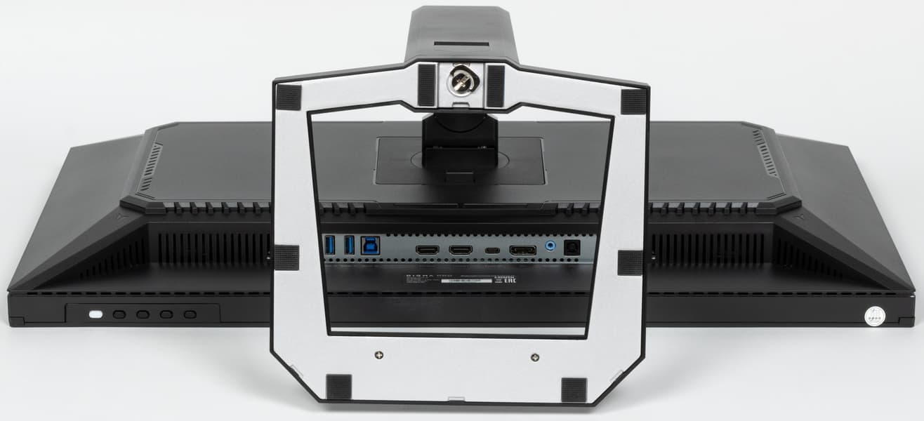 Многочисленные вентиляционные решетки на задней панели и по периметру блока экрана способствуют охлаждению внутренностей монитора. На нижнем ниши с разъемами есть две разнесенные от центра решетки, за которыми расположены встроенные в монитор громкоговорители с вытянутыми диффузорами. Громкоговорители установлены в корпусах, закрепленных на упругих стойках.