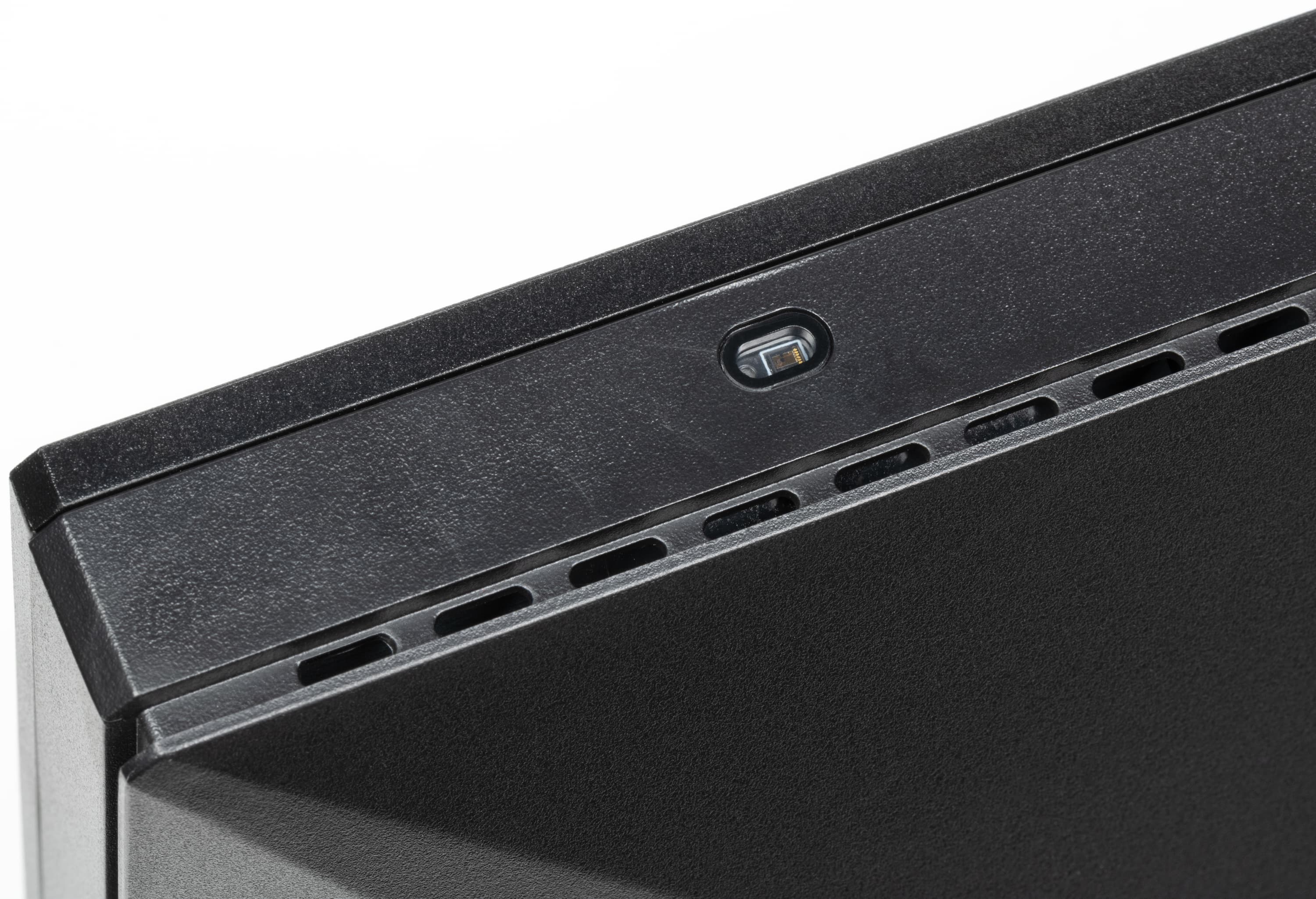На верхнем торце ближе к правому краю есть датчик освещенности.