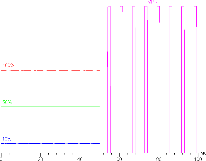 Видно, что четкость изображения даже без разгона матрицы близка к той, что и в случае идеальной матрицы, а при включении MPRT даже выше.