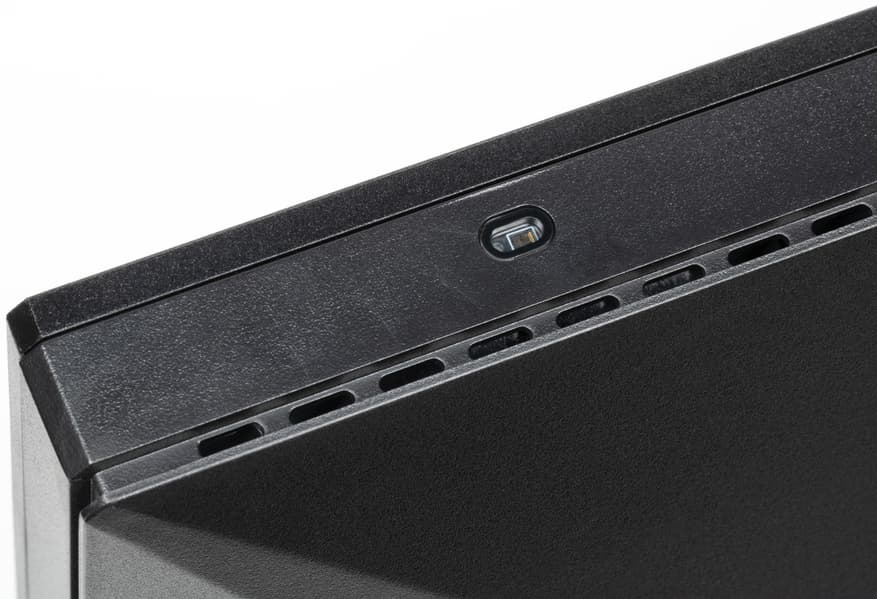 Качество встроенных громкоговорителей невысокое. Для сидящего перед монитором пользователя их громкость достаточная, низких частот нет совсем, есть выраженный «пластиковый» призвук из-за резонансов корпуса, стереофонический эффект расслышать можно.