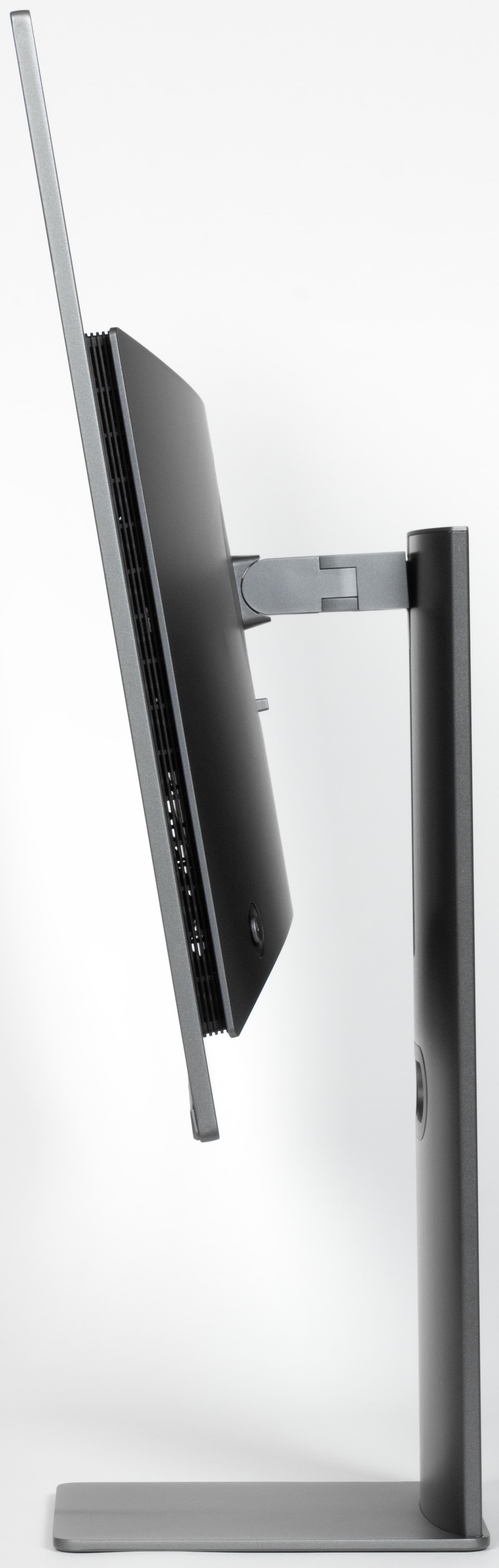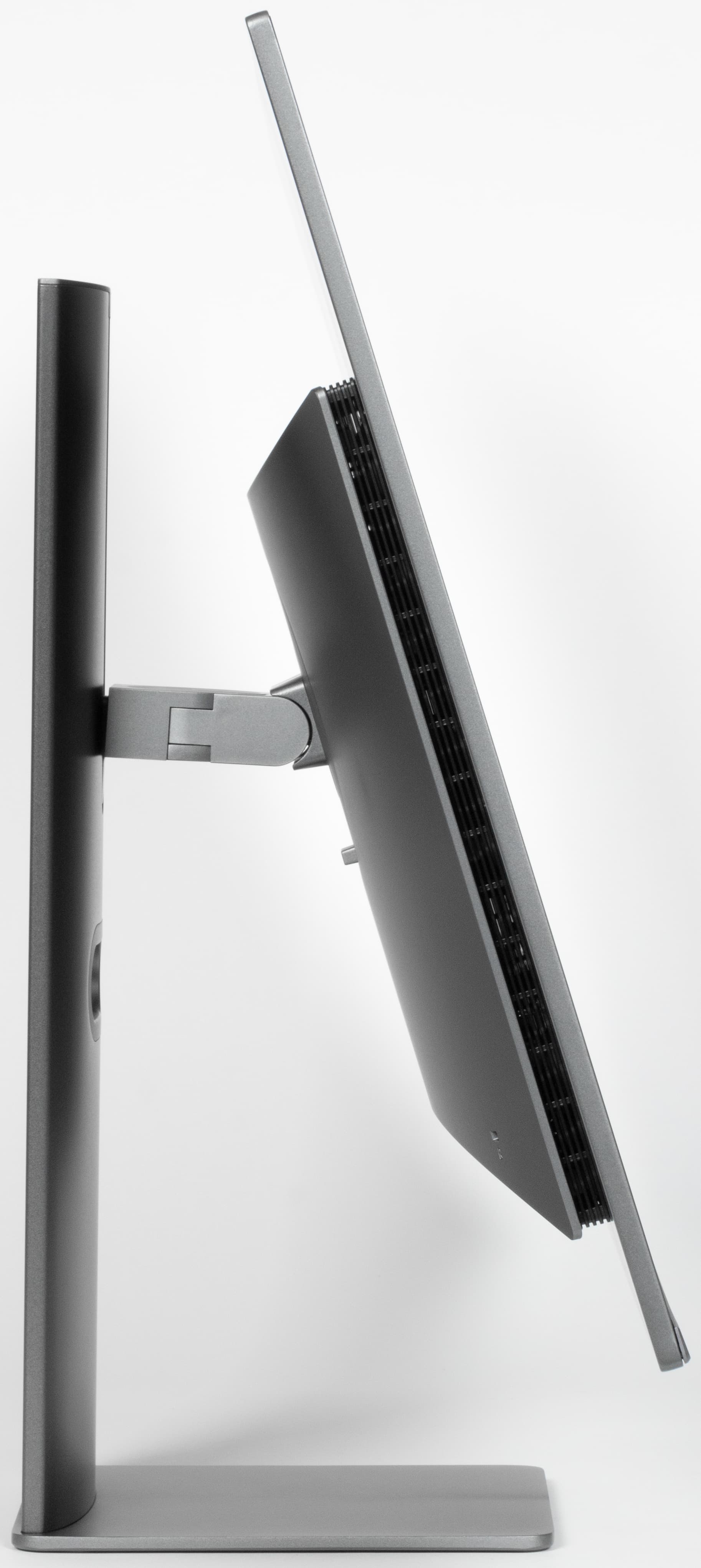 Стойка подставки имеет фиксированную высоту, но подпираемый пружиной механизм со стальным рельсовым шариковым подшипником обеспечивает вертикальное перемещение узла, на который крепится блок экрана. Штатная подставка позволяет немного наклонить блок экрана вперед, больше отклонить назад, приподнять-опустить, повернуть вправо-влево и перевернуть в портретную ориентацию по и против часовой стрелки.