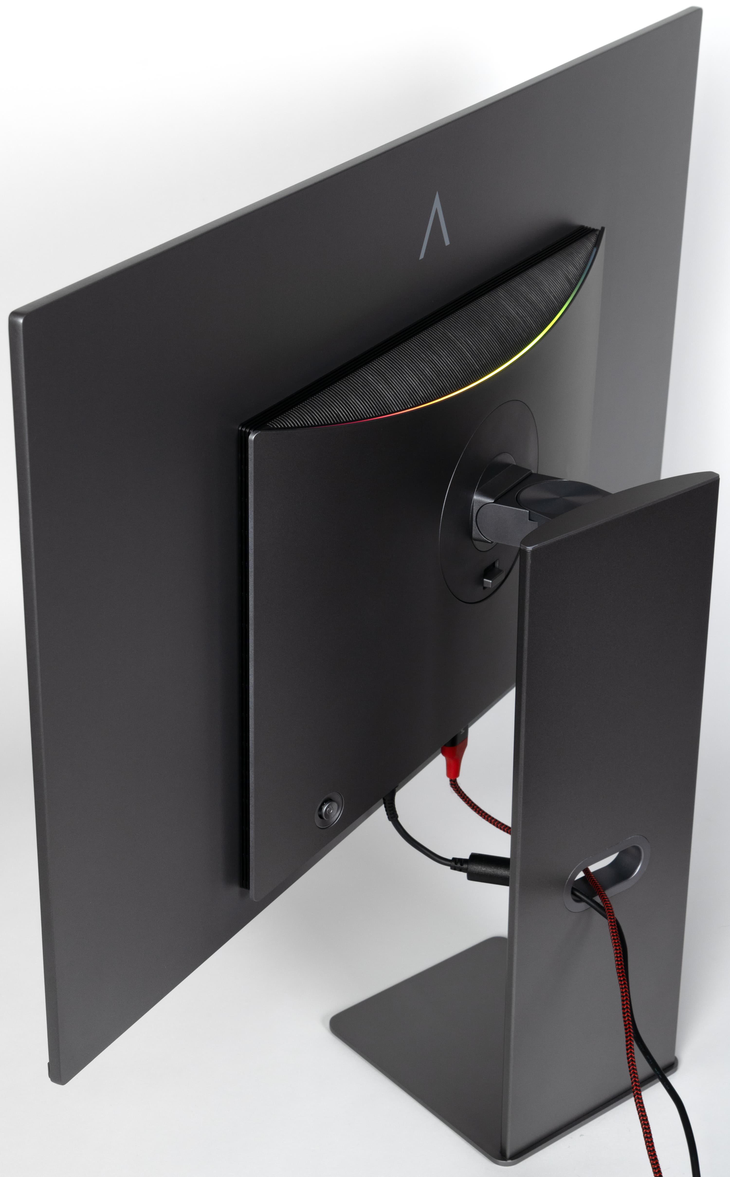 Чтобы выдержать вес монитора, несущие детали подставки изготовлены из алюминиевого сплава и стали. На штатной подставке монитор стоит устойчиво, несмотря на небольшую площадь основания подставки. Сверху на горизонтальную поверхность основания можно положить край клавиатуры или офисную мелочевку. Конструкция подставки достаточно жесткая. Накладки из упругого пластика снизу на основании подставки защищают поверхность стола от царапин и предотвращают скольжение монитора на гладких поверхностях.