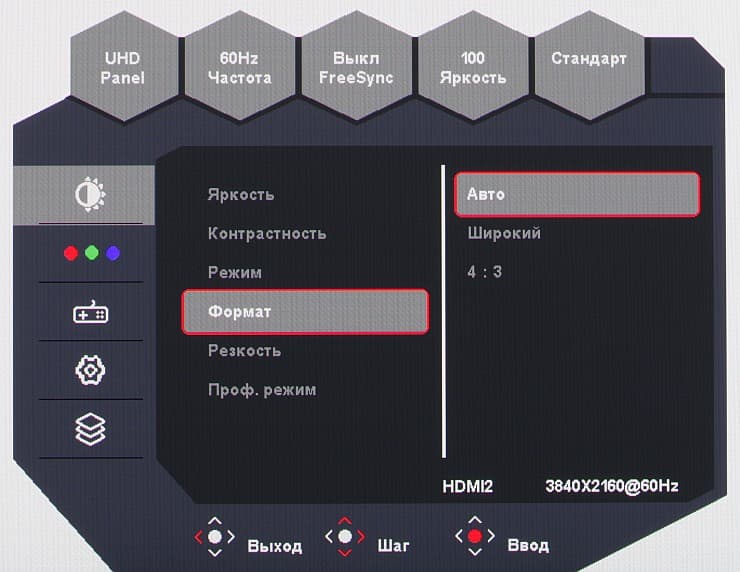 Несколько режимов геометрической трансформации помогут подобрать оптимальный вариант в случае источника с неродным для монитора разрешением и соотношением сторон.
