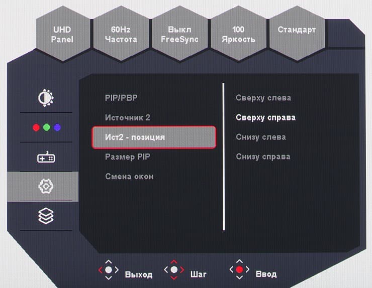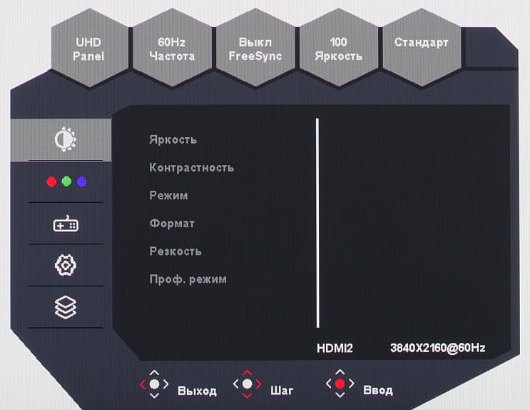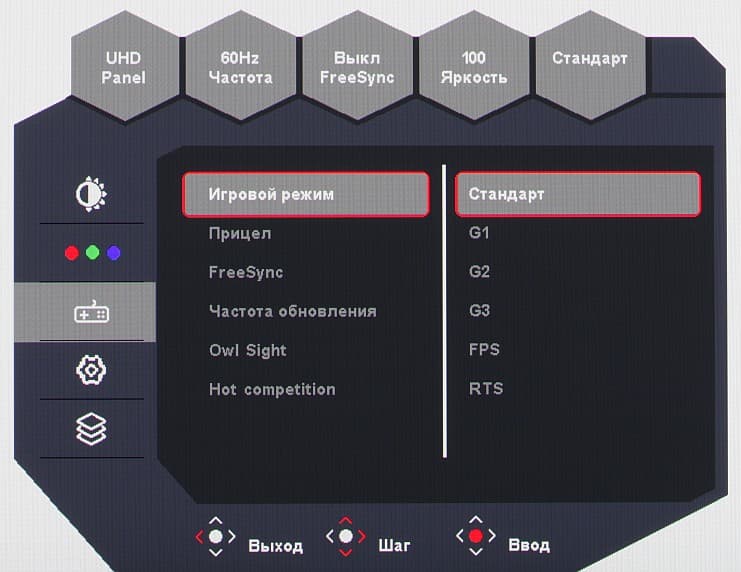 Настроек, влияющих на яркостный и цветовой баланс, не очень много, что для игрового монитора ожидаемо.