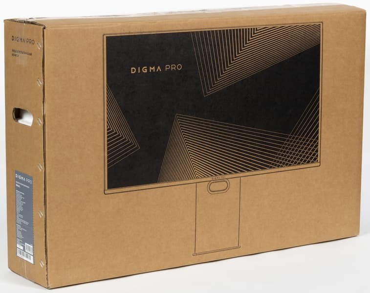 Монитор нам достался упакованным в скромно оформленную коробку из гофрированного картона с прорезными ручками по бокам. Внутри коробки для распределения и защиты содержимого используются пенопластовые формы.