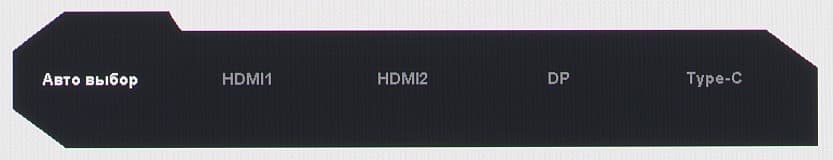 Монитор оснащен тремя цифровыми входами в полноразмерном варианте — DisplayPort и парой HDMI, — дополненные входом USB-C. Выбор входа осуществляется в основном меню установок или в меню быстрого доступа. Есть отключаемая функция автоматического поиска сигнала на входах.