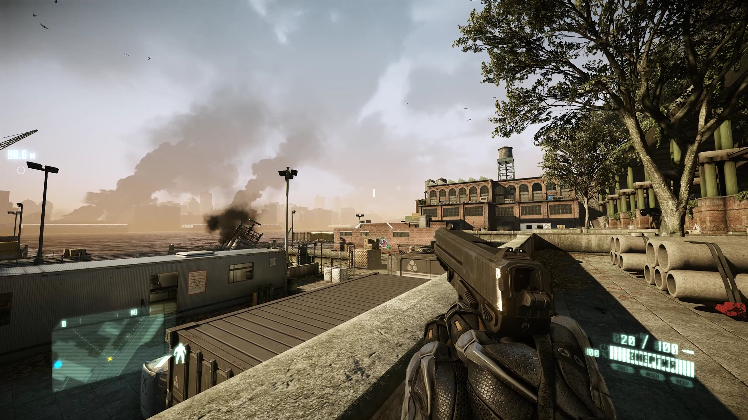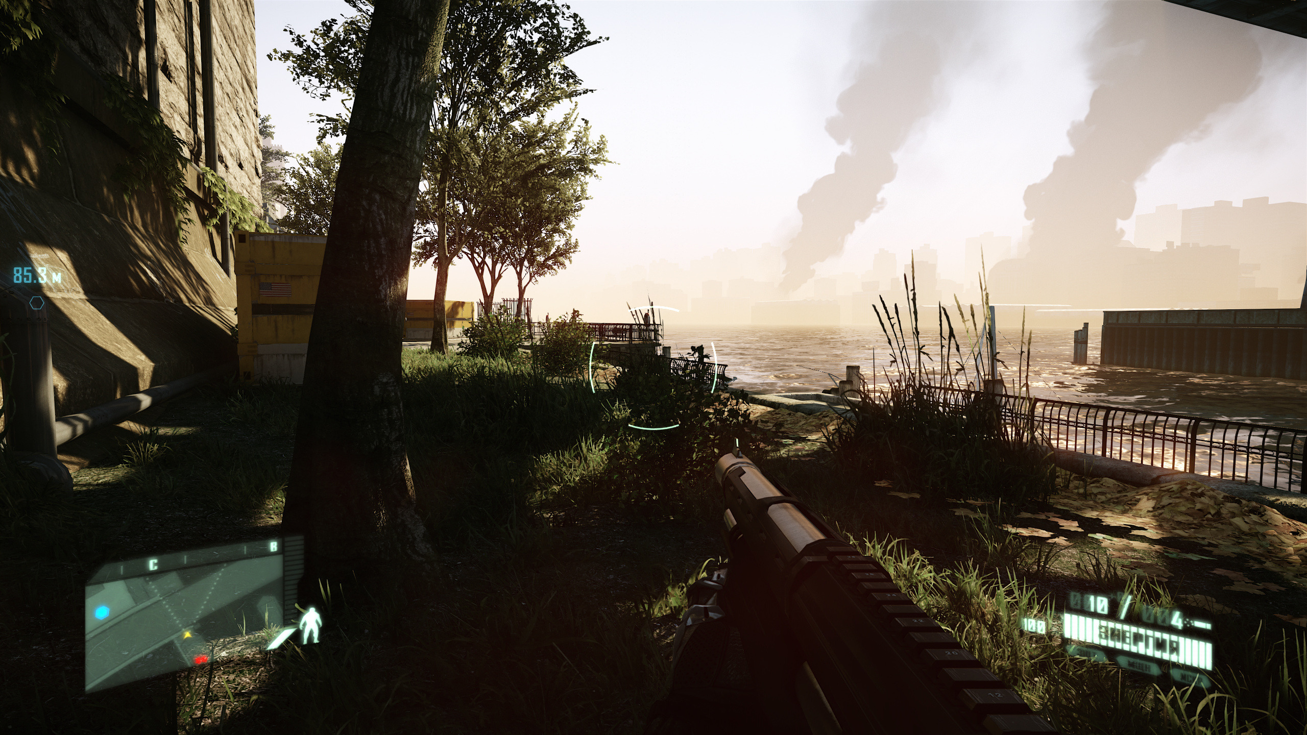 Хорошо, с DLSS и FSR более-менее понятно, а что с FSR против NIS? Мы дополнительно проверили качество изображения при масштабировании всеми доступными методами в ремастере игры Crysis 2, которая имеет поддержку DLSS, а NIS можно форсировать из драйверов. Техника AMD FSR была добавлена в игру при помощи утилиты Magpie, текстурные уровни детализации (texture LOD bias) отодвинуты подальше от камеры, как рекомендует компания AMD при использовании FSR. В результате должен получиться почти полный эквивалент «настоящего» AMD FSR, хотя это и не точно.