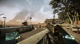 К сравнению мы с вами как раз и переходим. Сначала рассмотрим пару игр Necromunda: Hired Gun и Chernobylite, которые отличаются одновременной поддержкой техник DLSS и FSR, что пока встречается не так уж часто, а NIS на видеокартах Nvidia (после установки свежих драйверов) можно включить вообще в любой игре, из настроек драйвера или GFE. Вот так выглядит кадр из первой упомянутой игры: