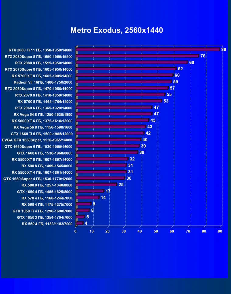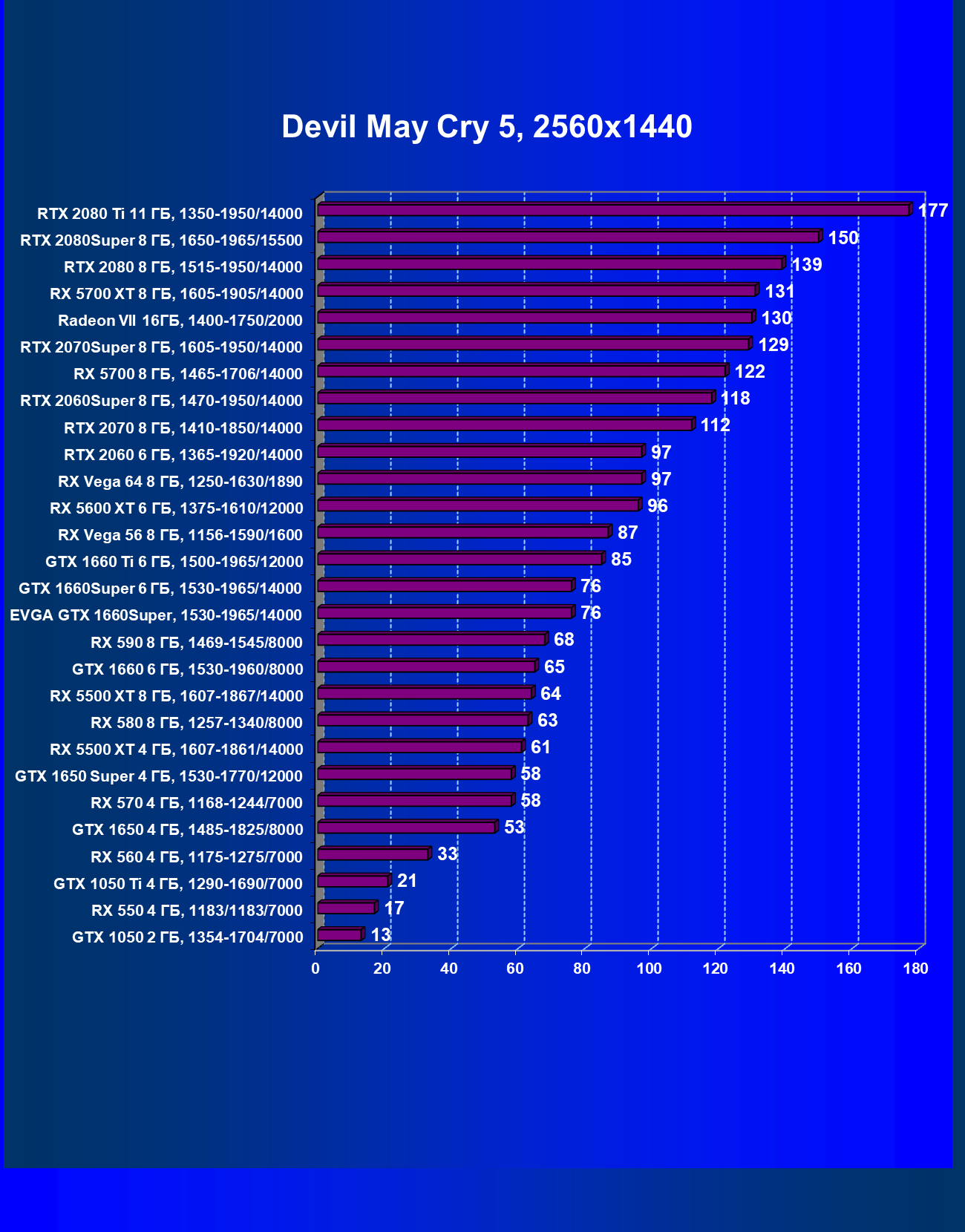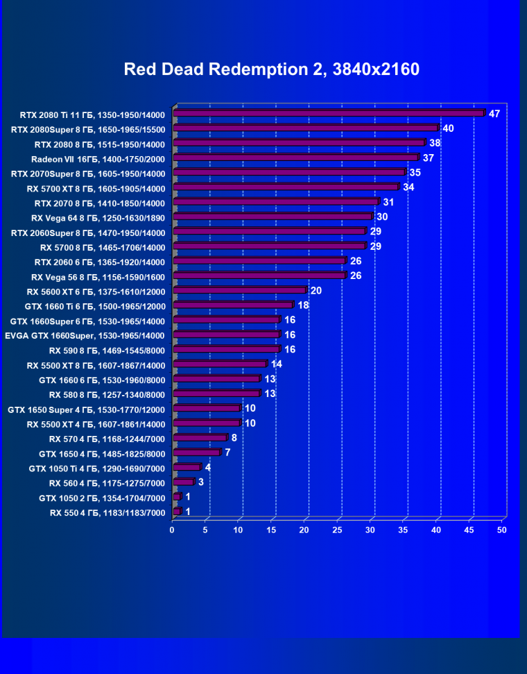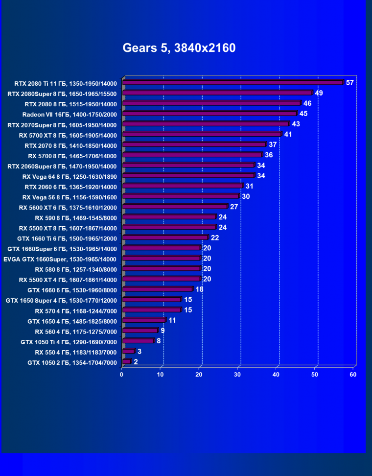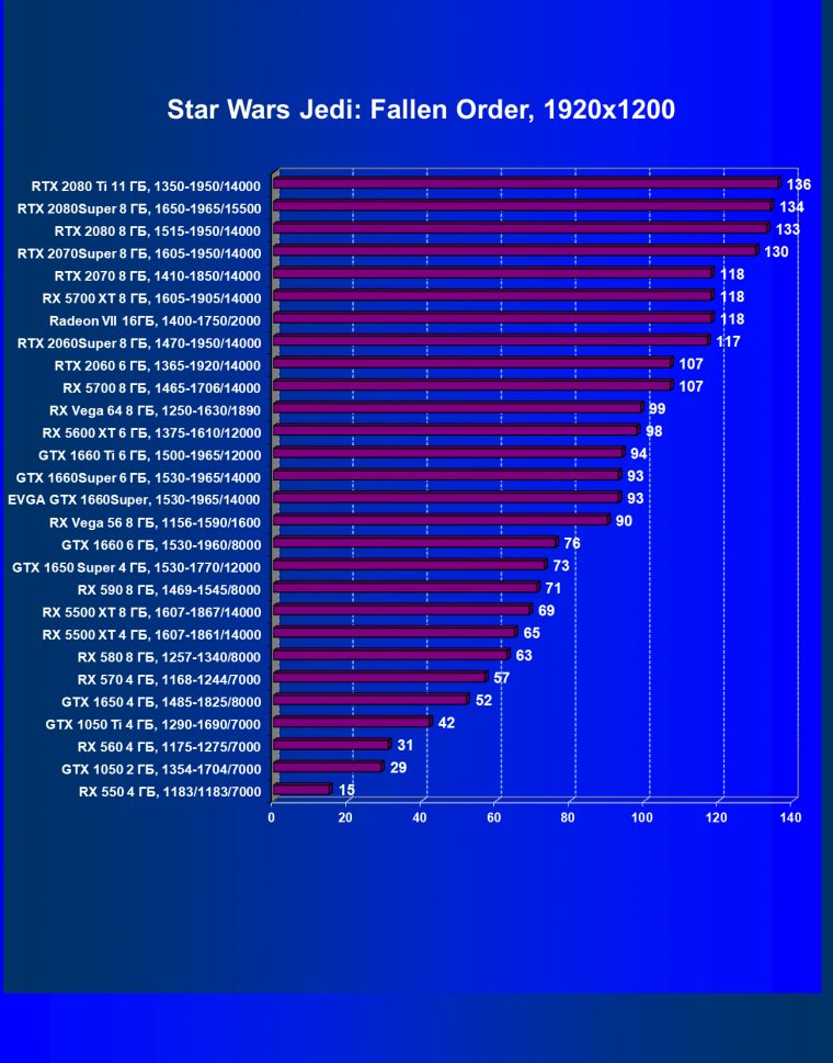 | 12 | RX 5500 XT 8 ГБ, 1607—1867/14000 | 388 | 570 | 14 700 |