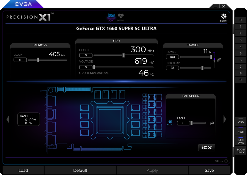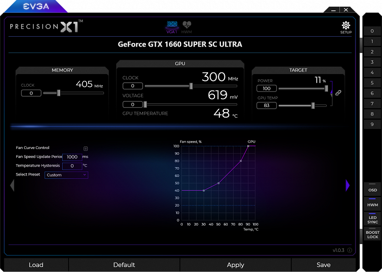 Управление работой карты обеспечивается с помощью фирменной утилиты EVGA Precision X1.