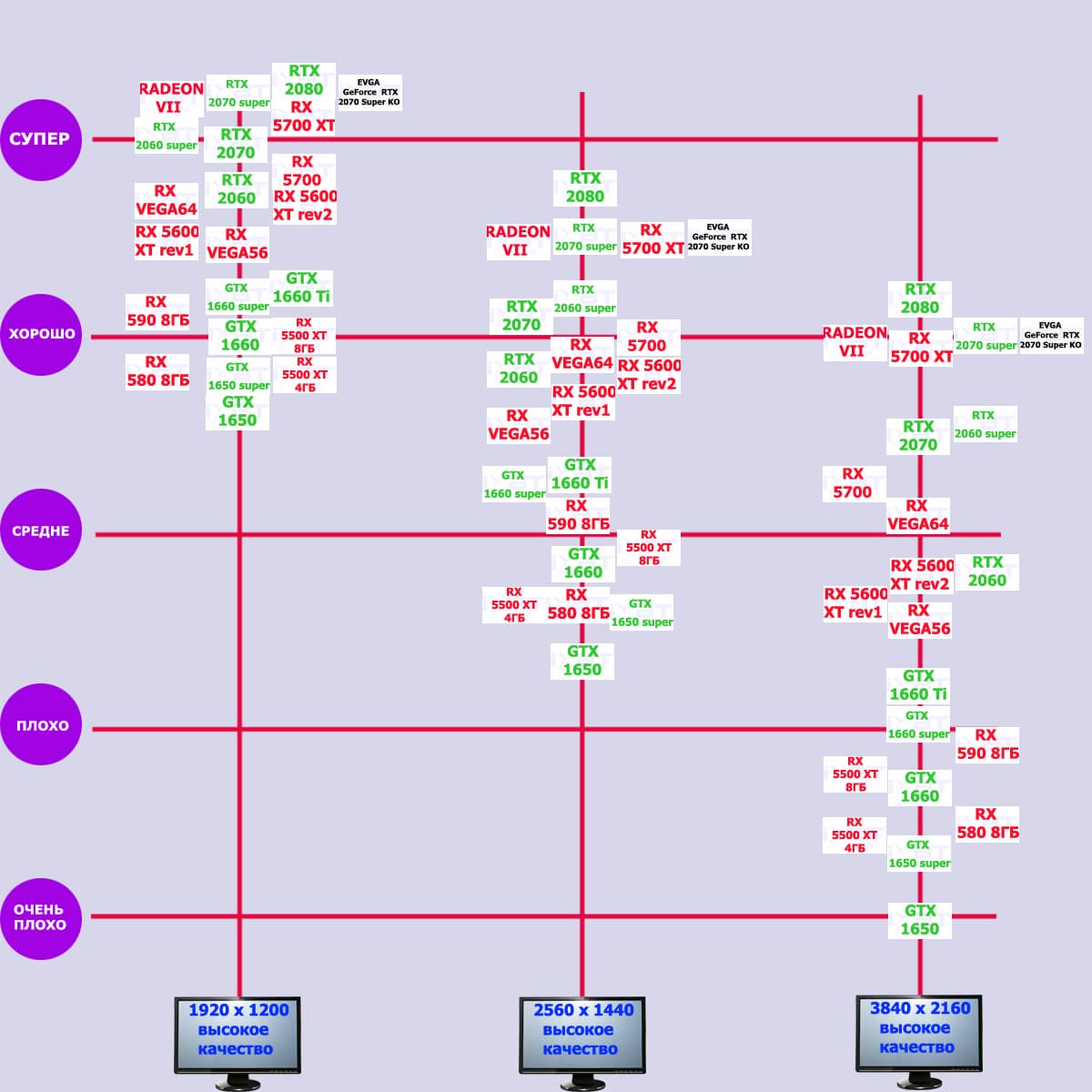 Традиционный взгляд на сводную производительность карты и ее соперников, субъективно оцененные нами по шкале из пяти градаций.