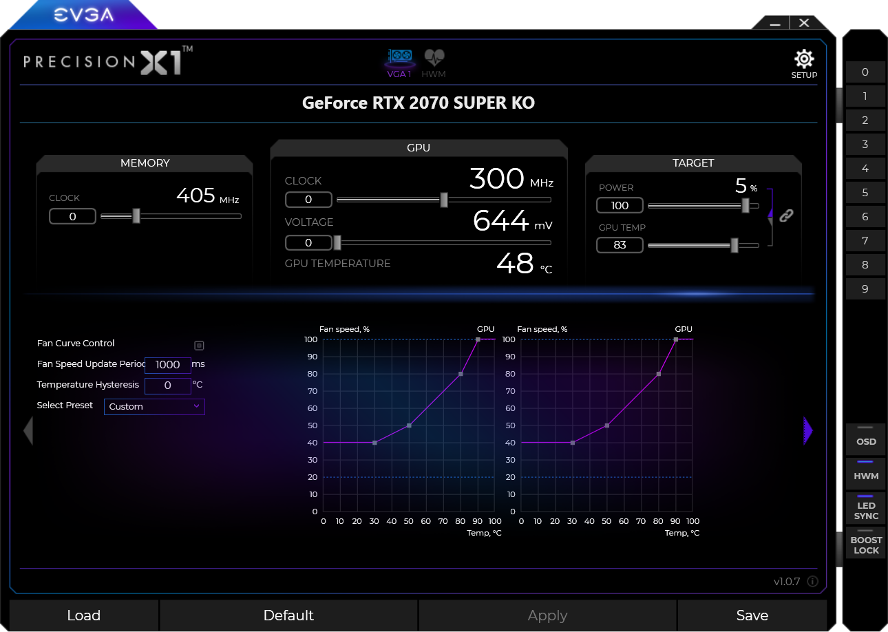 Управление работой карты обеспечивается с помощью фирменной утилиты EVGA Precision X1.