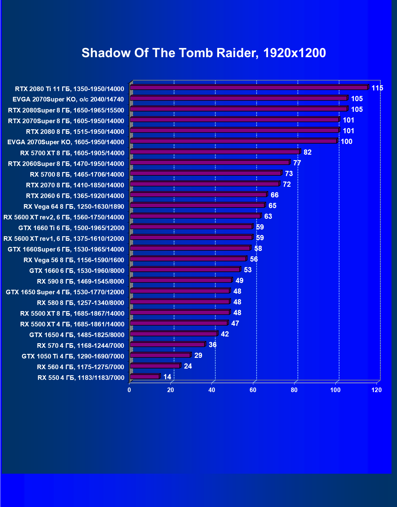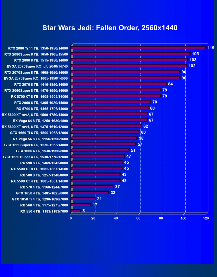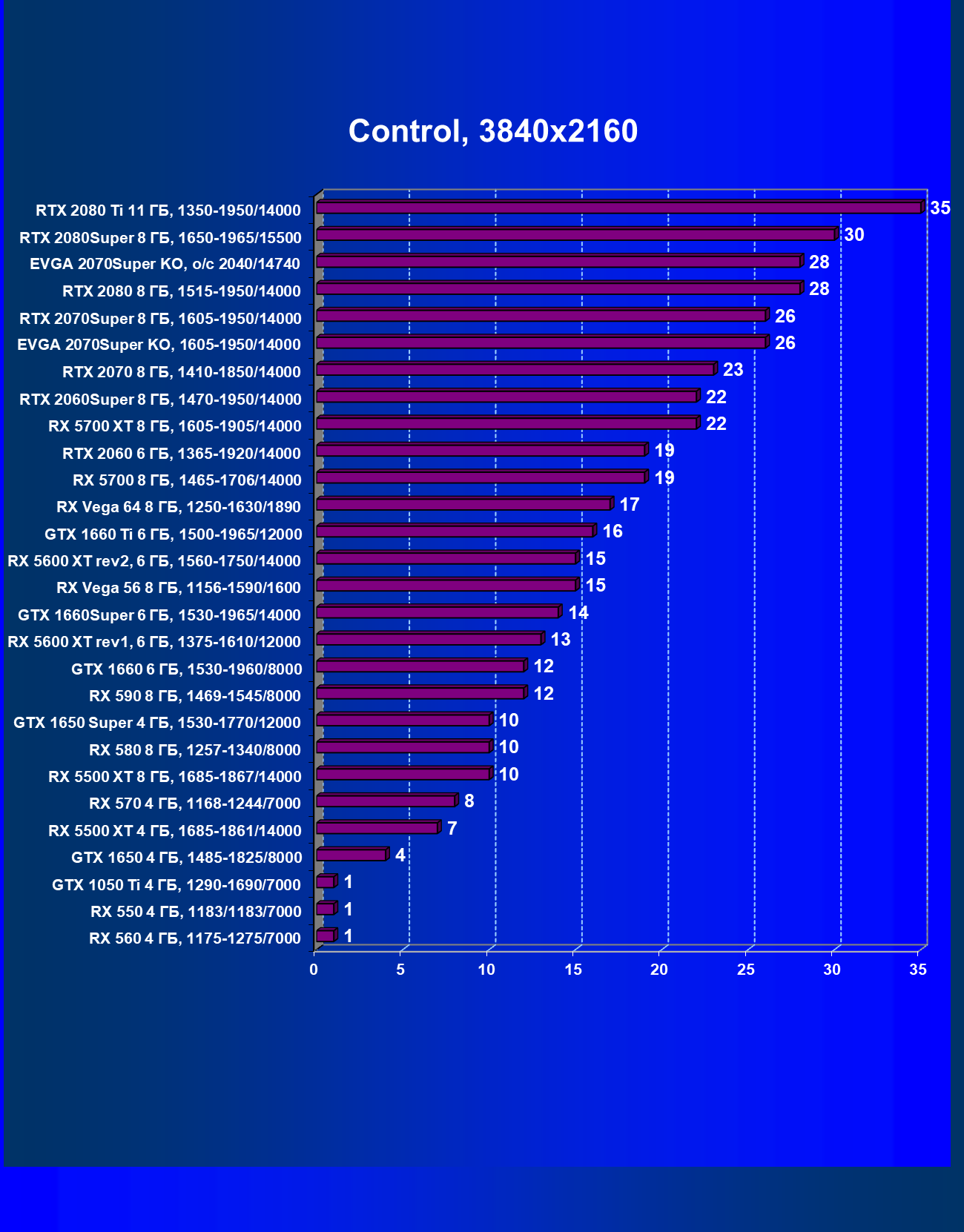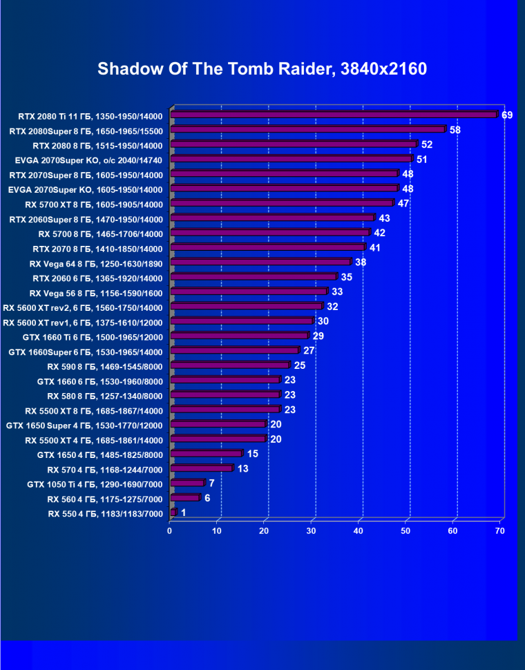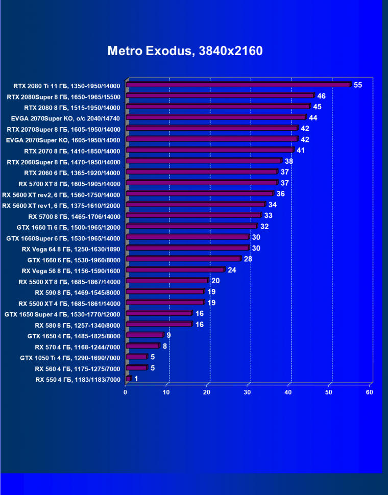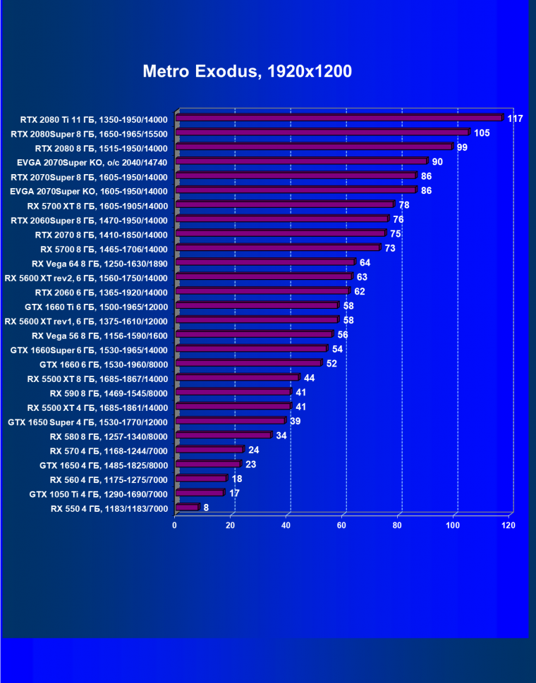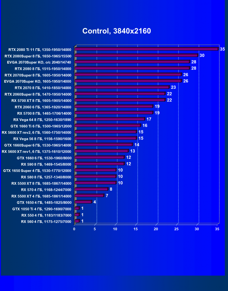 | 09 | RX 5700 XT 8 ГБ, 1605—1905/14000 | 1120 | 320 | 35 000 |