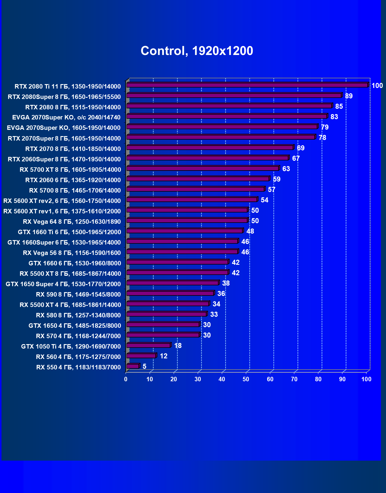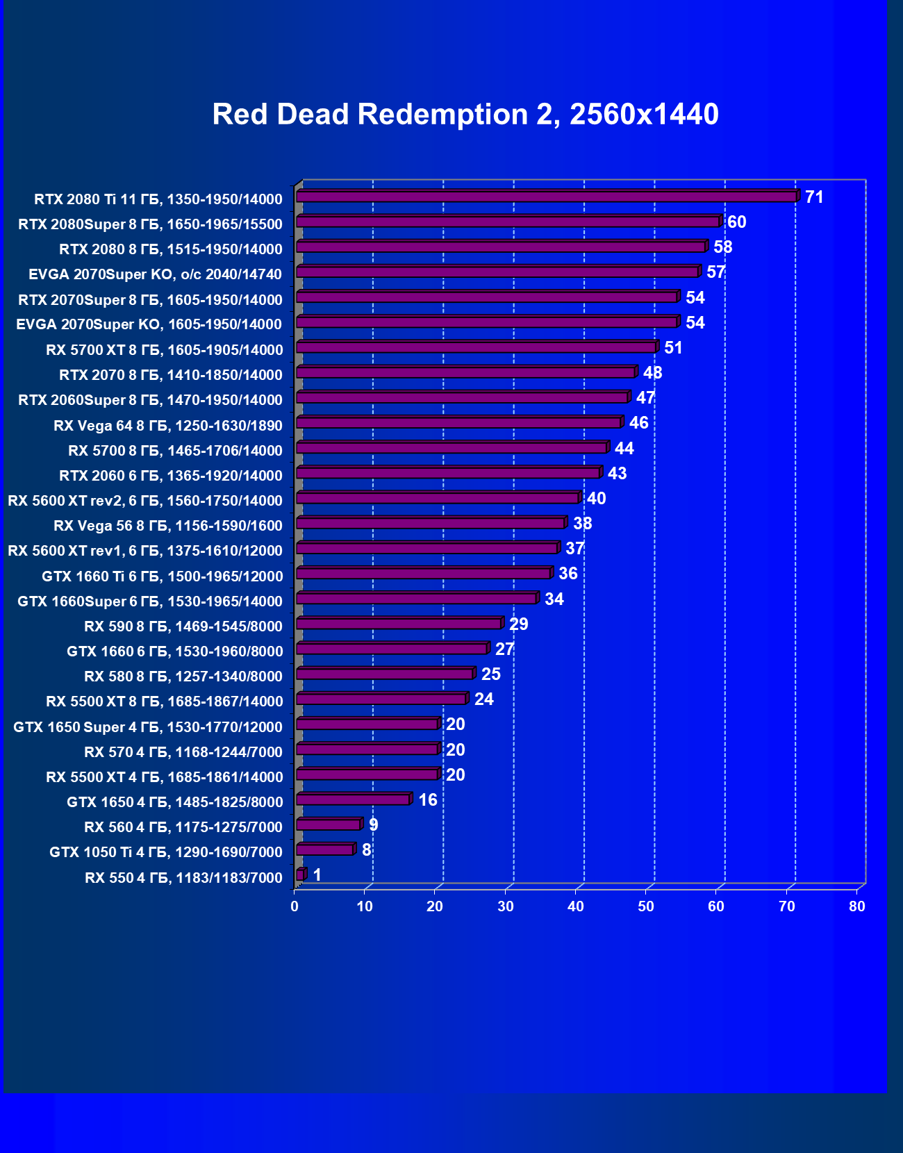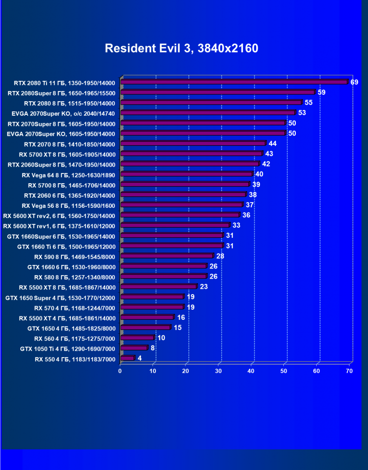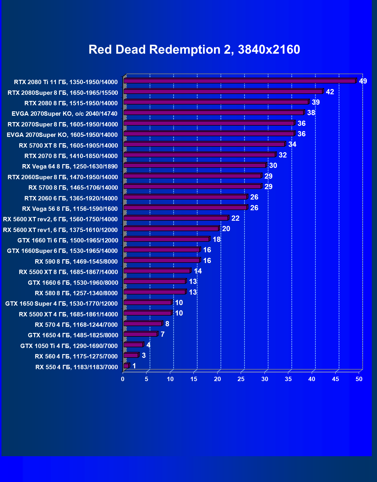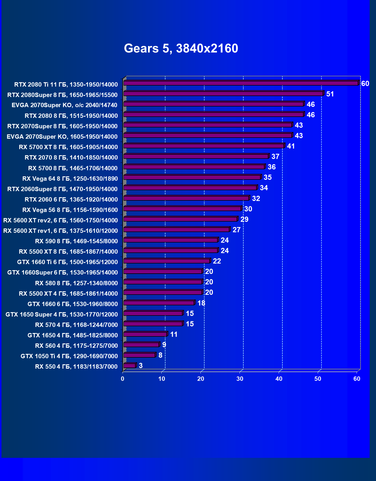 | 09 | RX 5700 XT 8 ГБ, 1605—1905/14000 | 1120 | 320 | 35 000 |