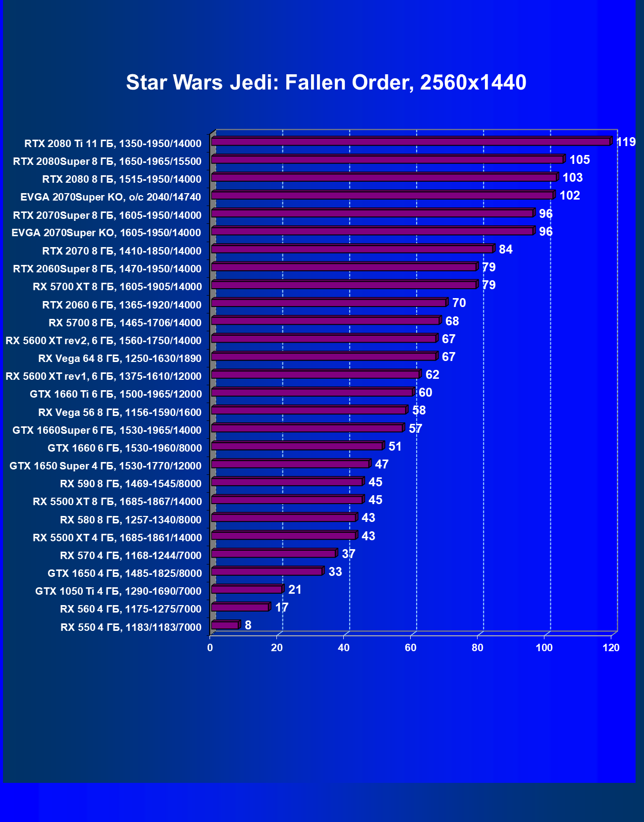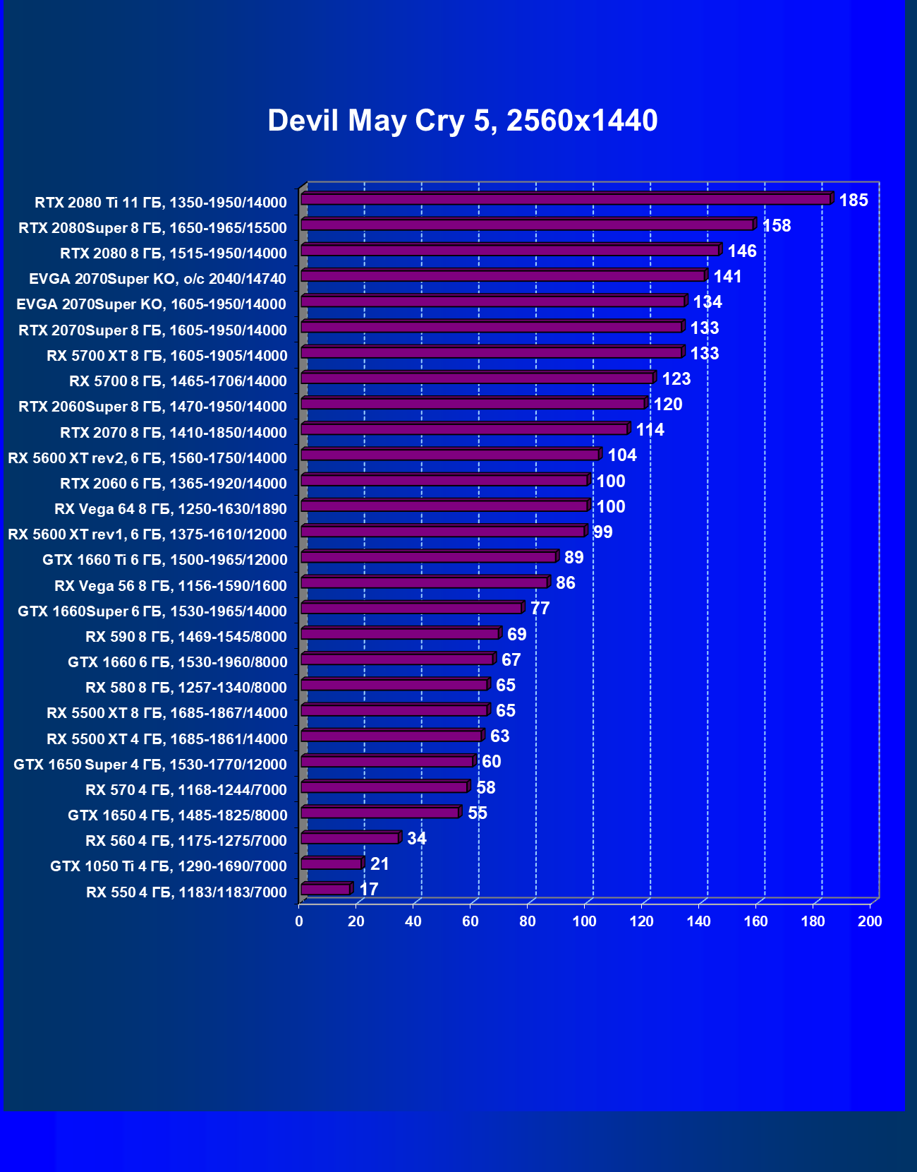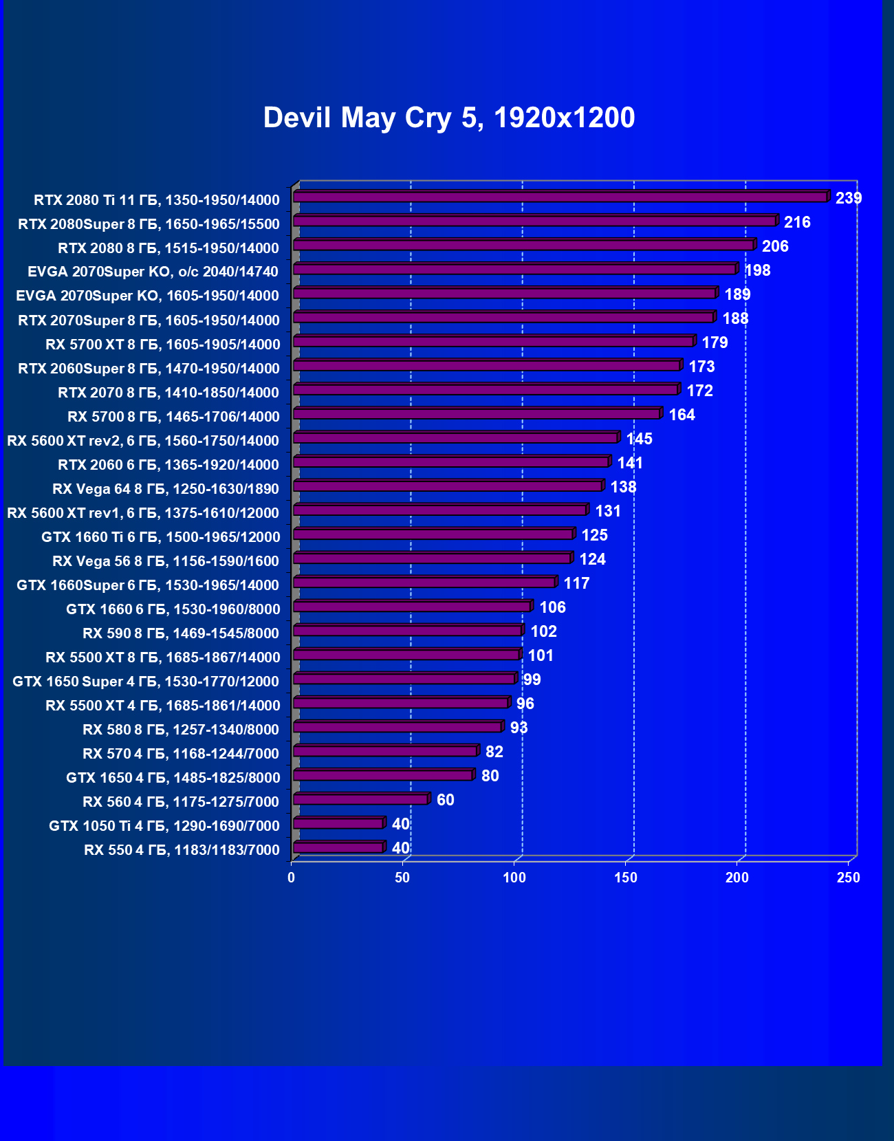 | 08 | RX 5700 XT 8 ГБ, 1605—1905/14000 | 343 | 1201 | 35 000 |