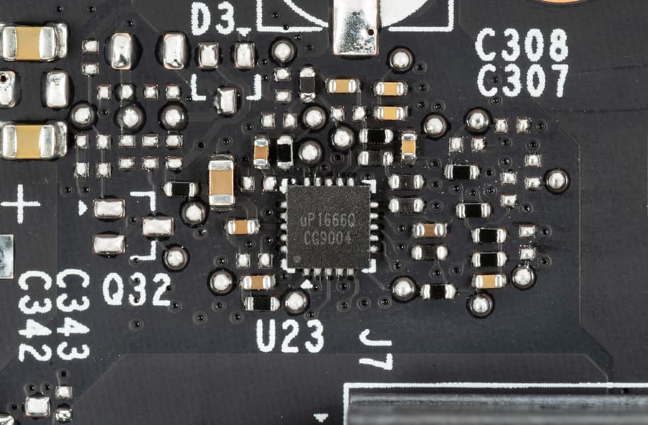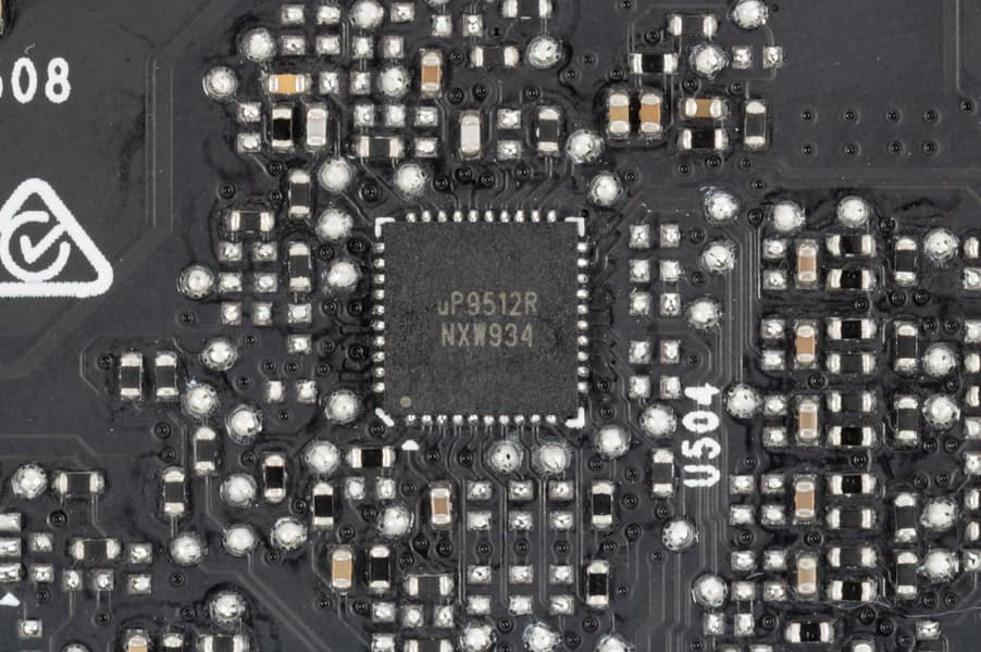 Схемой питания ядра управляет контроллер uP9512R компании uPI Semiconductor (он рассчитан на 8 фаз, поэтому, скорее всего, он же стоит и на RTX 2080 в исполнении EVGA).