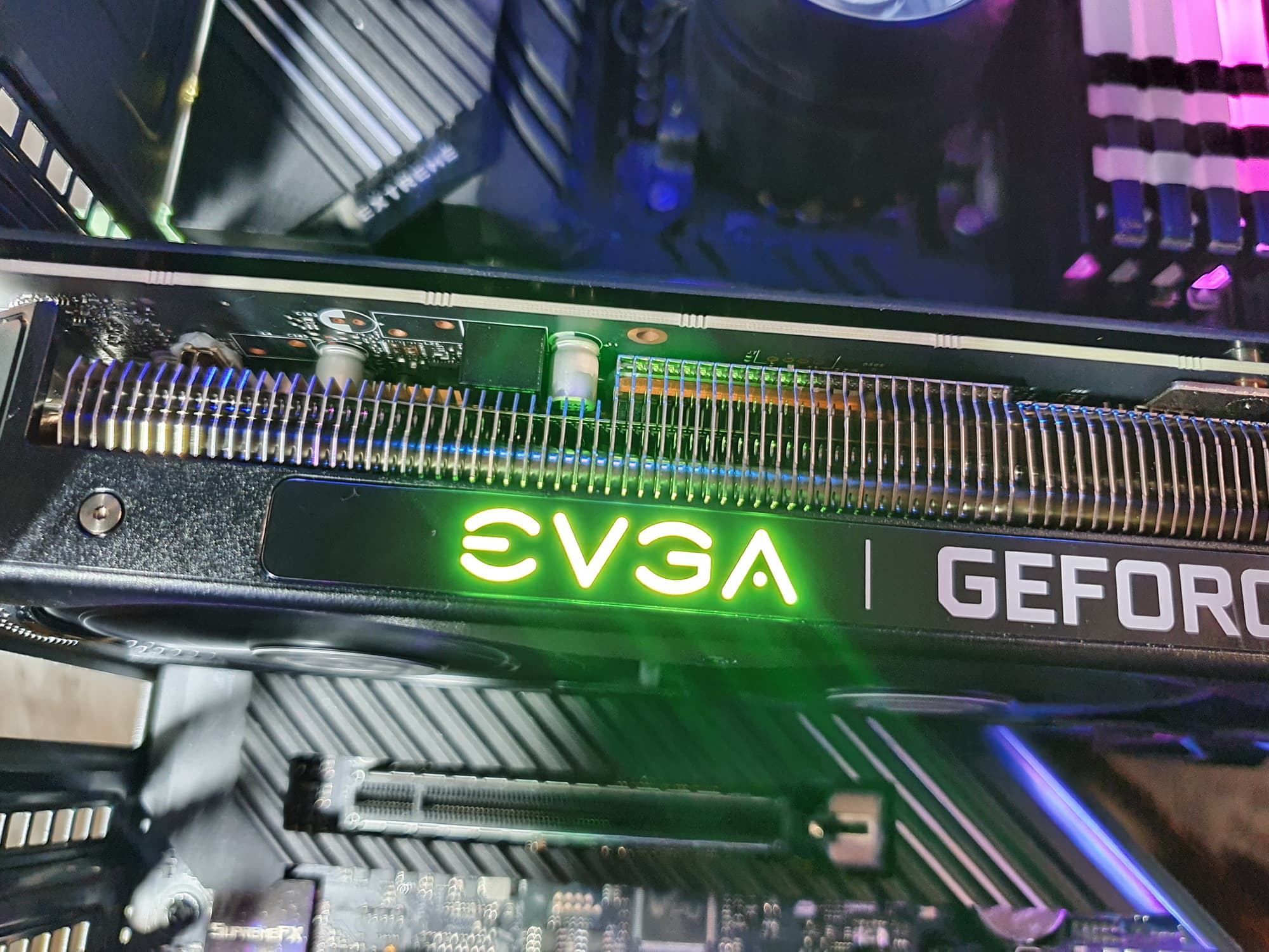 Штатные частоты памяти у карты EVGA равны референсным значениям, а вот Boost-частота работы ядра прилично выше (1800 против 1665 МГц), однако это дало в среднем всего 6% прибавки к производительности, а максимальное значение частоты работы ядра оказалось равным референс-аналогу. Максимальное потребление карты EVGA — 241 Вт. Разумеется, был испробован ручной разгон, и после экспериментов достигнута стабильная работа при увеличении частоты ядра на 125 МГц, а памяти — на 750 МГц. Максимум по частотам составил 1905—2100/15005 МГц, а прирост производительности достигал в среднем 7,5% (в разрешении 4К — более +8% относительно референс-значений). При этом максимум энергопотребления вырос до 259 Вт.