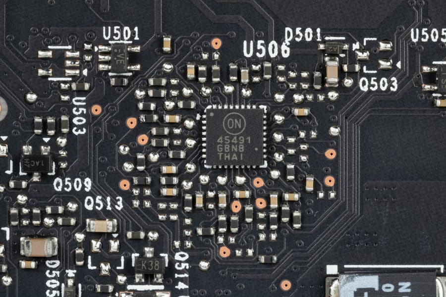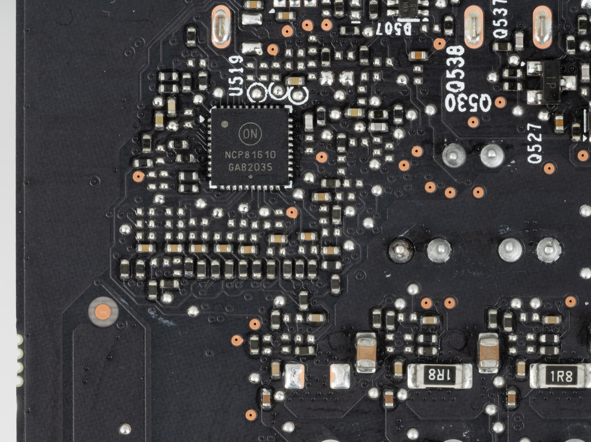 Также имеется контроллер NCP45491 (On Semiconductor), отвечающий за мониторинг карты (слежение за напряжением и температурой), расположенный на лицевой стороне PCB.