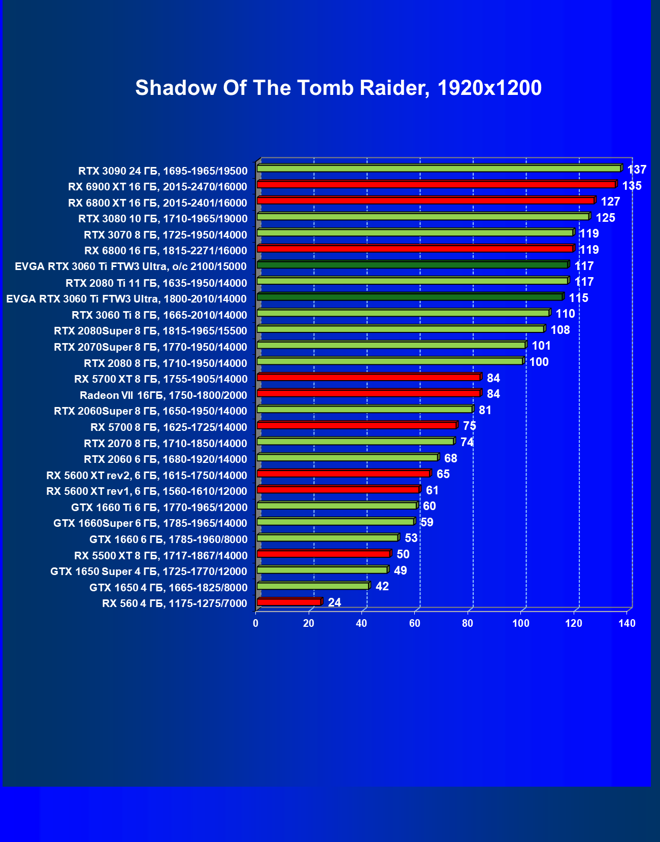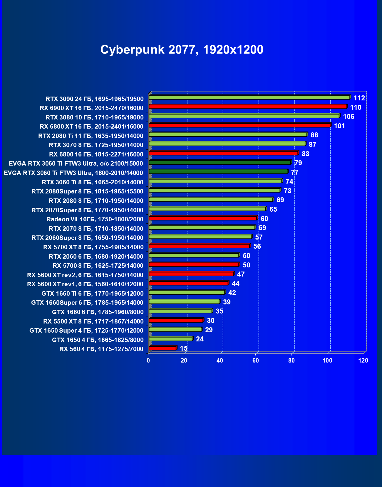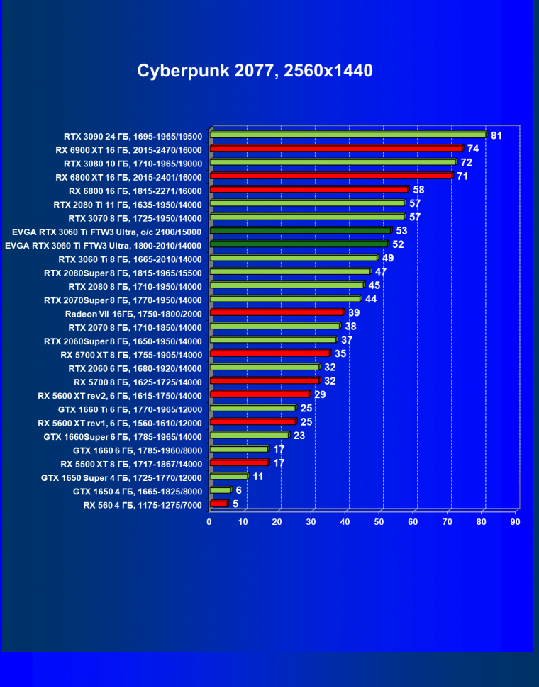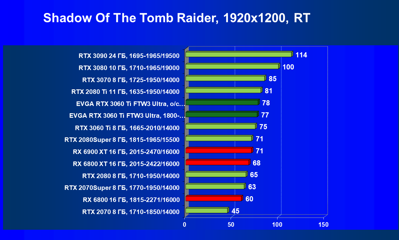 | 07 | EVGA RTX 3060 Ti FTW3 Ultra, разгон до 2100/15000 | 160 | 16 | 98 000 |
