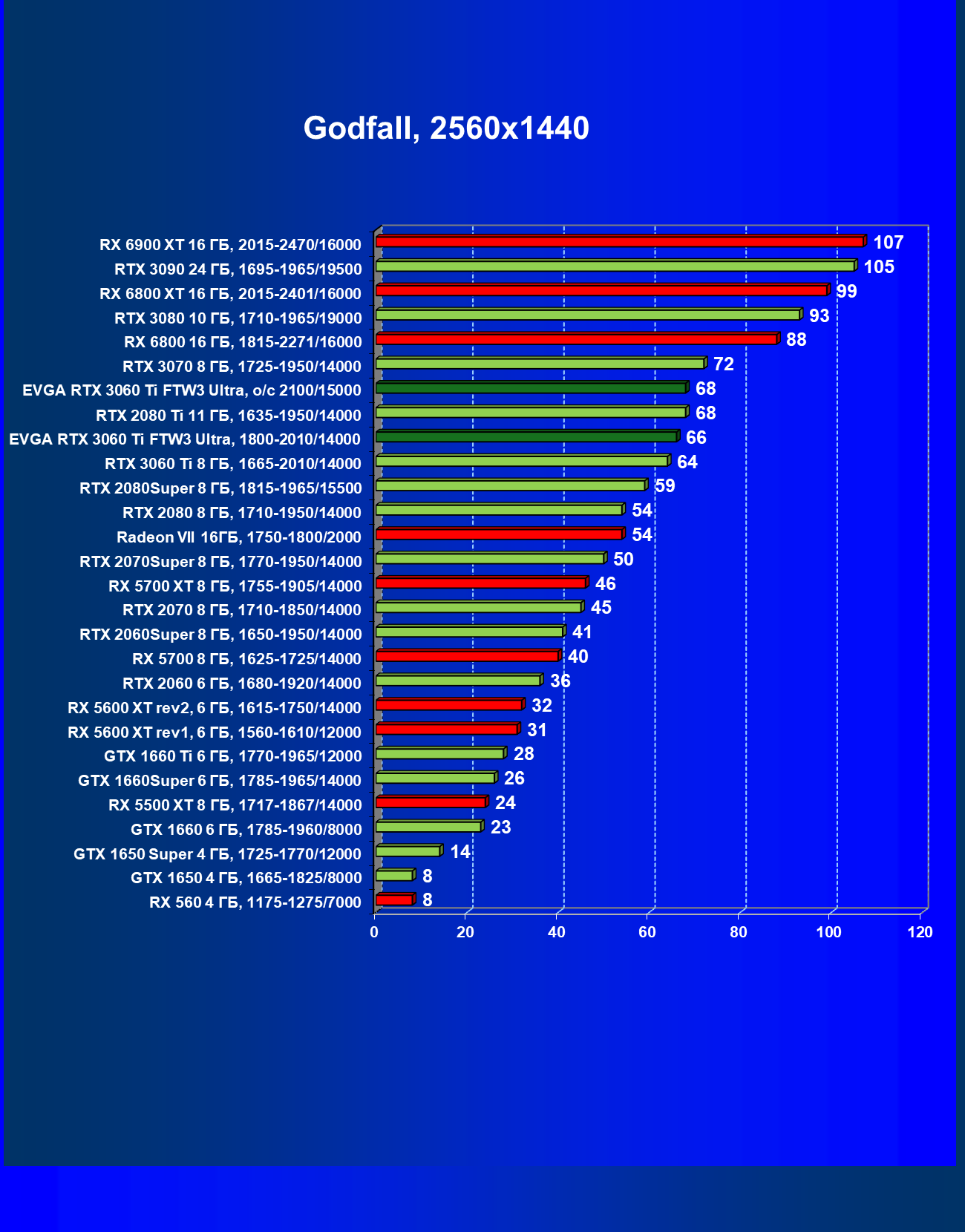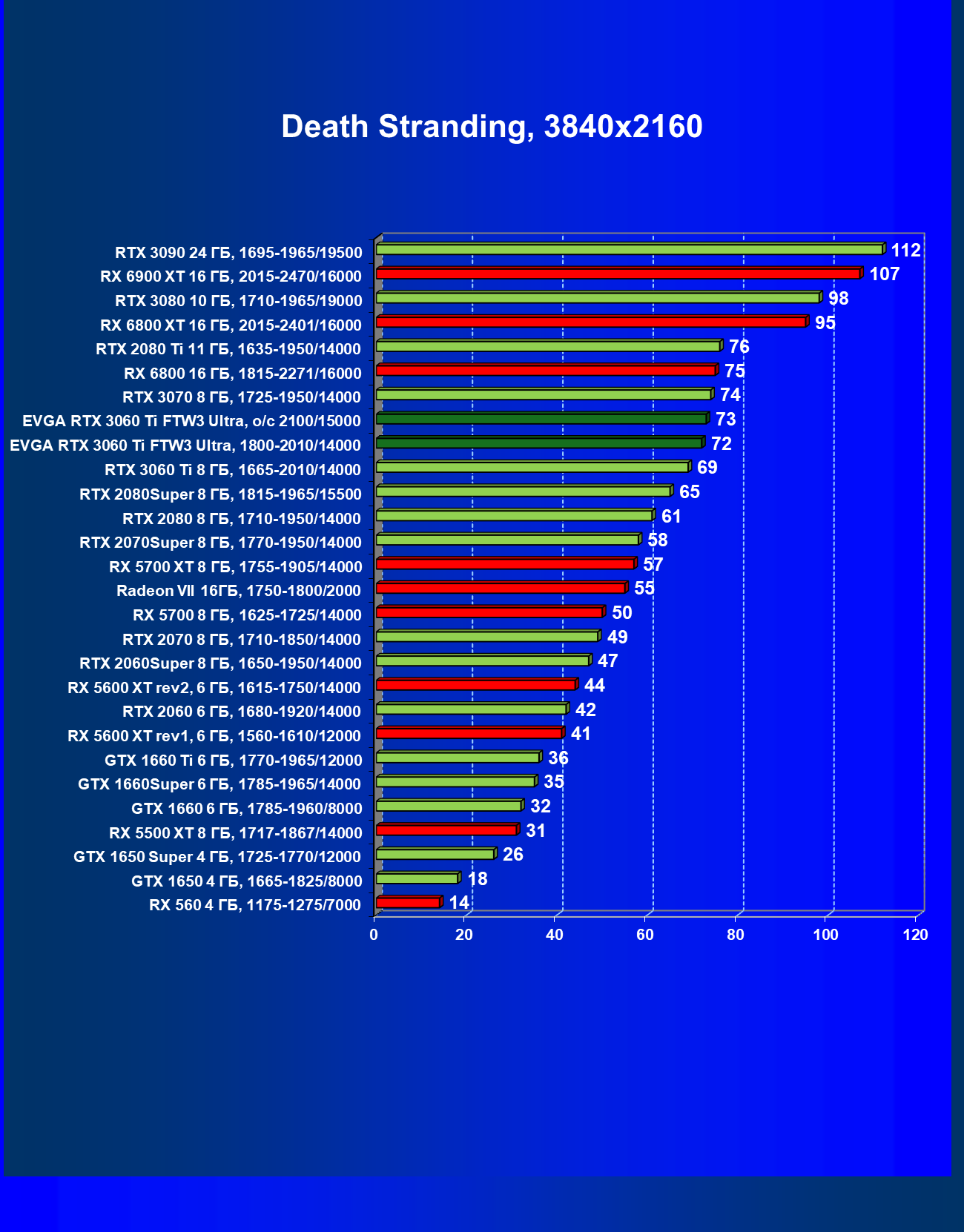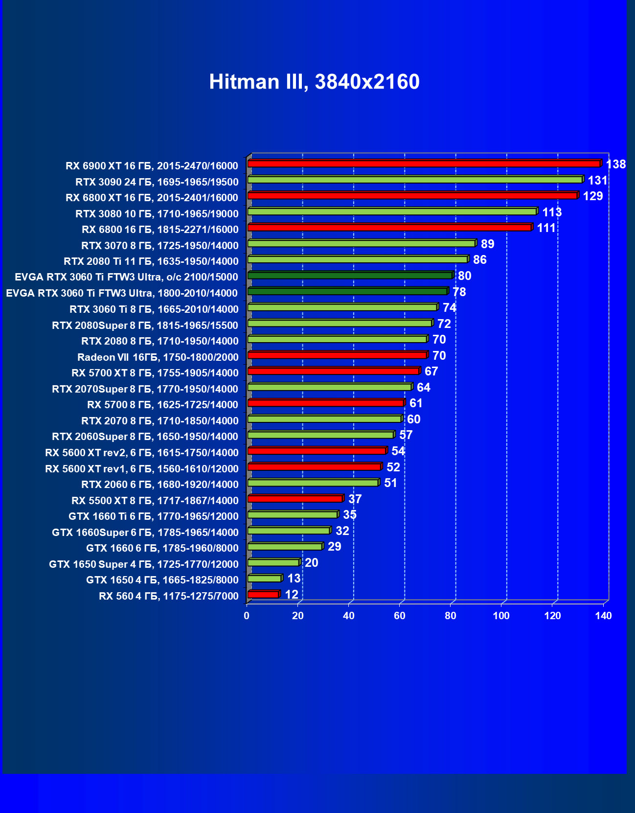 | 07 | EVGA RTX 3060 Ti FTW3 Ultra, разгон до 2100/15000 | 160 | 16 | 98 000 |