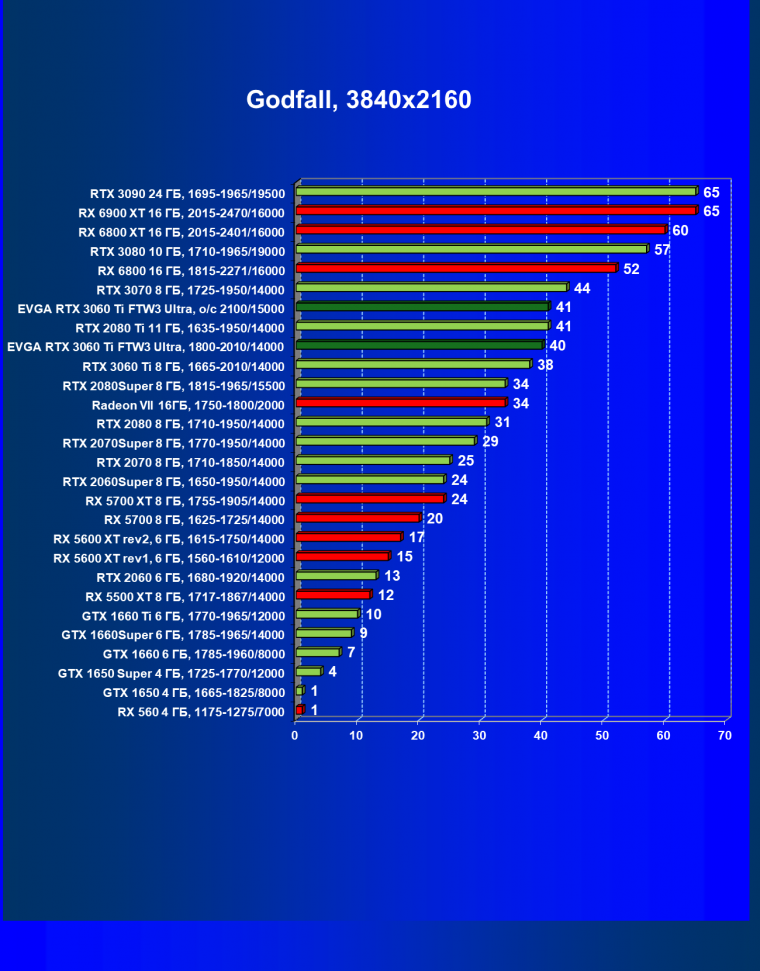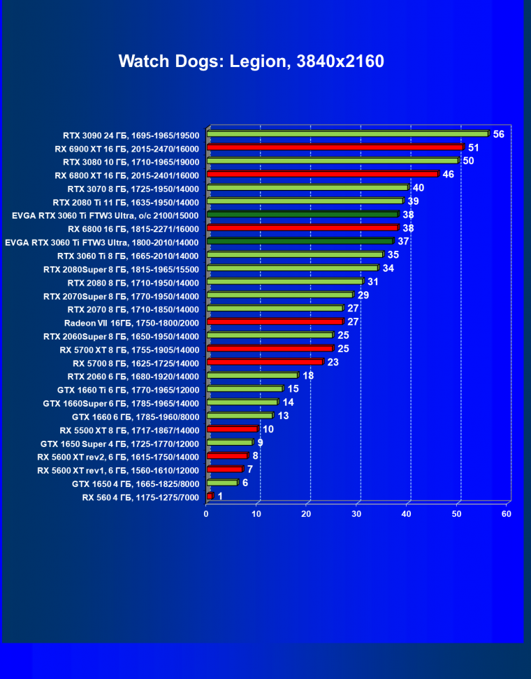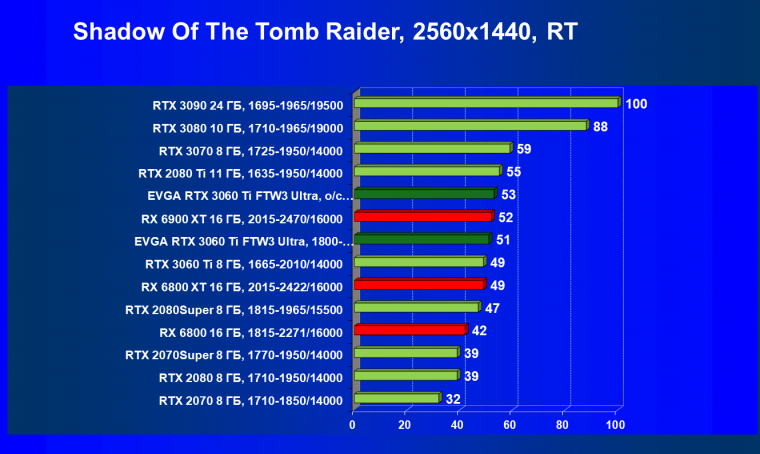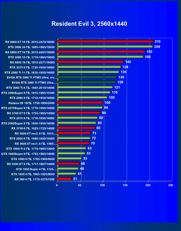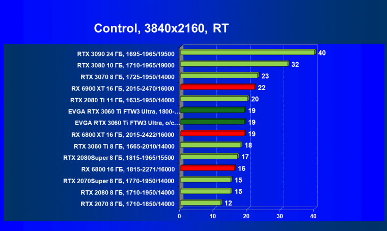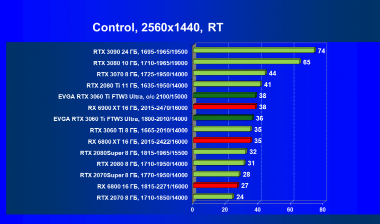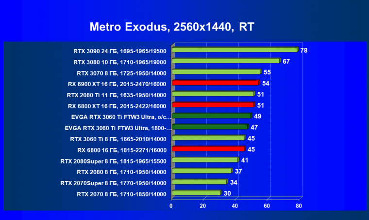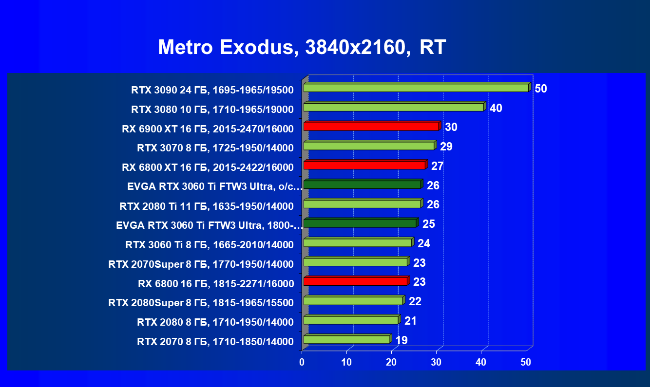 В целом соотношение сил среди видеокарт Nvidia осталось таким же, причем GeForce RTX 3060 Ti легко выиграл сражение даже у заведомо более дорогого Radeon RX 6800.