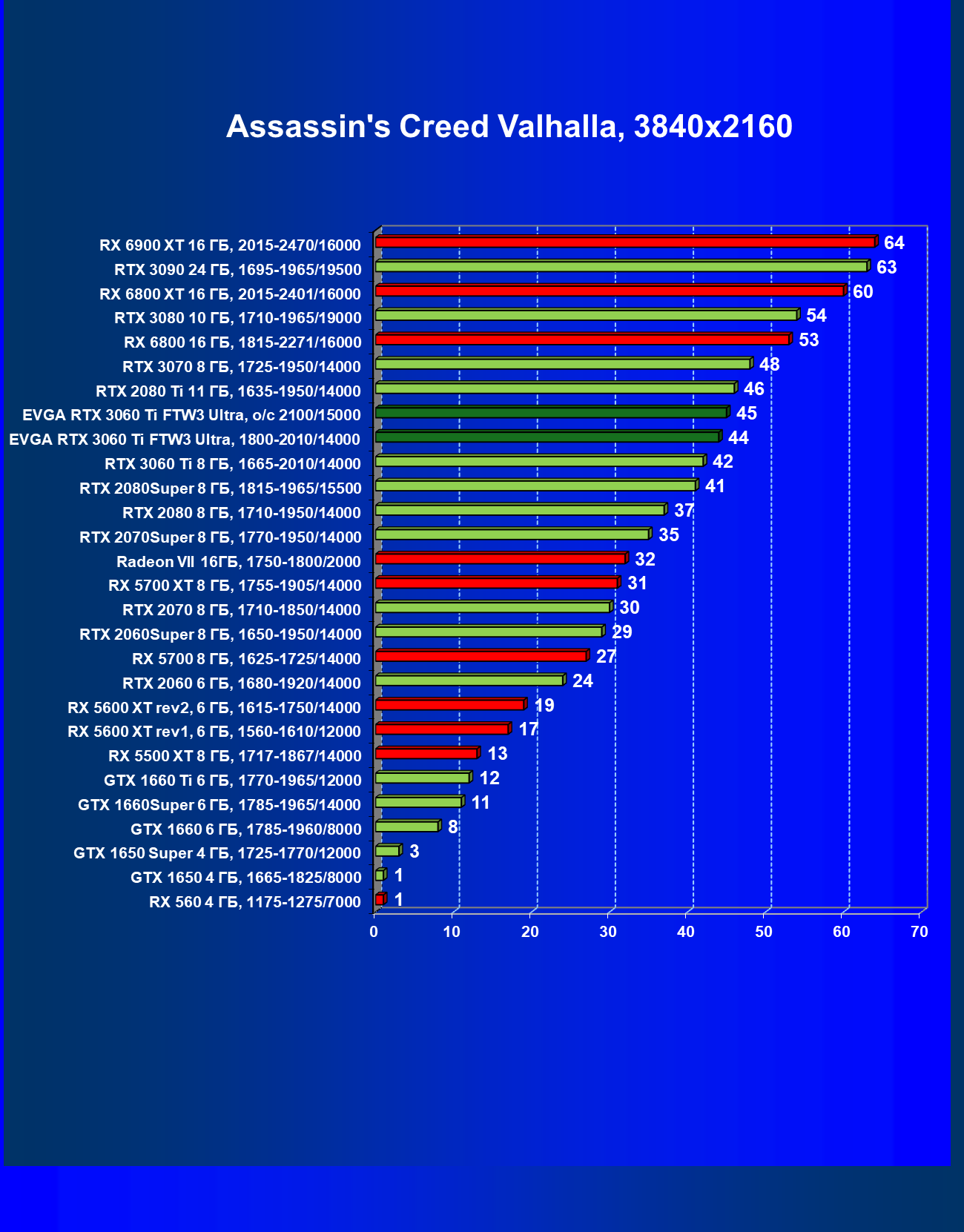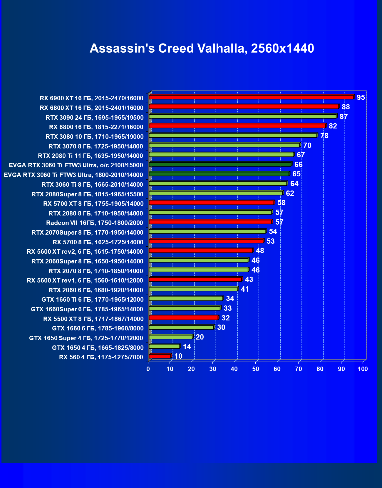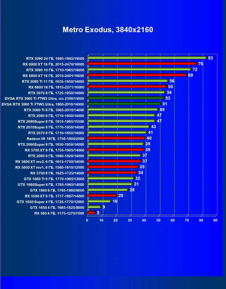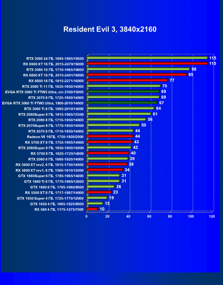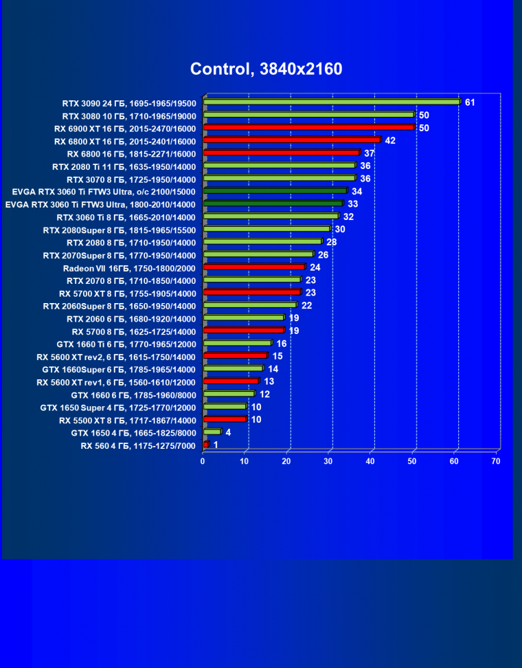 В целом соотношение сил среди видеокарт Nvidia осталось таким же, причем GeForce RTX 3060 Ti легко выиграл сражение даже у заведомо более дорогого Radeon RX 6800.