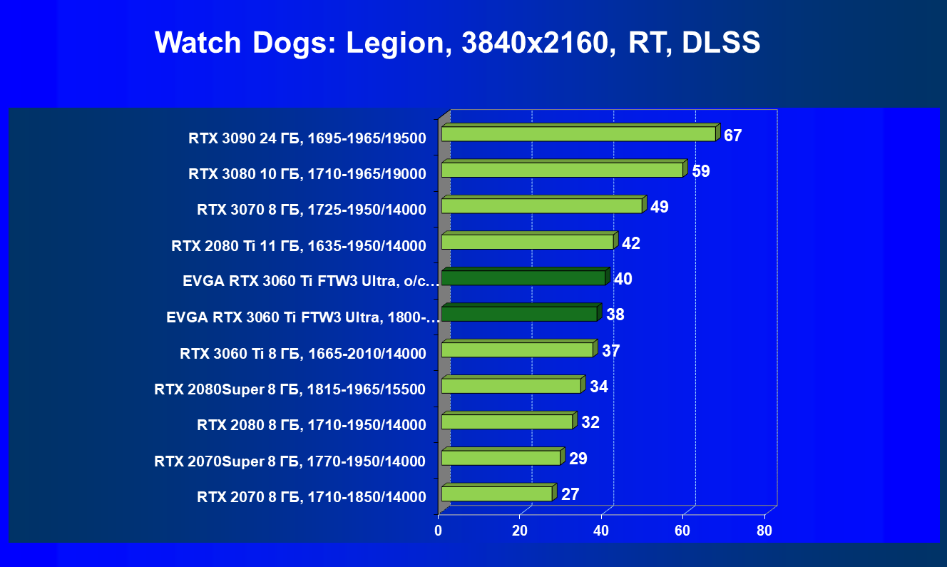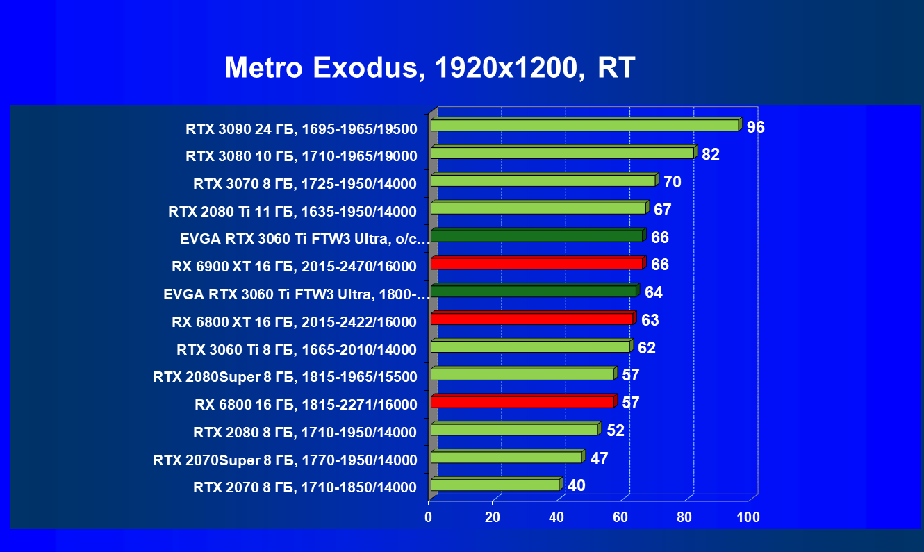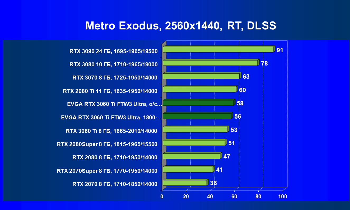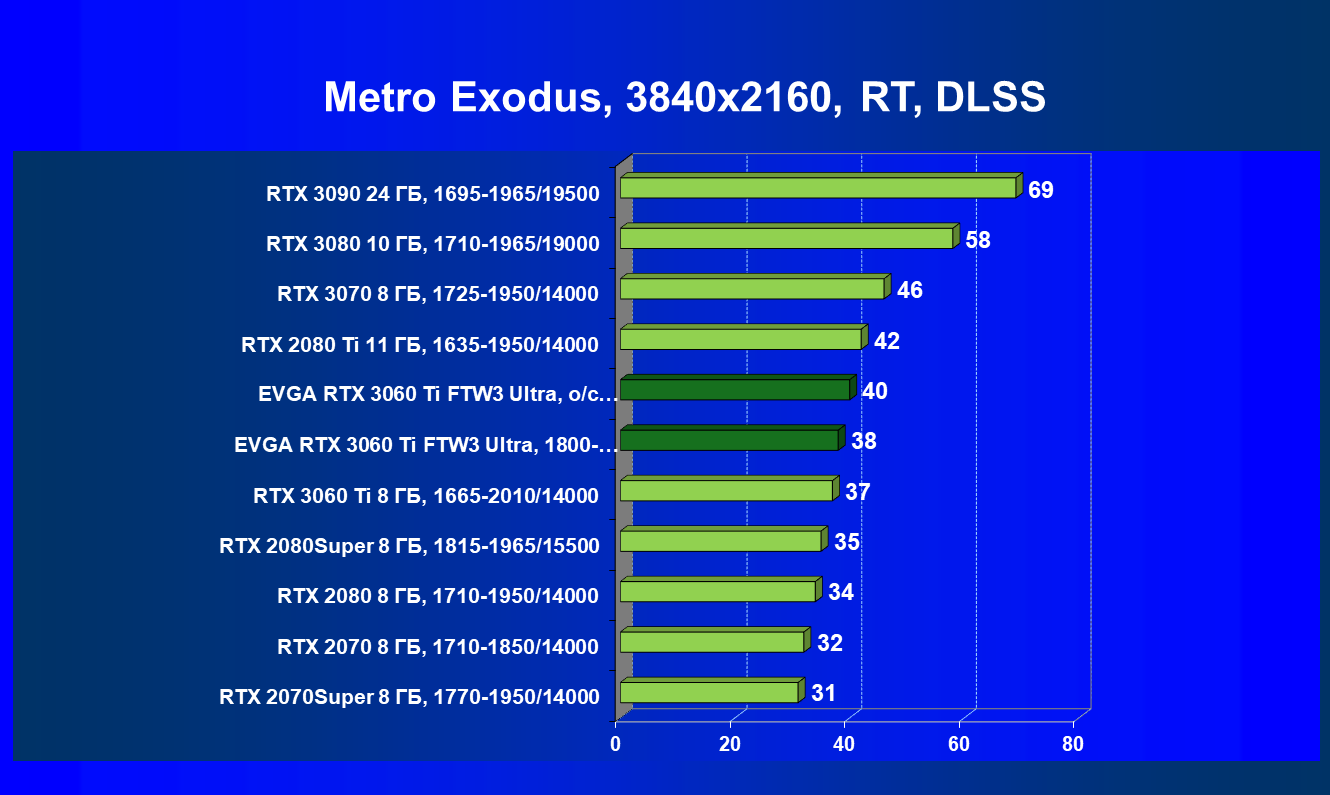 | 08 | EVGA RTX 3060 Ti FTW3 Ultra, разгон до 2100/15000 | 960 | 98 | 98 000 |
