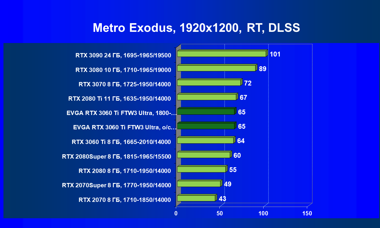| 03 | EVGA RTX 3060 Ti FTW3 Ultra, разгон до 2100/15000 | 16 | 159 | 98 000 |