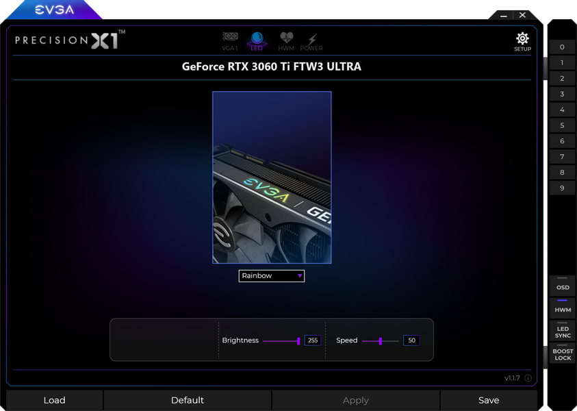 Управление подсветкой традиционно выполнено с помощью той же фирменной программы EVGA — Precision X1.