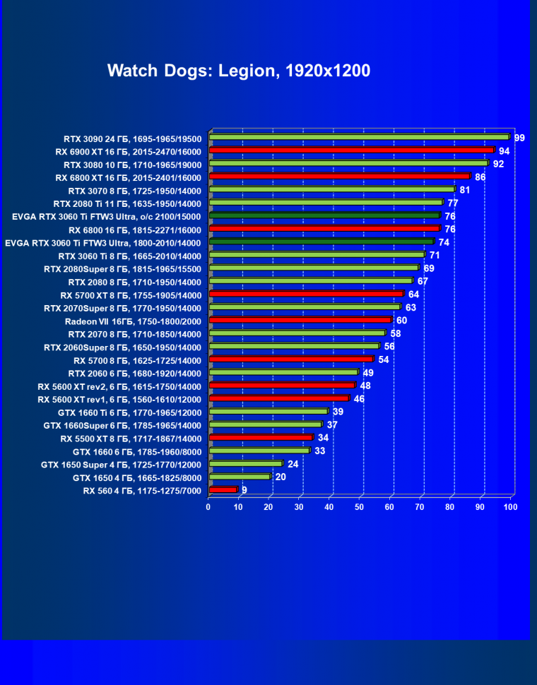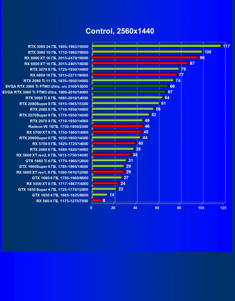 | 09 | EVGA RTX 3060 Ti FTW3 Ultra, 1800—2010/14000 | 940 | 96 | 98 000 |