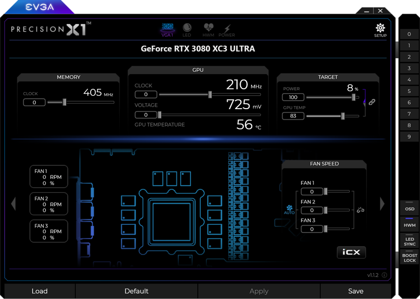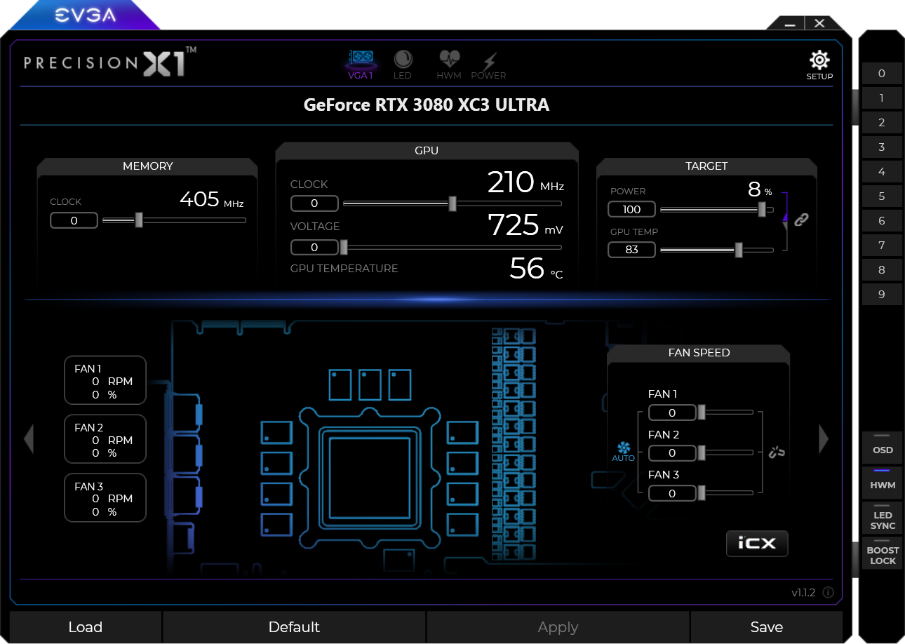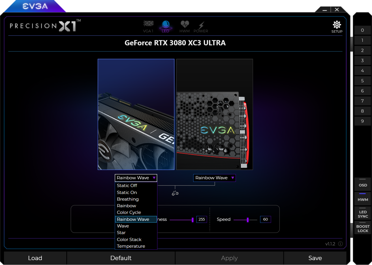 Управление подсветкой традиционно выполнено с помощью той же фирменной программы EVGA — Precision X1.
