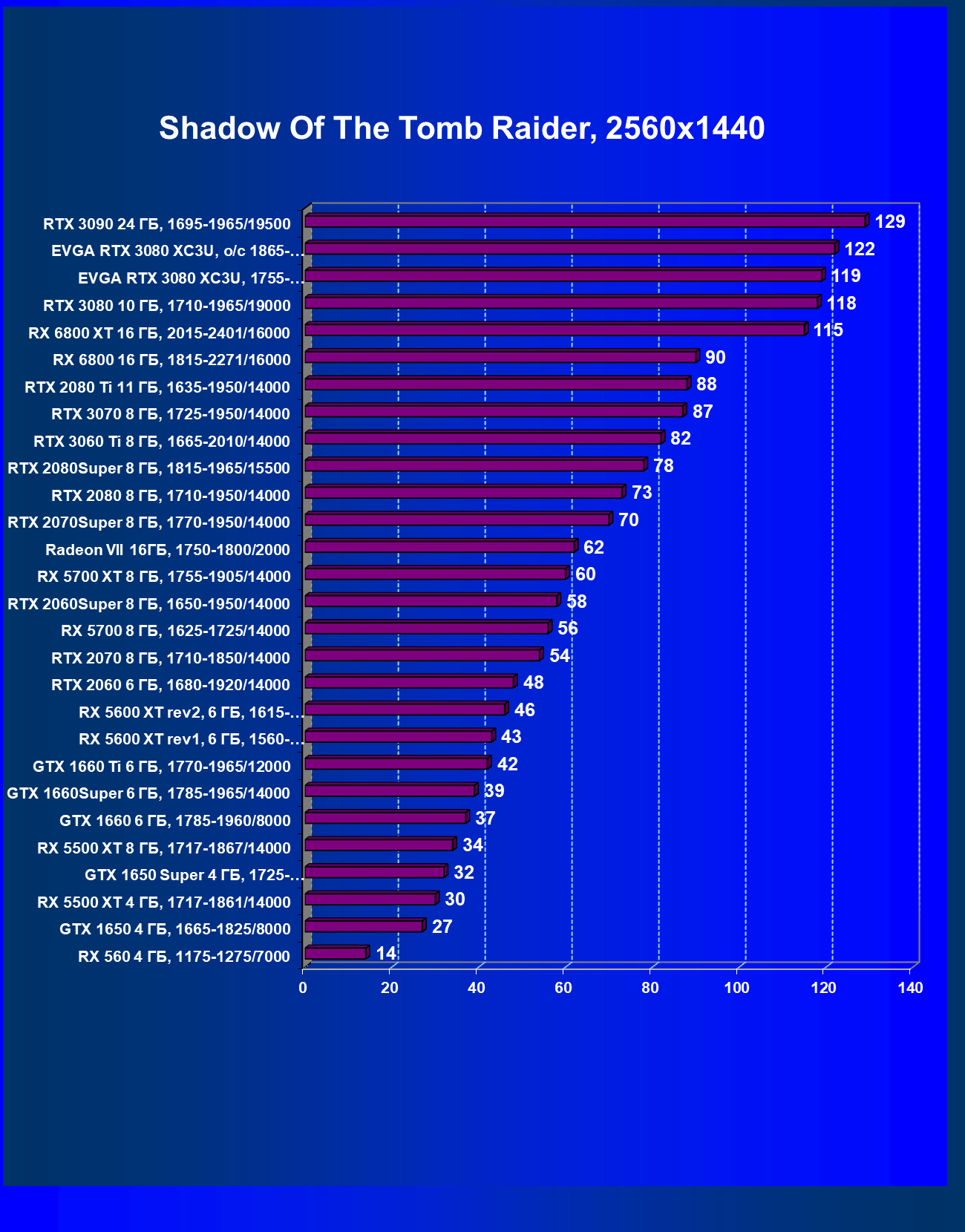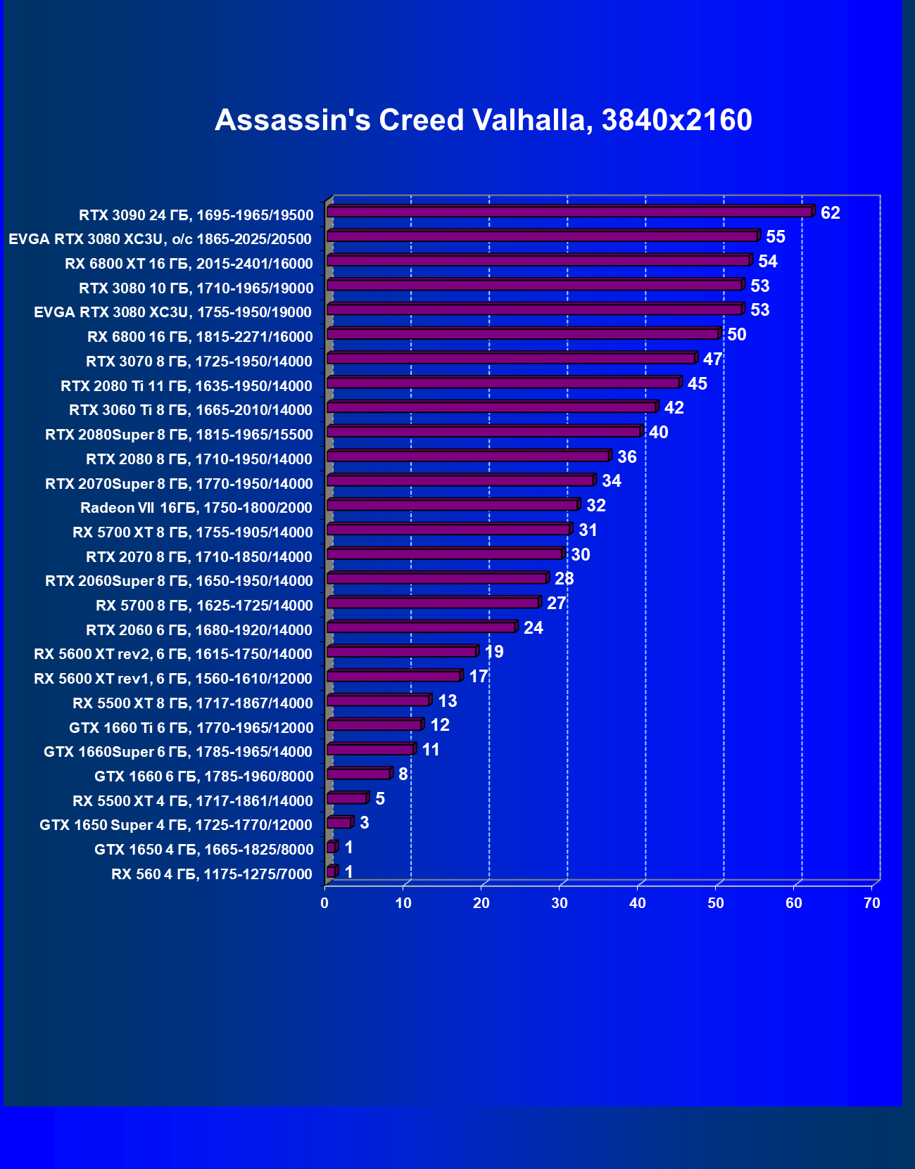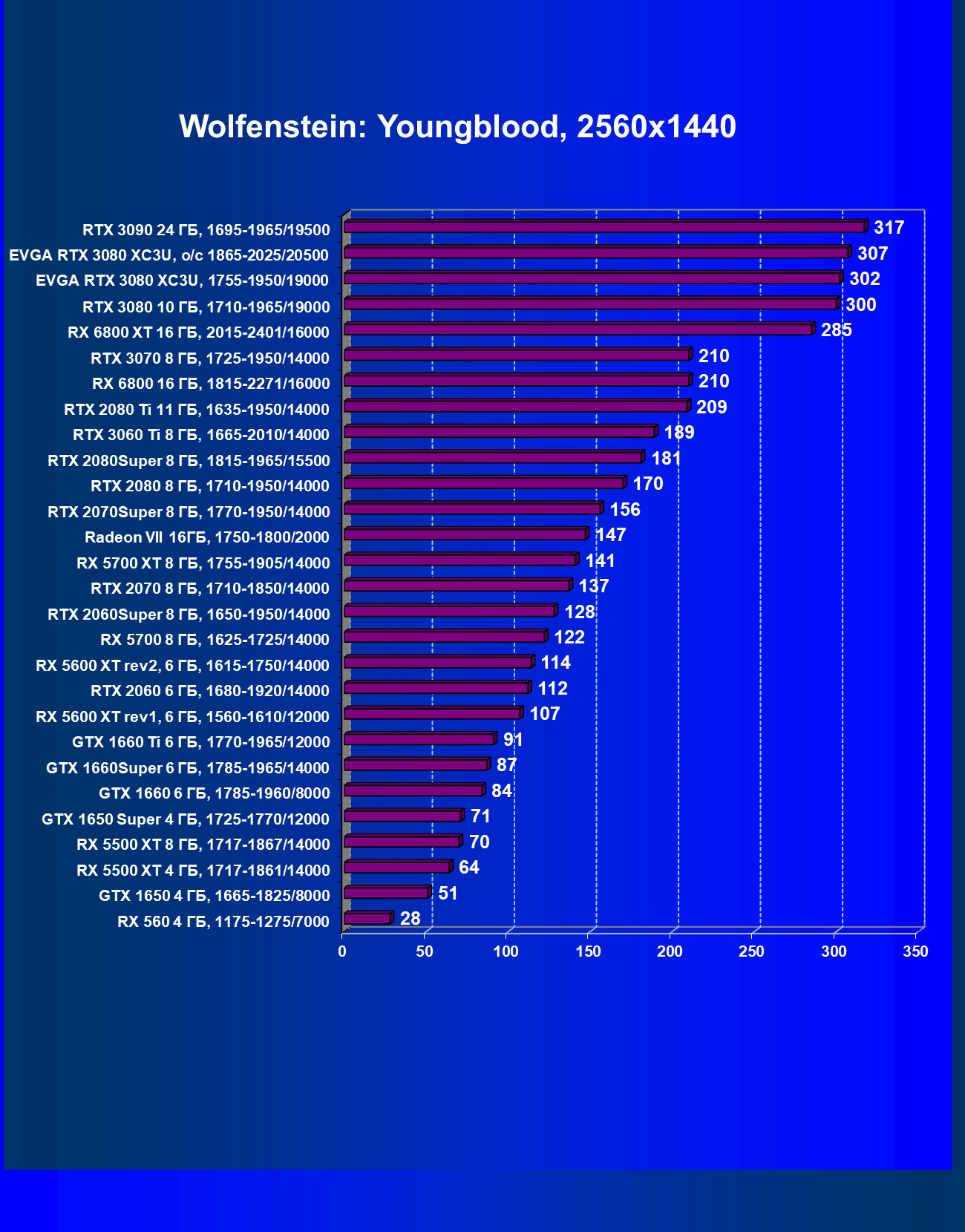 | 03 | EVGA RTX 3080 XC3U, разгон до 1865—2025/20500 | 28 | 237 | 86 000 |