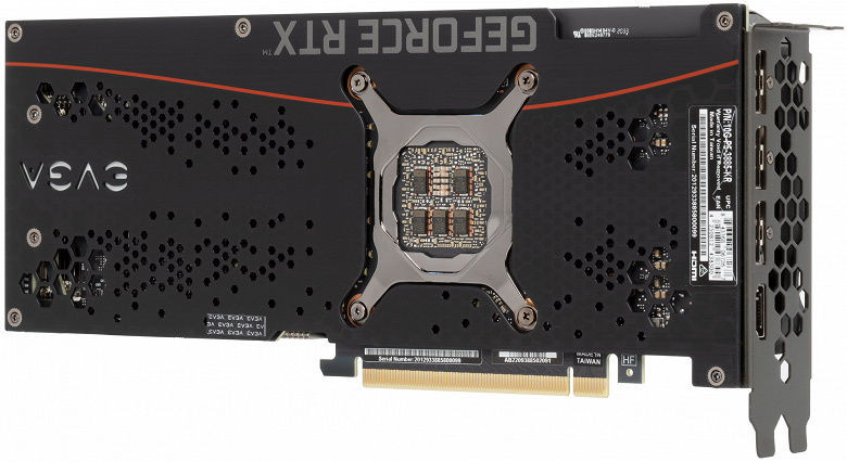 Штатные частоты памяти у карты EVGA равны референсным значениям, а вот Boost-частота работы ядра немного выше (1755 против 1710 МГц), однако прибавку к производительности это дает совсем небольшую (не более 1%), к тому же максимальное значение частоты работы ядра оказалось даже ниже, чем у карты FE. Максимальное потребление карты EVGA — 330 Вт.
