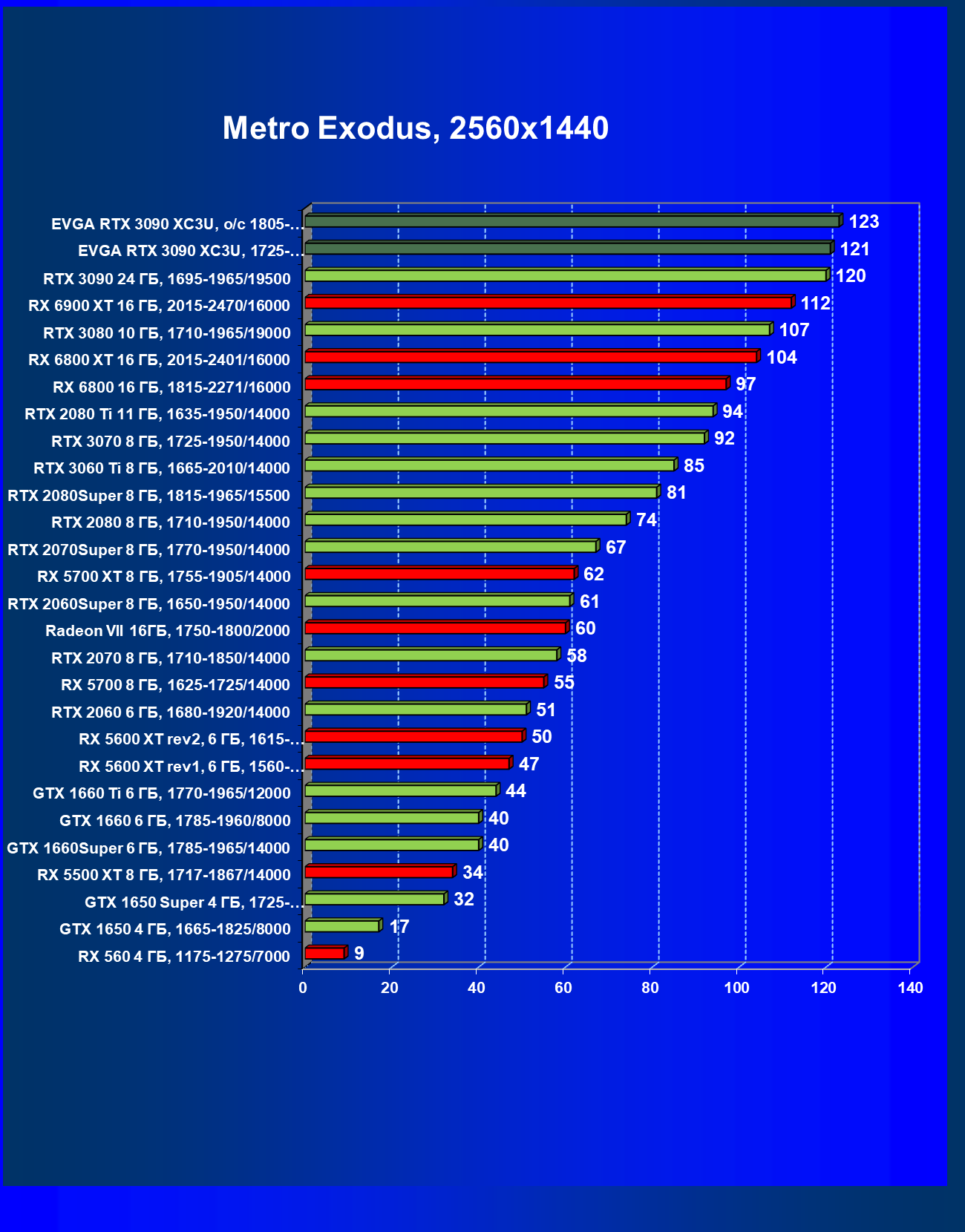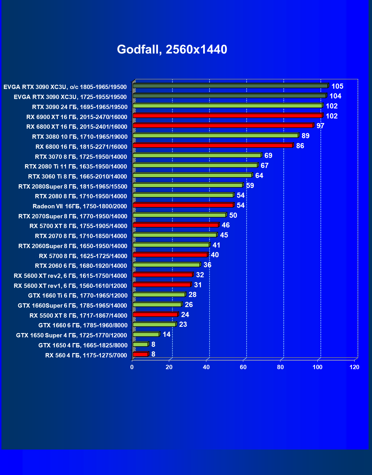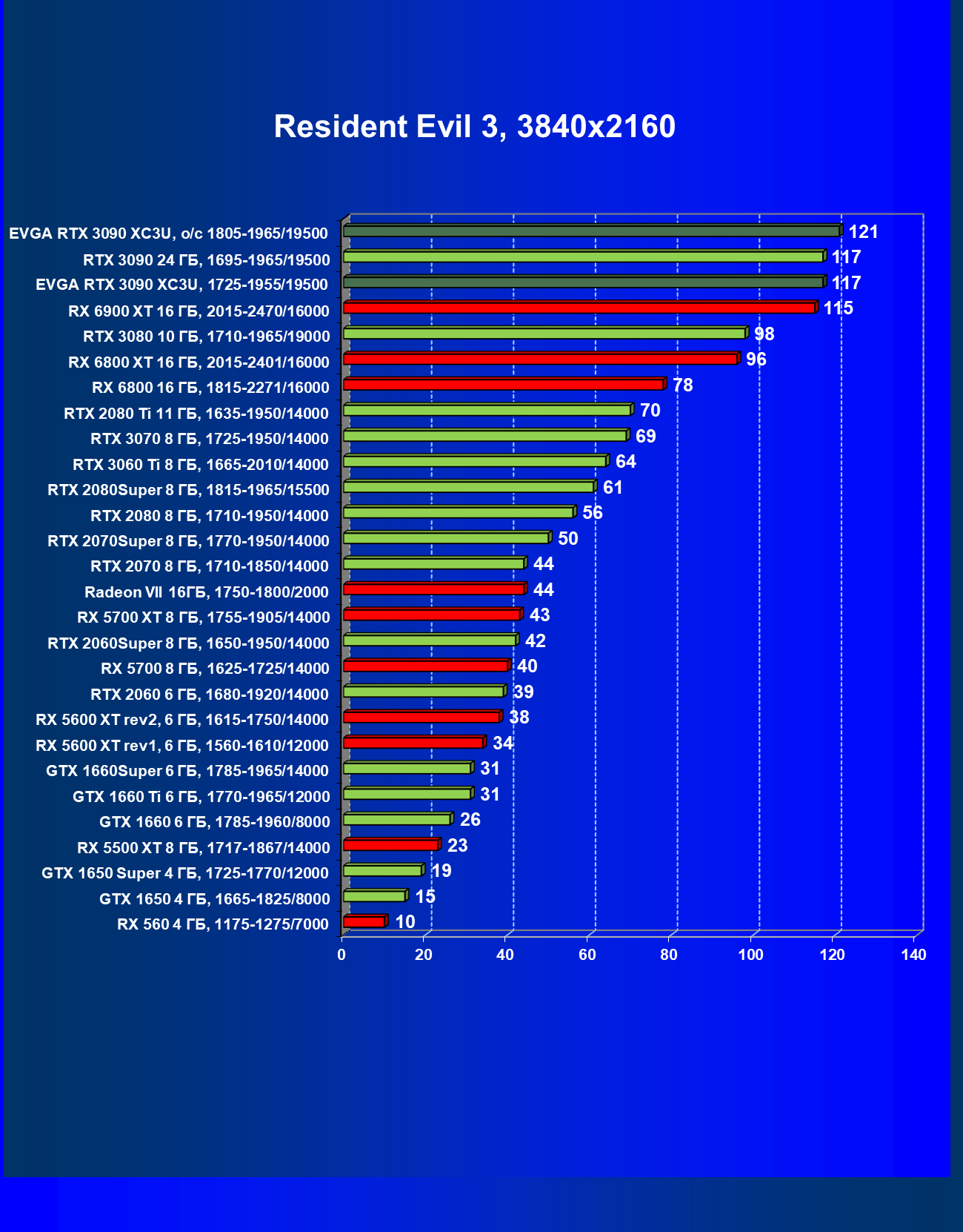 | 14 | RX 6900 XT 16 ГБ, 2015—2470/16000 | 13 | 163 | 130 000 |