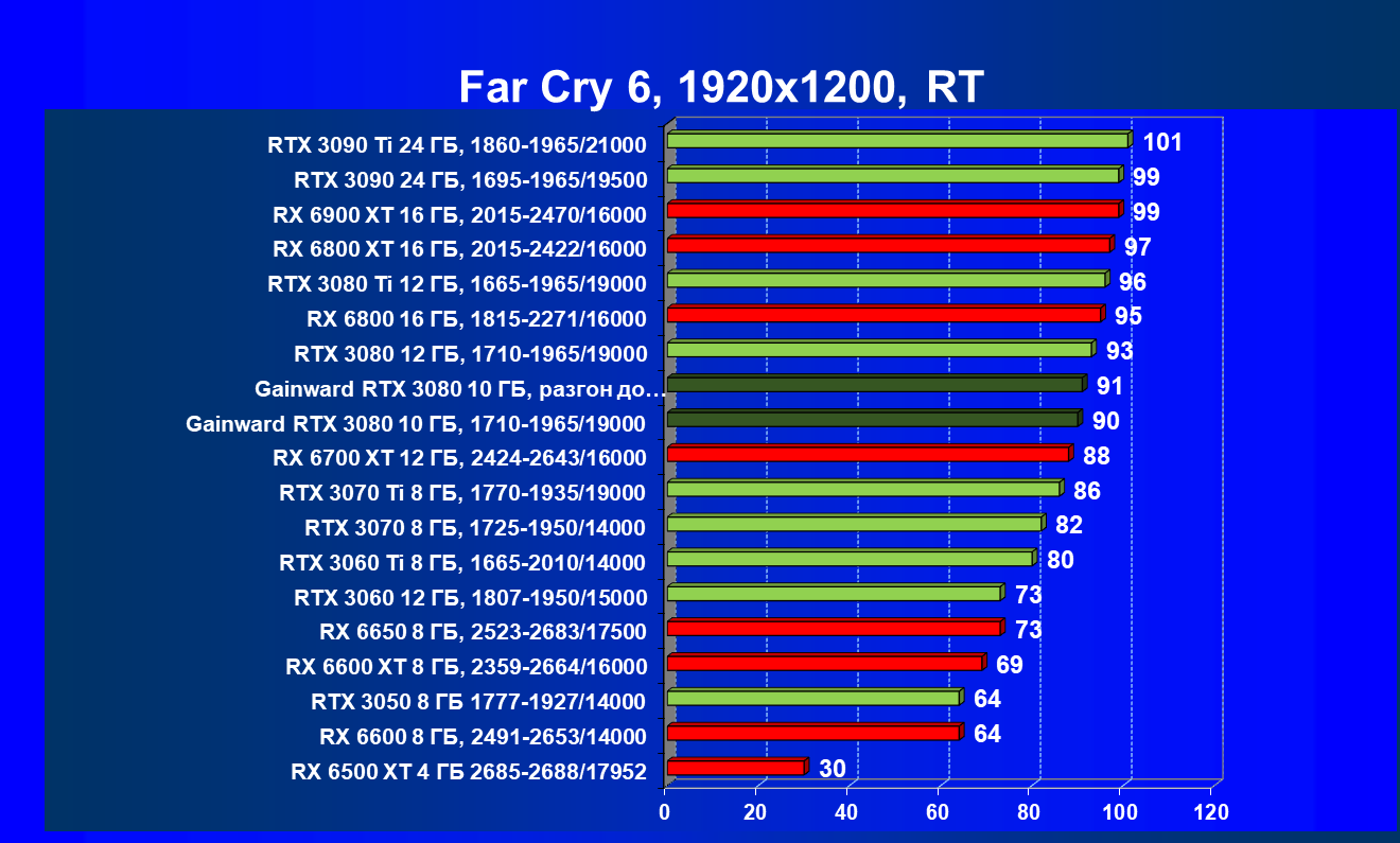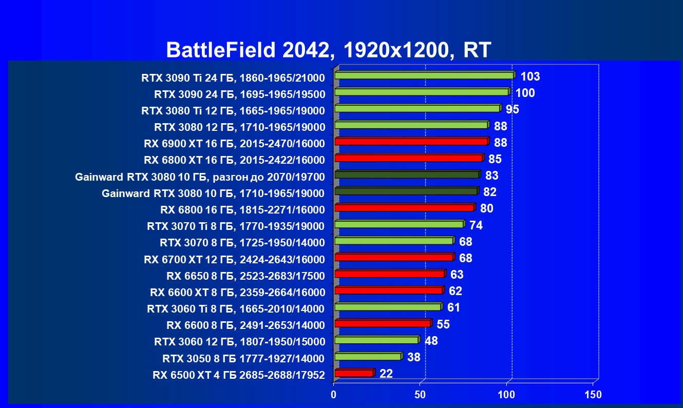 | 07 | Gainward RTX 3080 10 ГБ, 1710—1965/19000 | 610 | 103 | 59 000 |