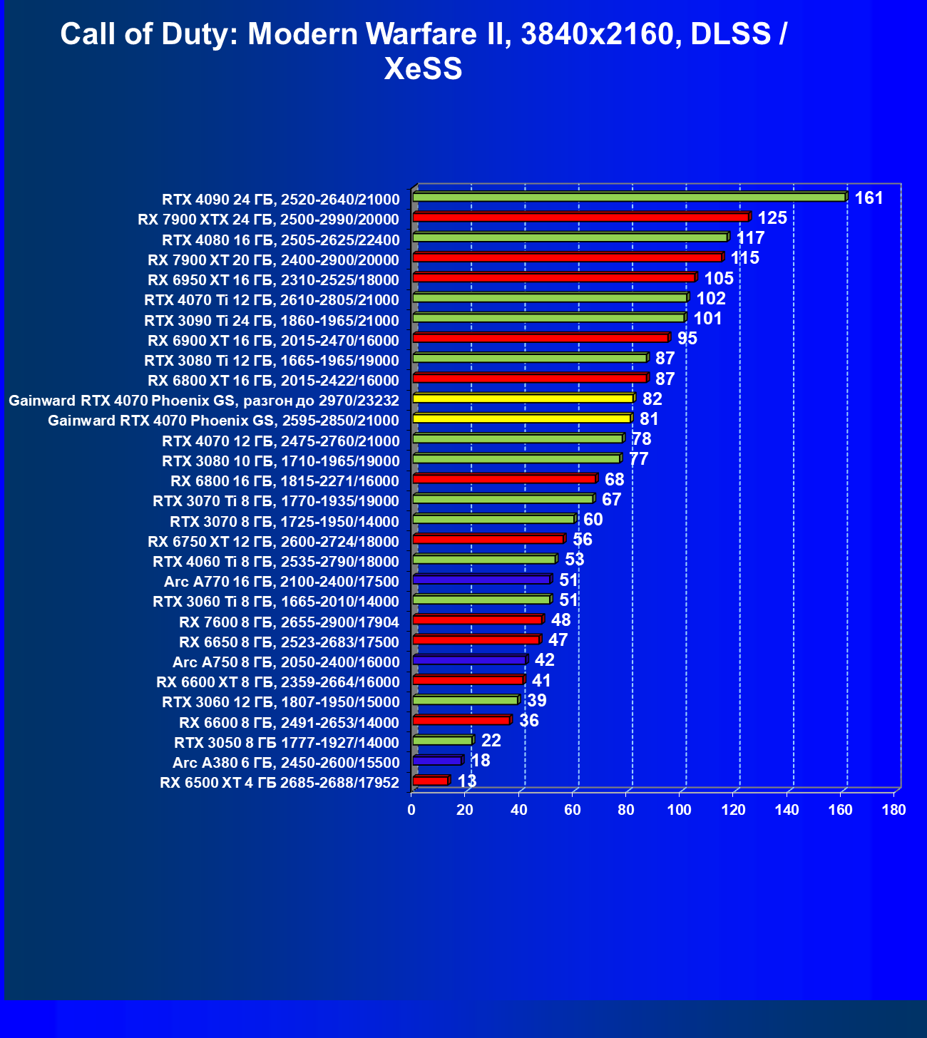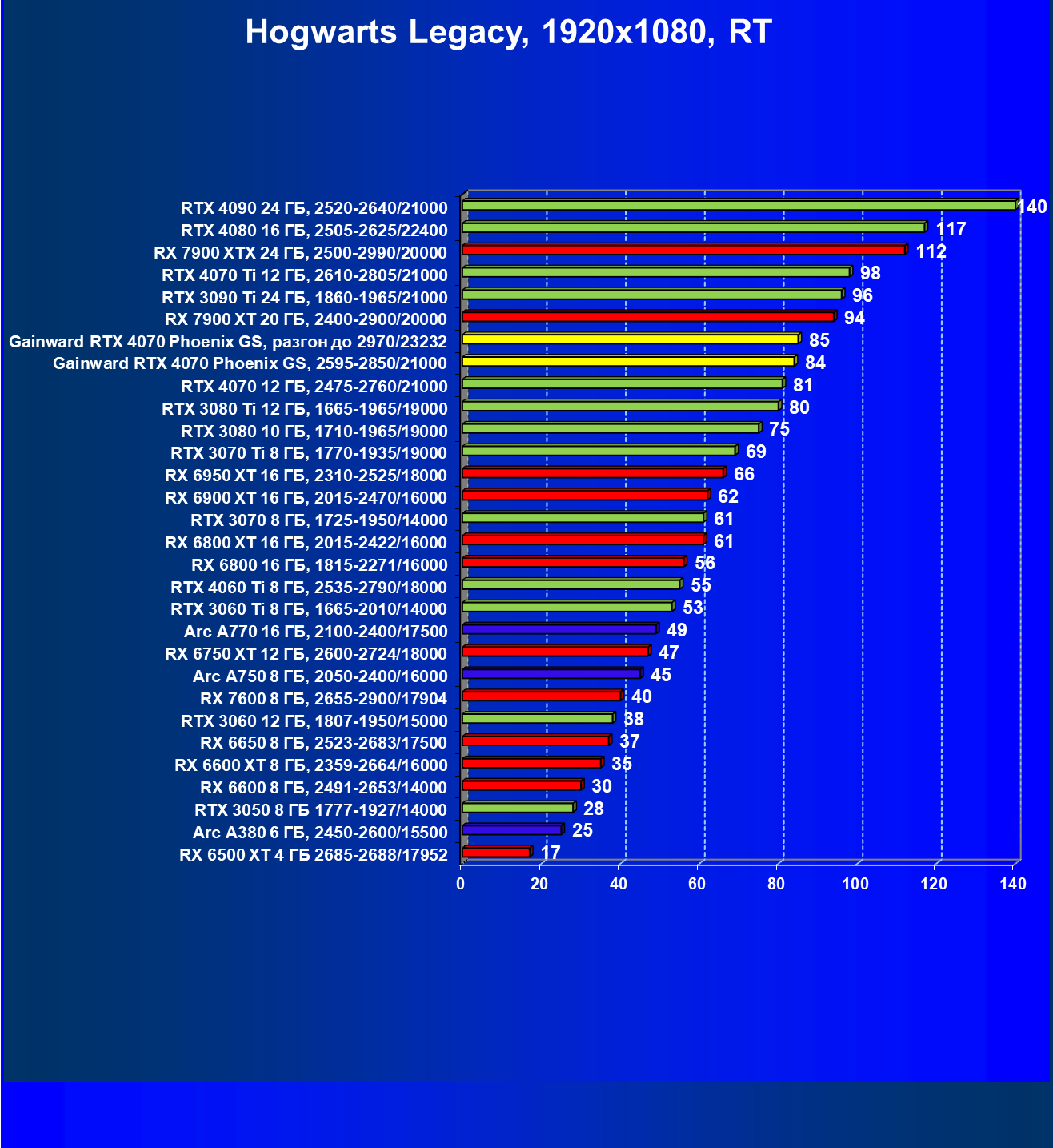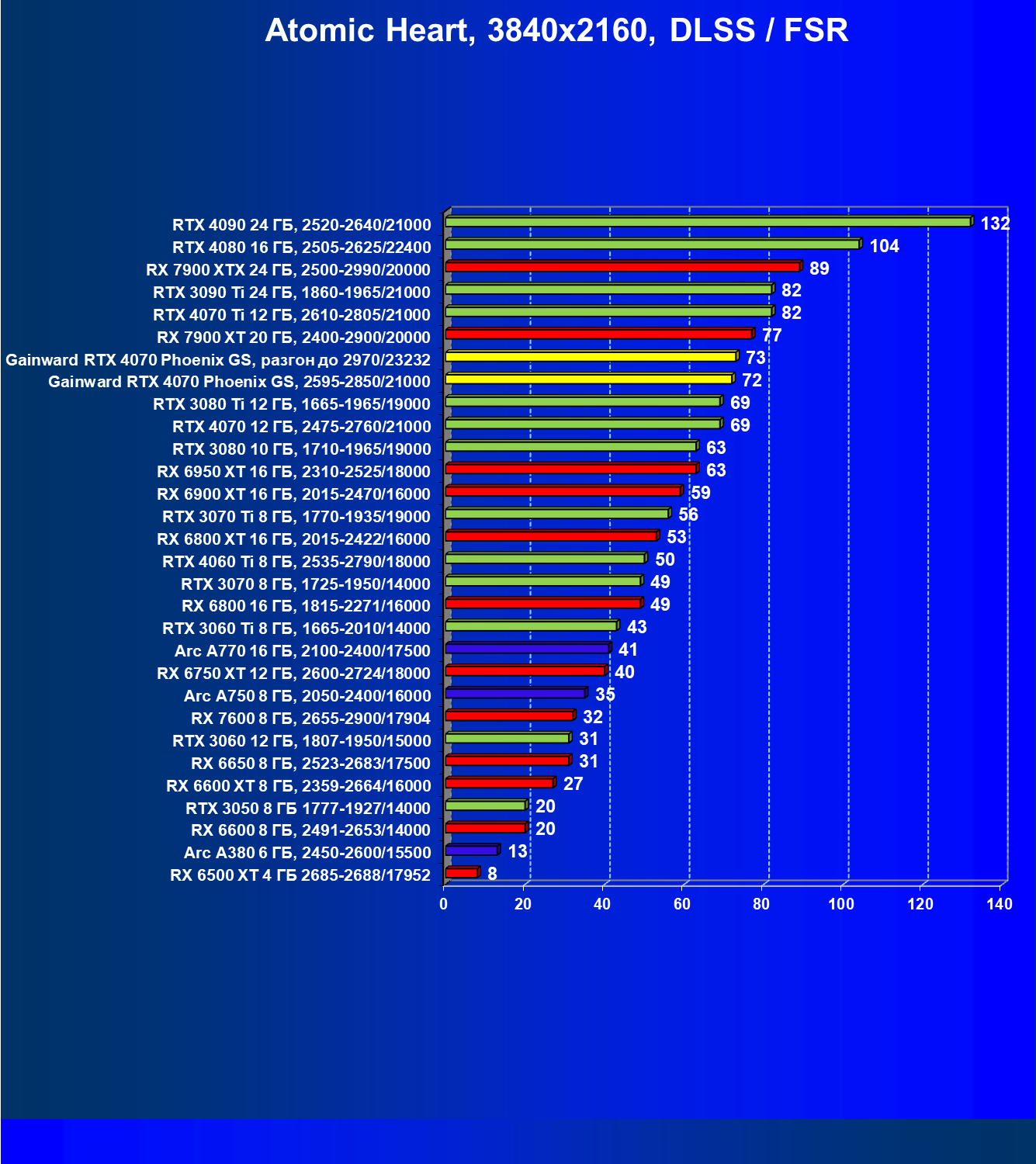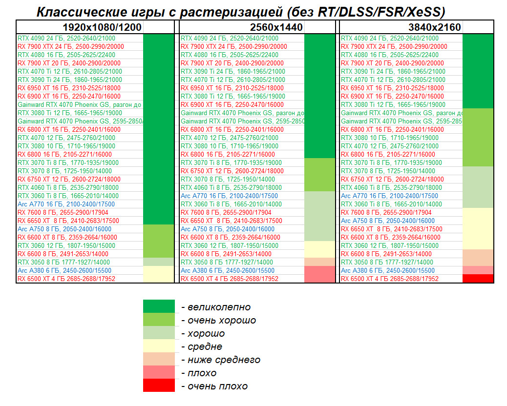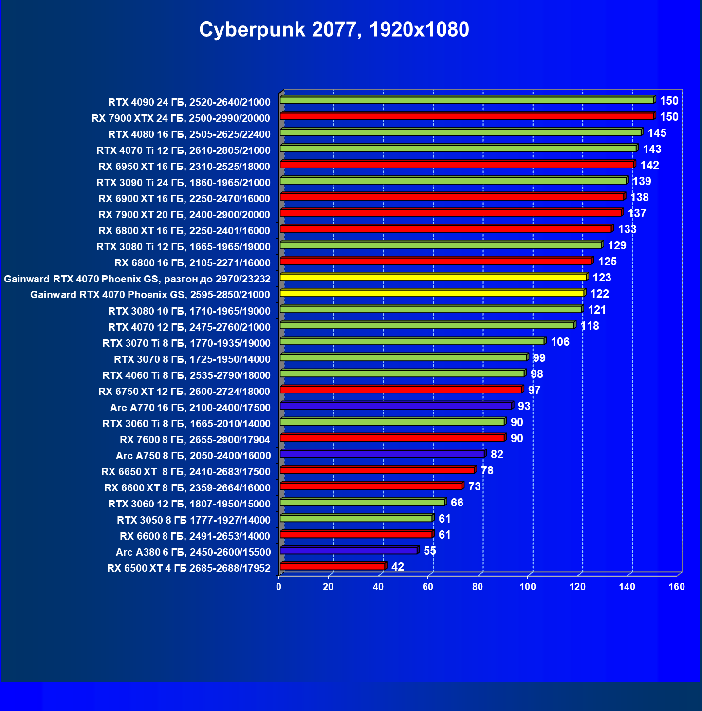 | 09 | Gainward RTX 4070 Phoenix GS, 2595—2850/21000 | 133 | 760 | 57 000 |