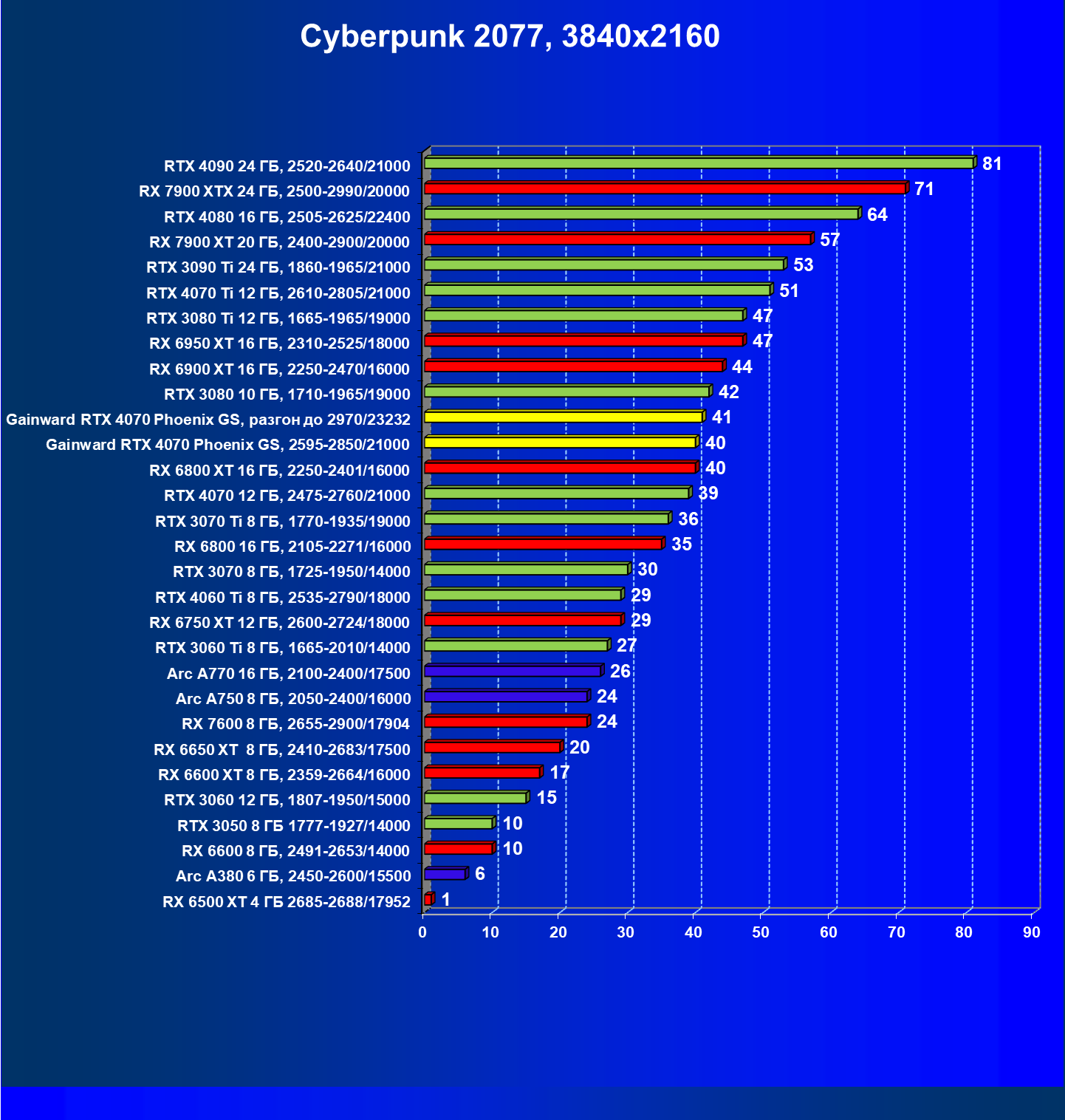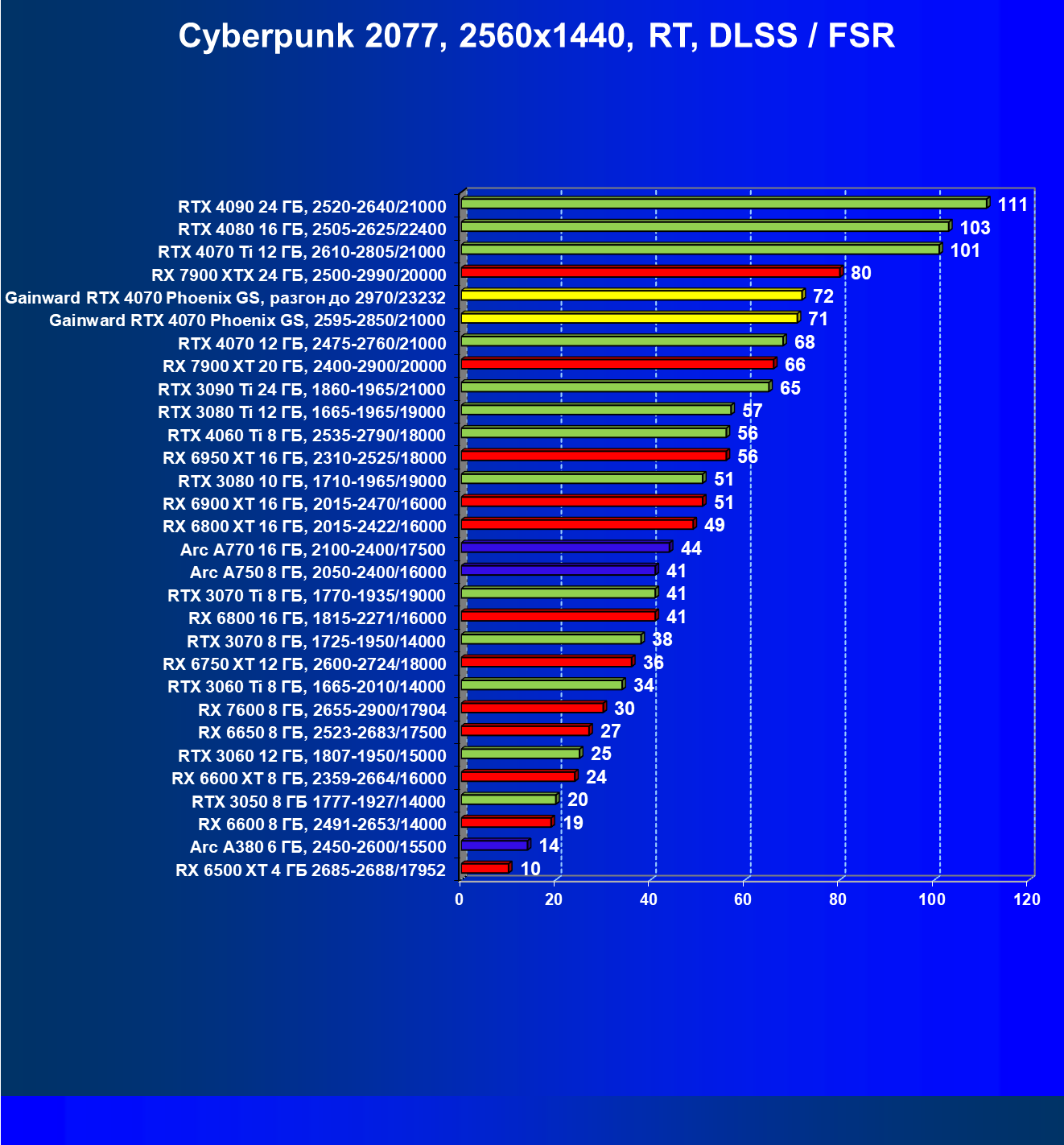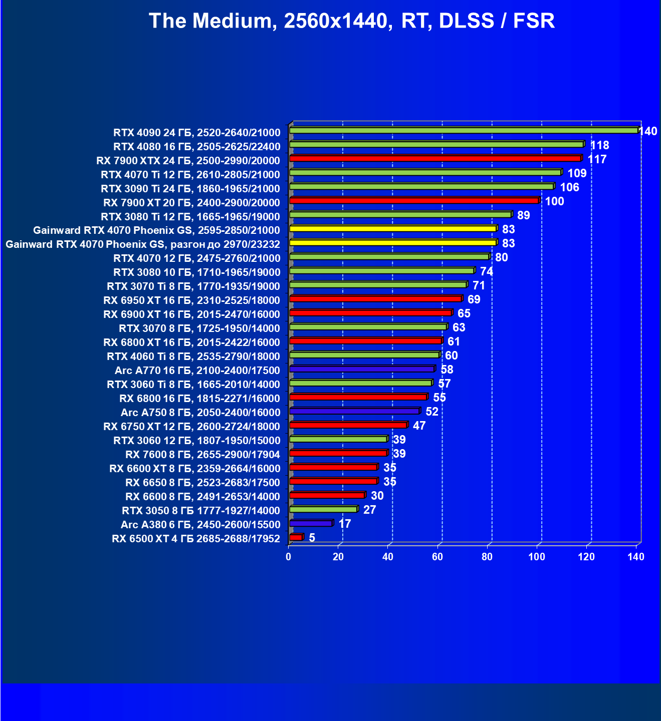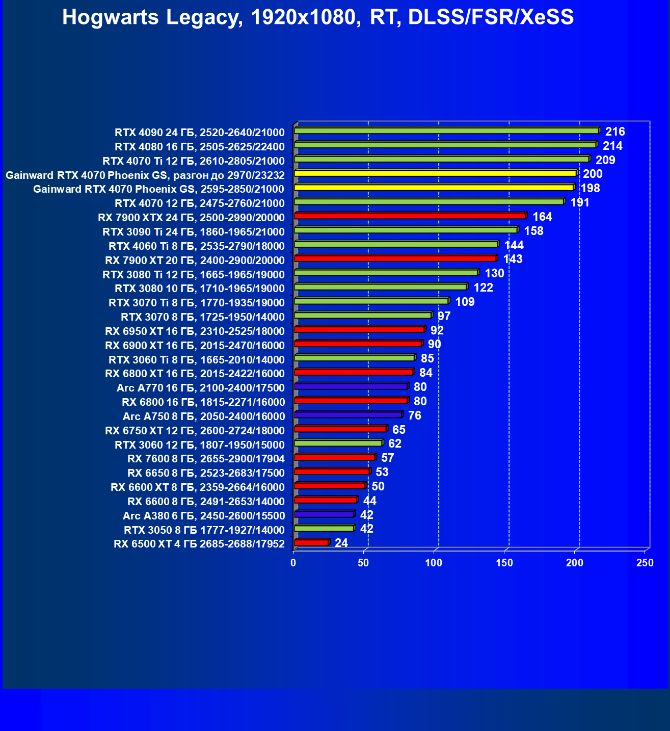 | 09 | Gainward RTX 4070 Phoenix GS, 2595—2850/21000 | 133 | 760 | 57 000 |