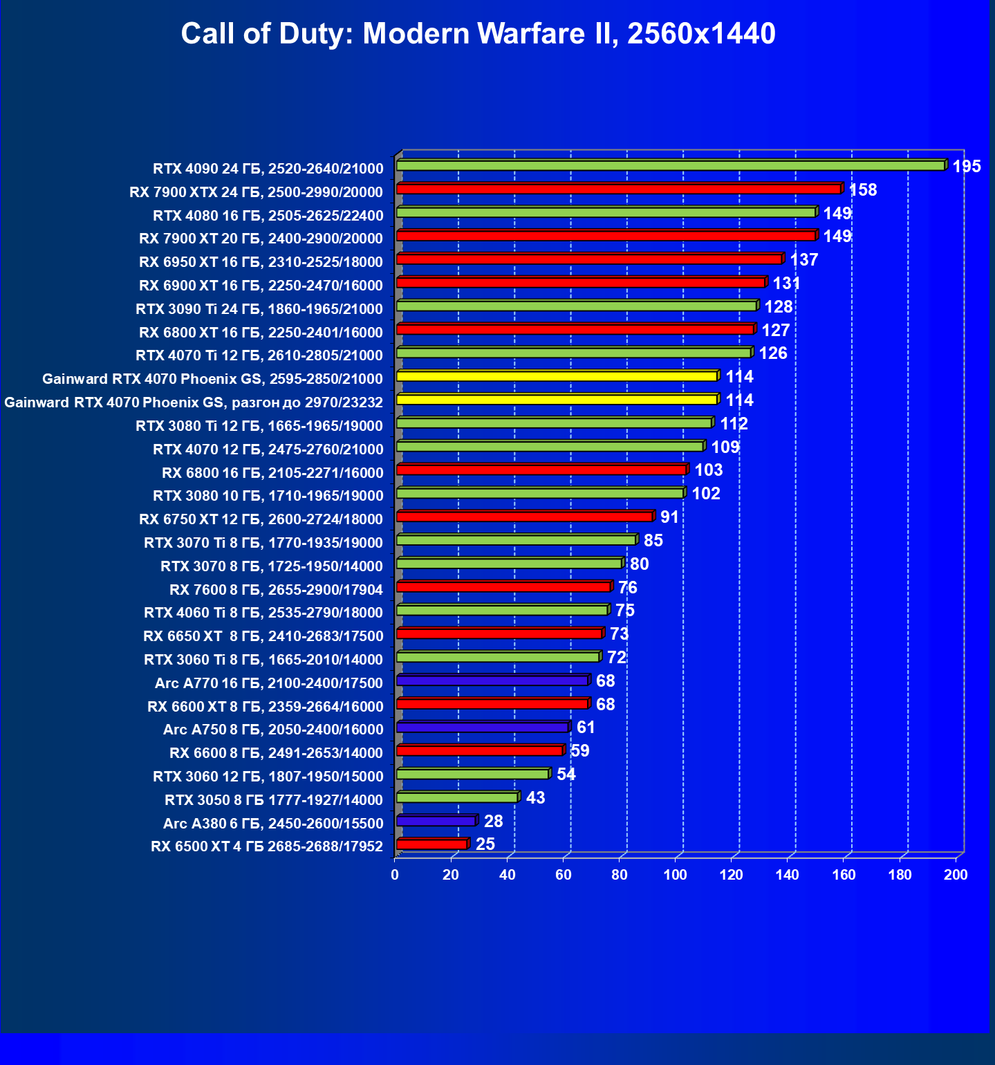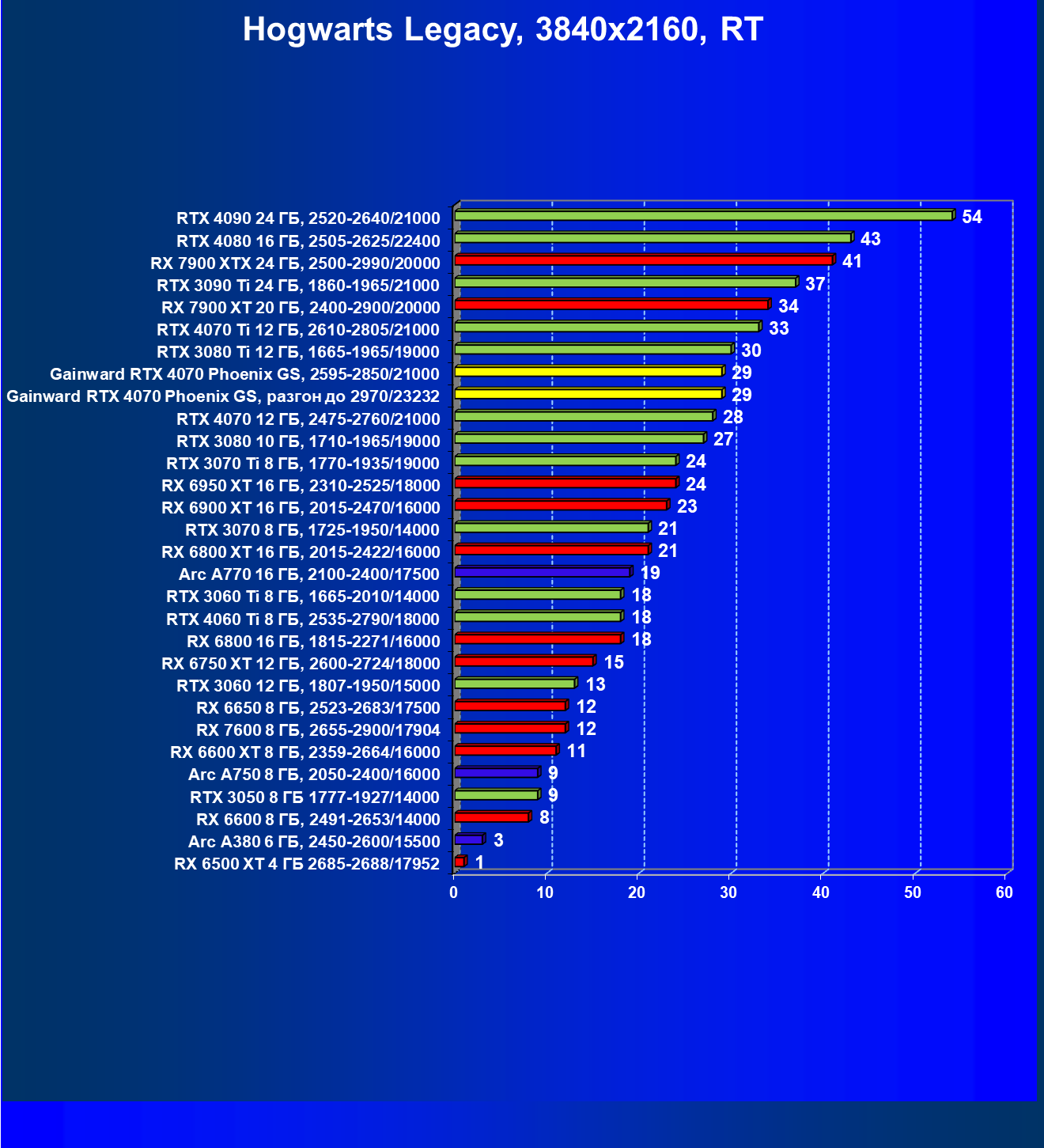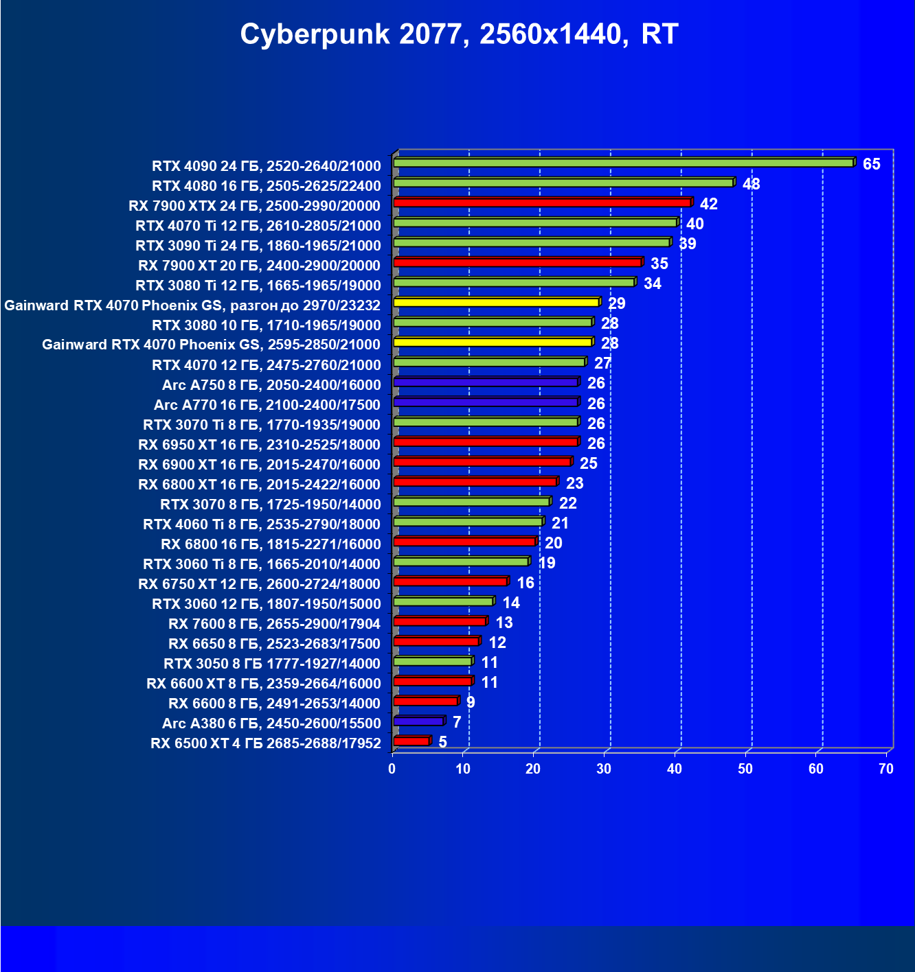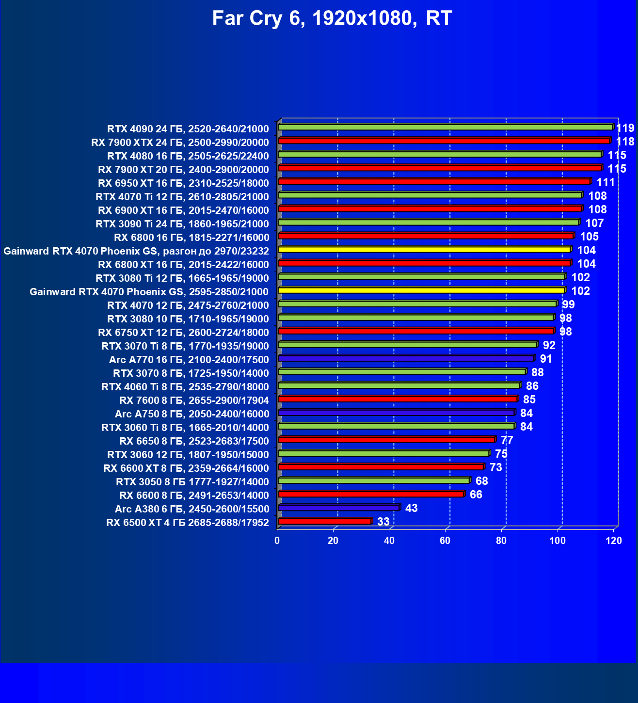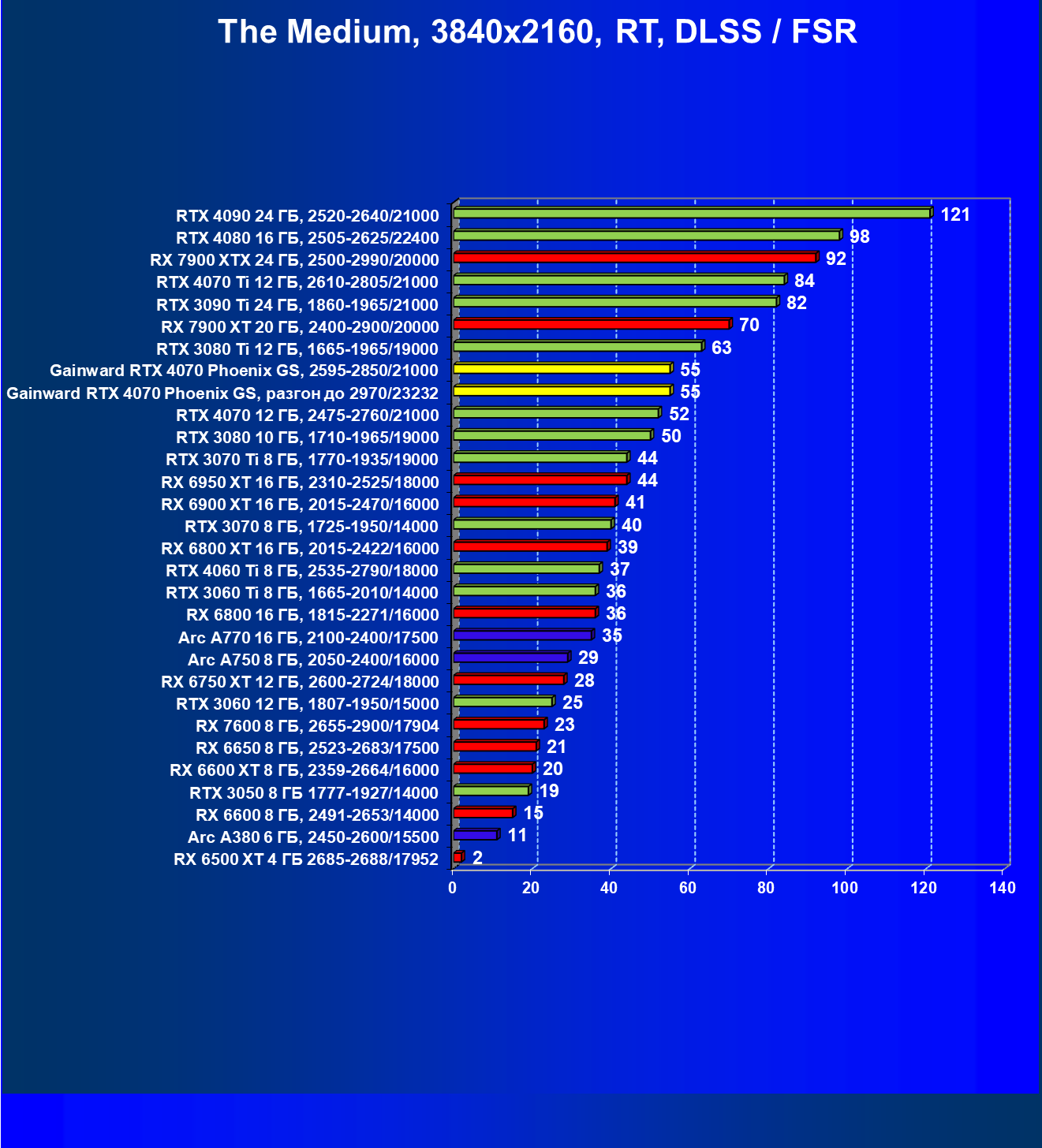 | 09 | Gainward RTX 4070 Phoenix GS, 2595—2850/21000 | 133 | 760 | 57 000 |