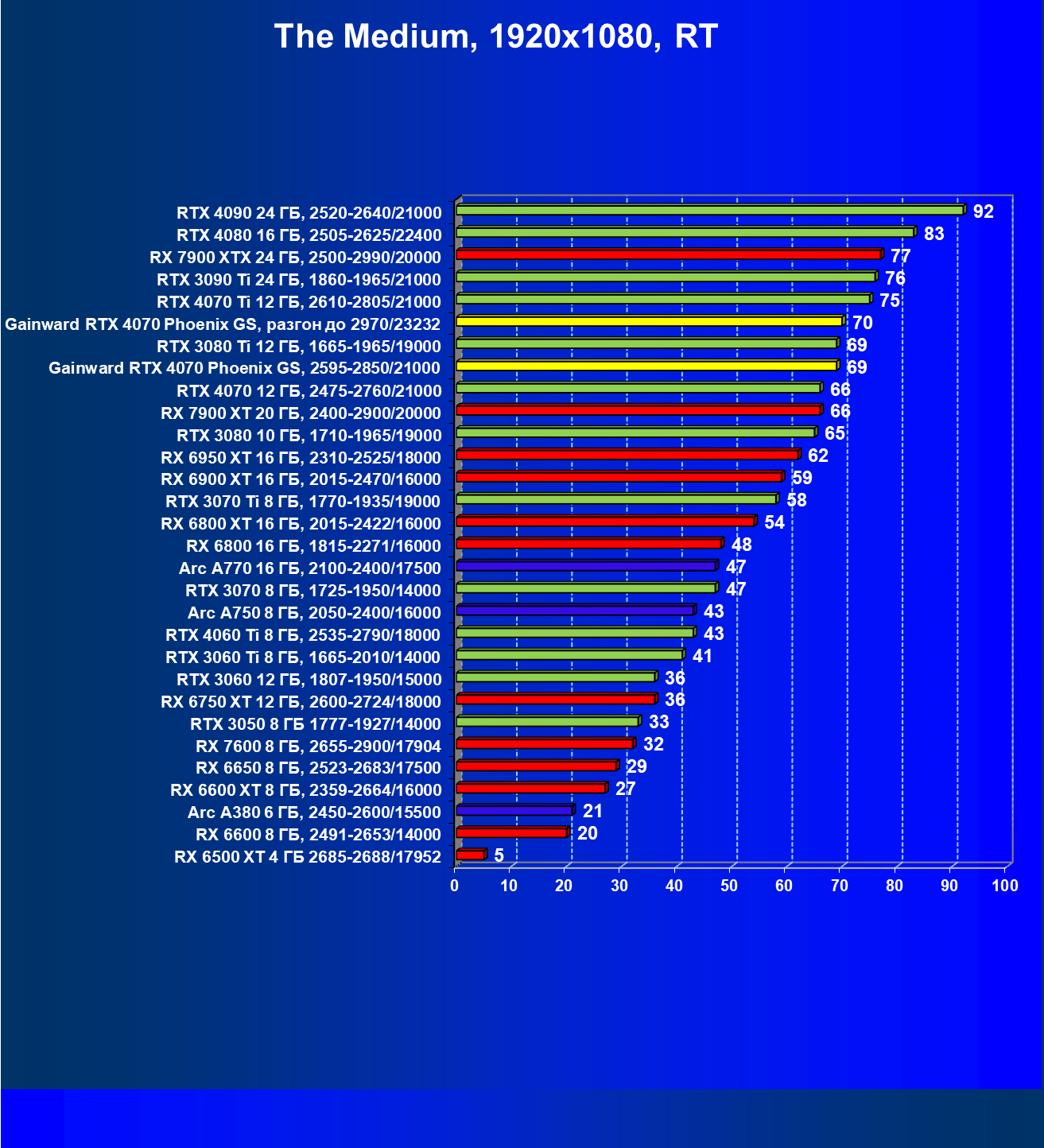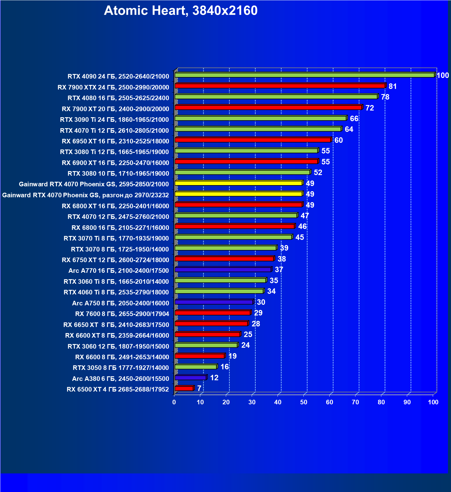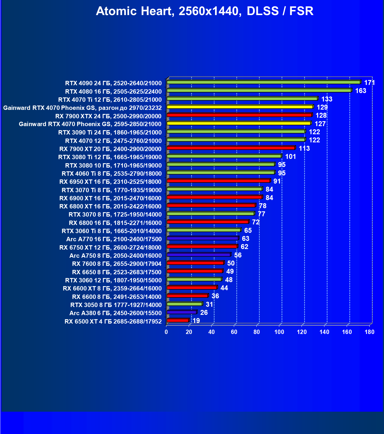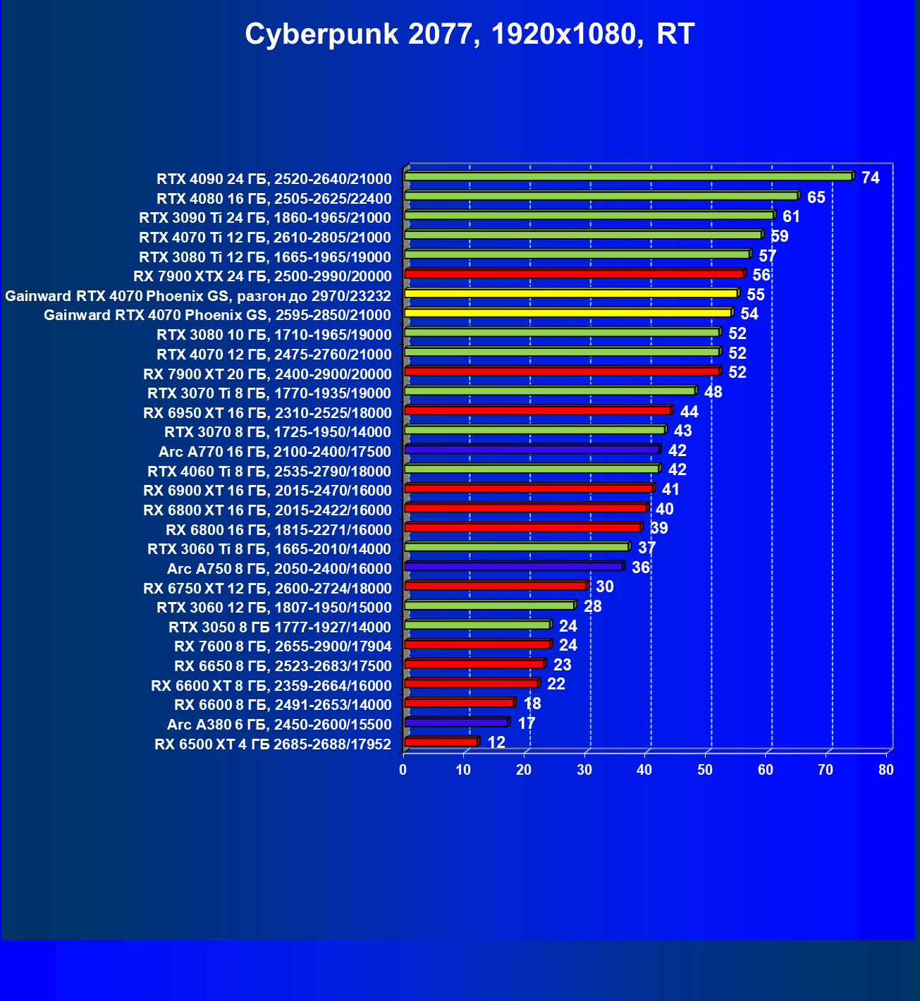 | 09 | Gainward RTX 4070 Phoenix GS, 2595—2850/21000 | 133 | 760 | 57 000 |