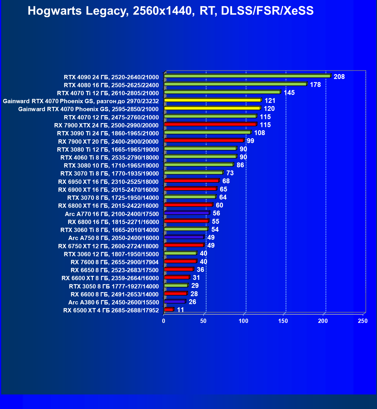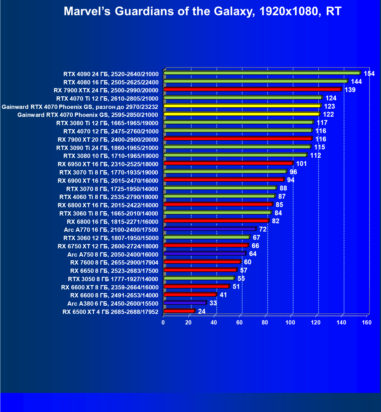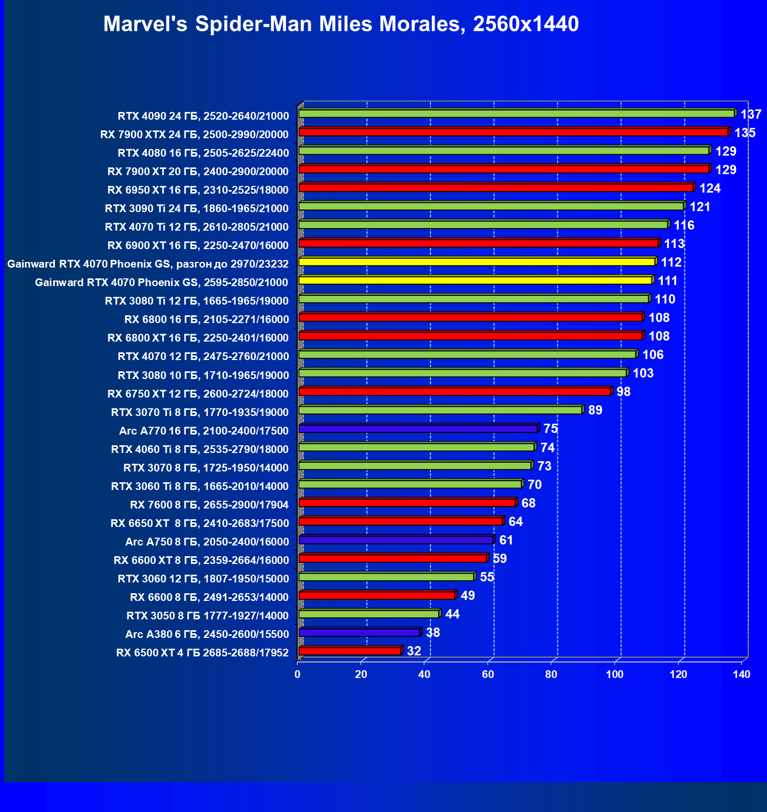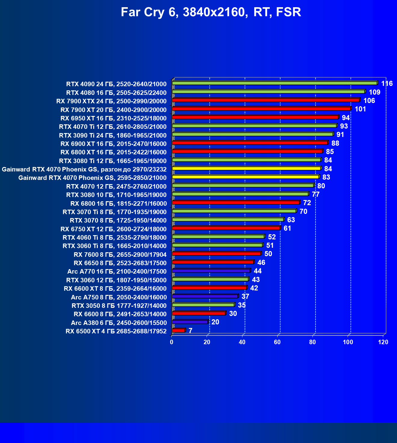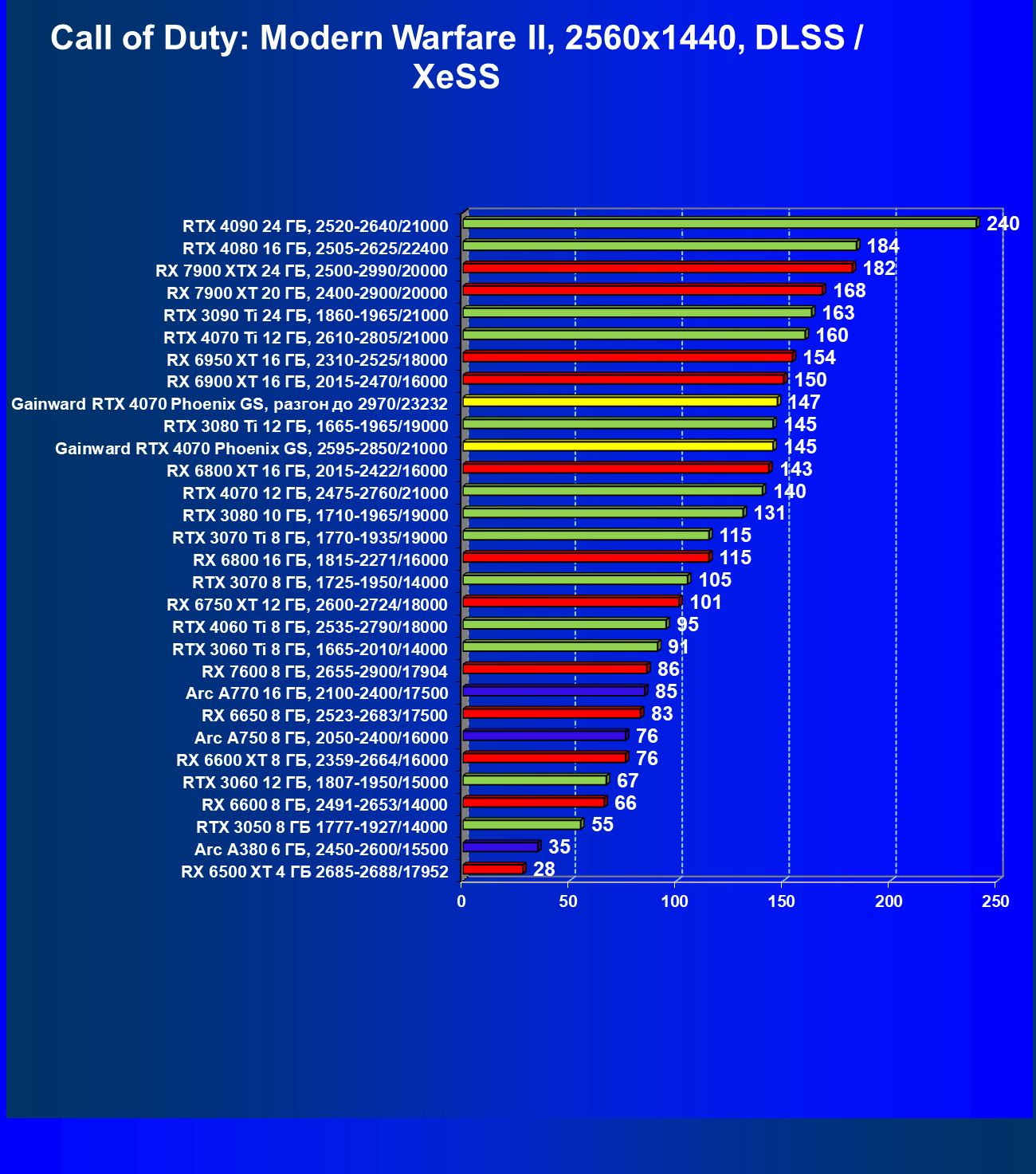 | 09 | Gainward RTX 4070 Phoenix GS, 2595—2850/21000 | 133 | 760 | 57 000 |