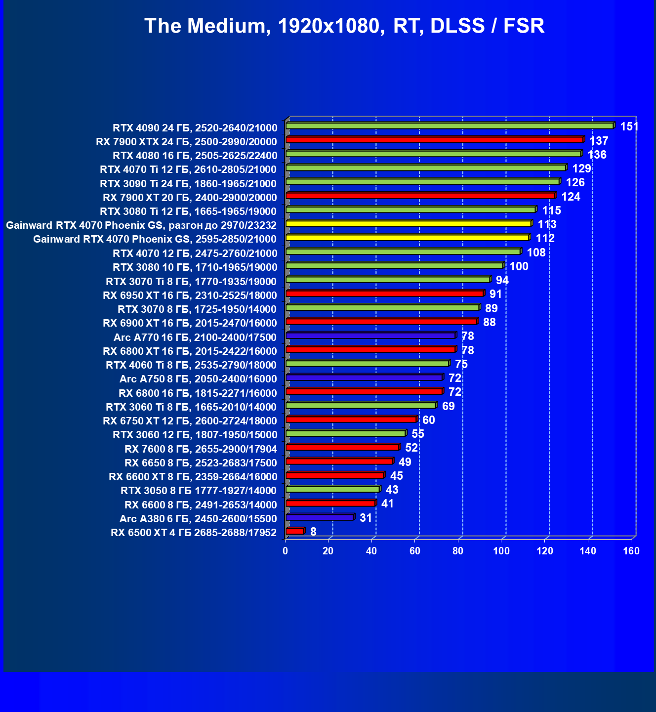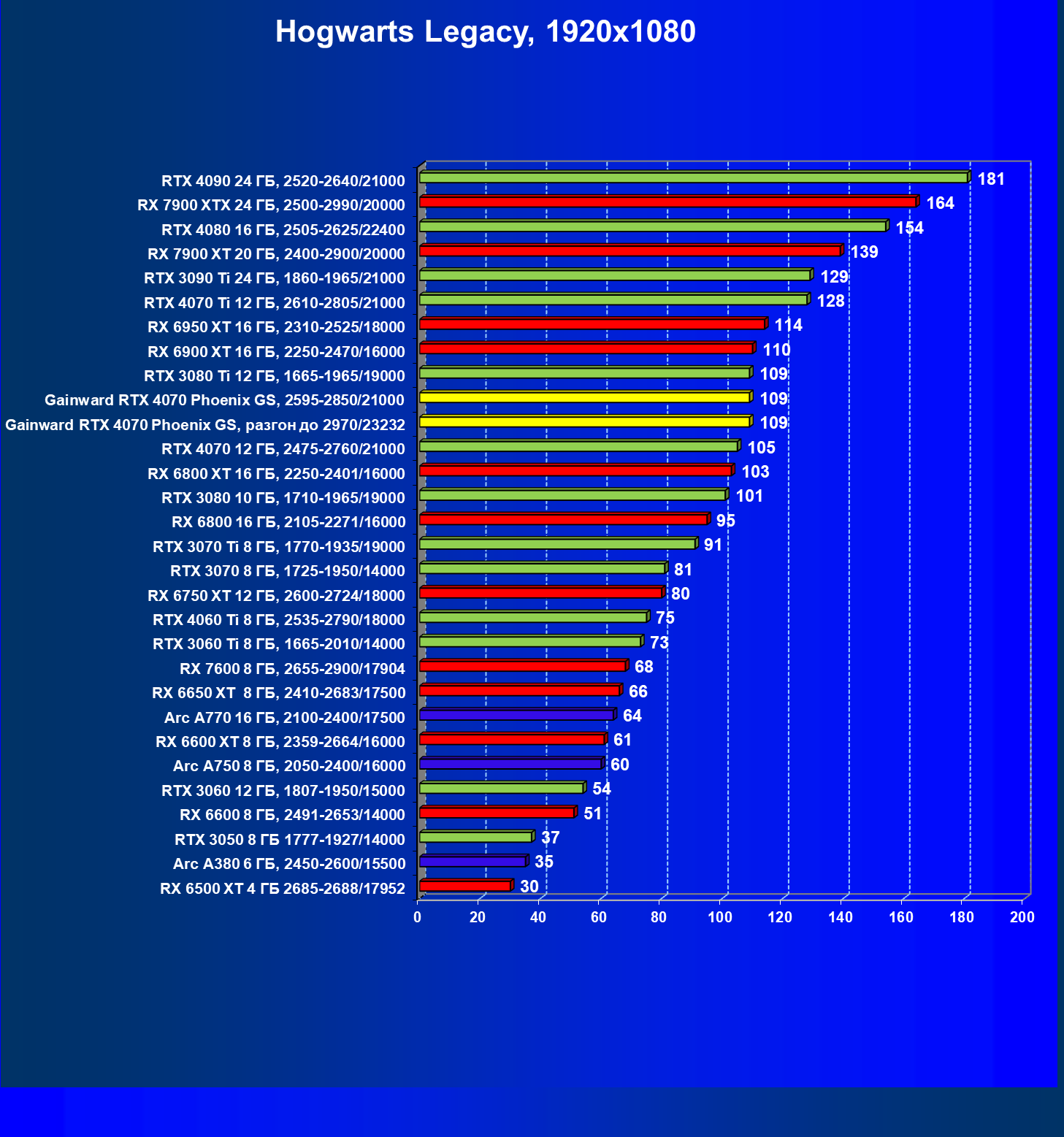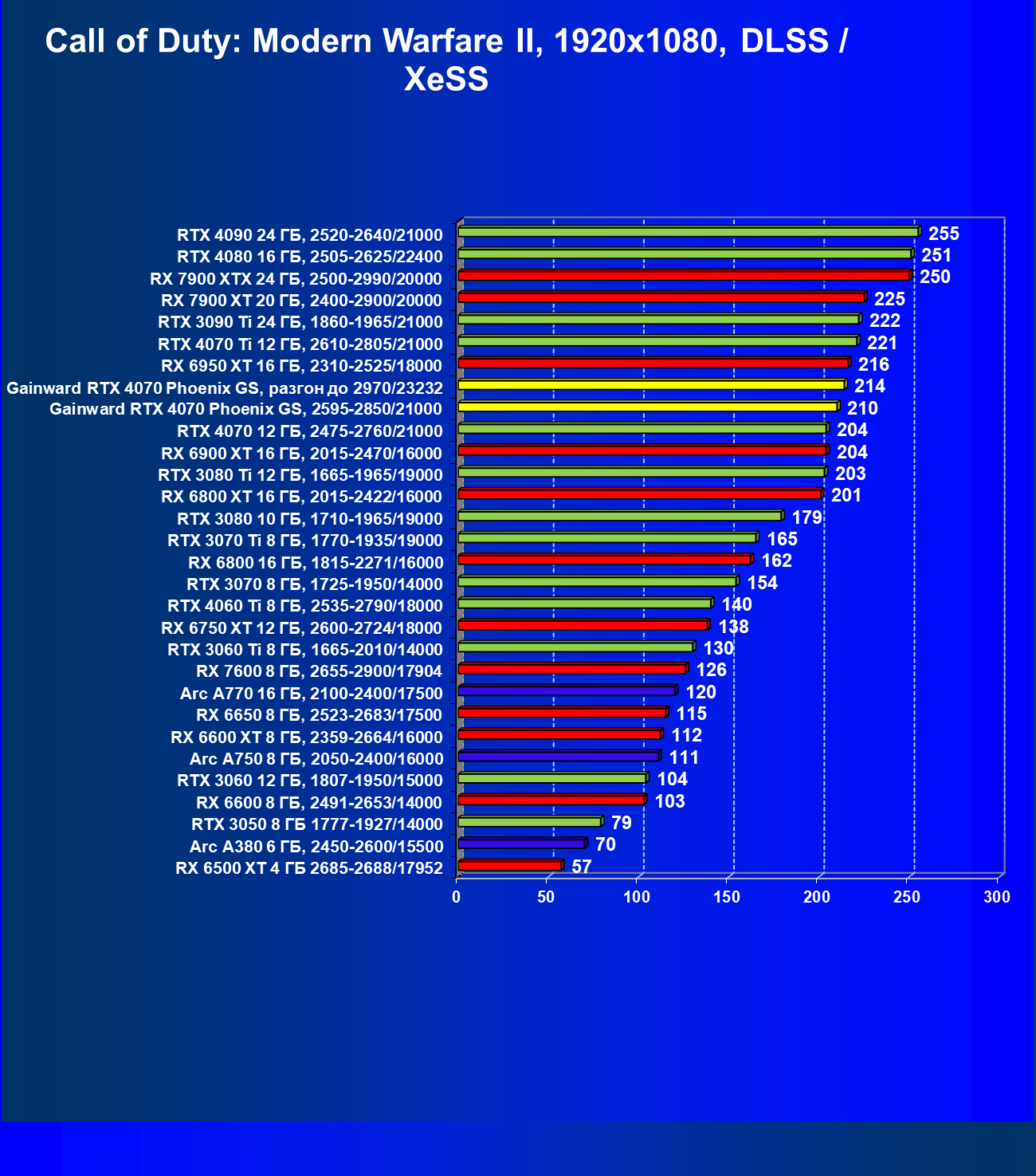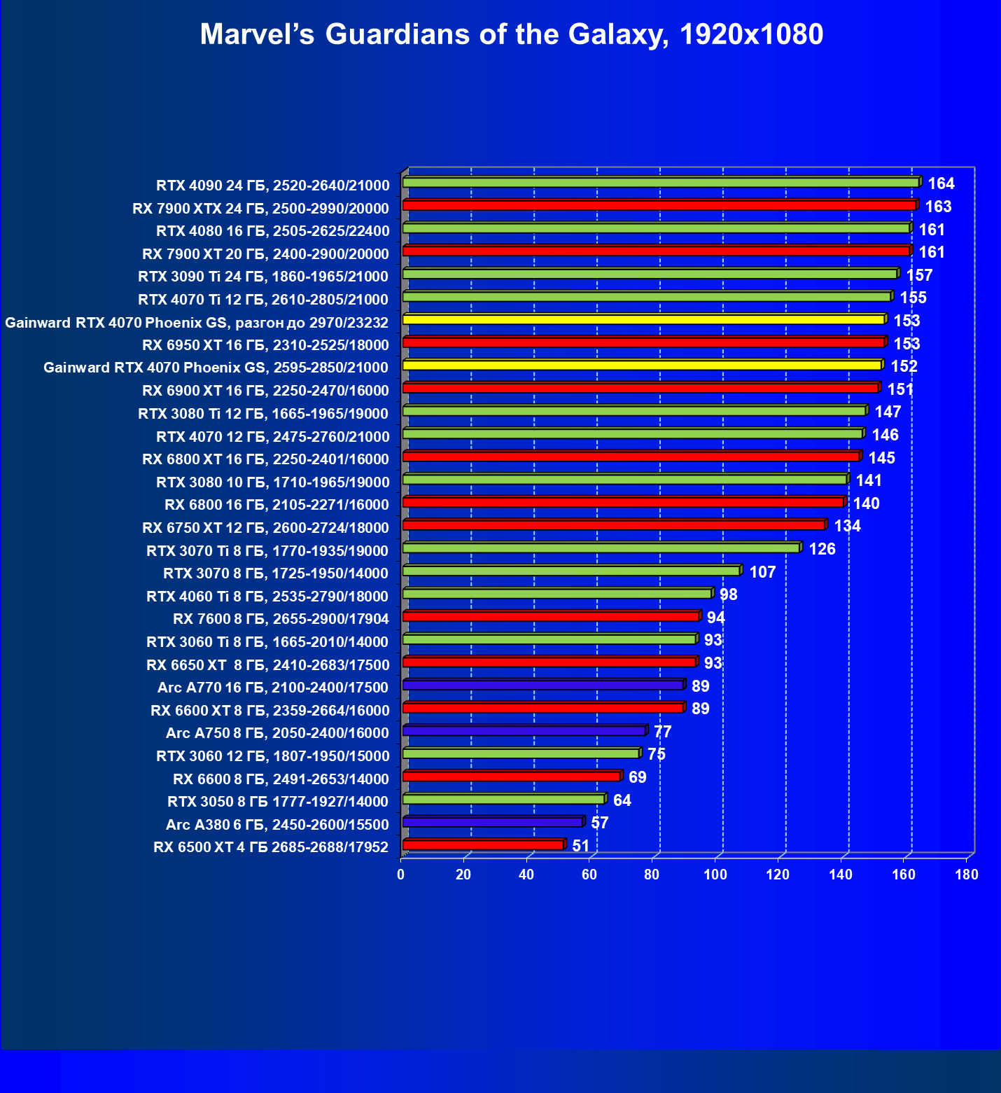 | 09 | Gainward RTX 4070 Phoenix GS, 2595—2850/21000 | 133 | 760 | 57 000 |