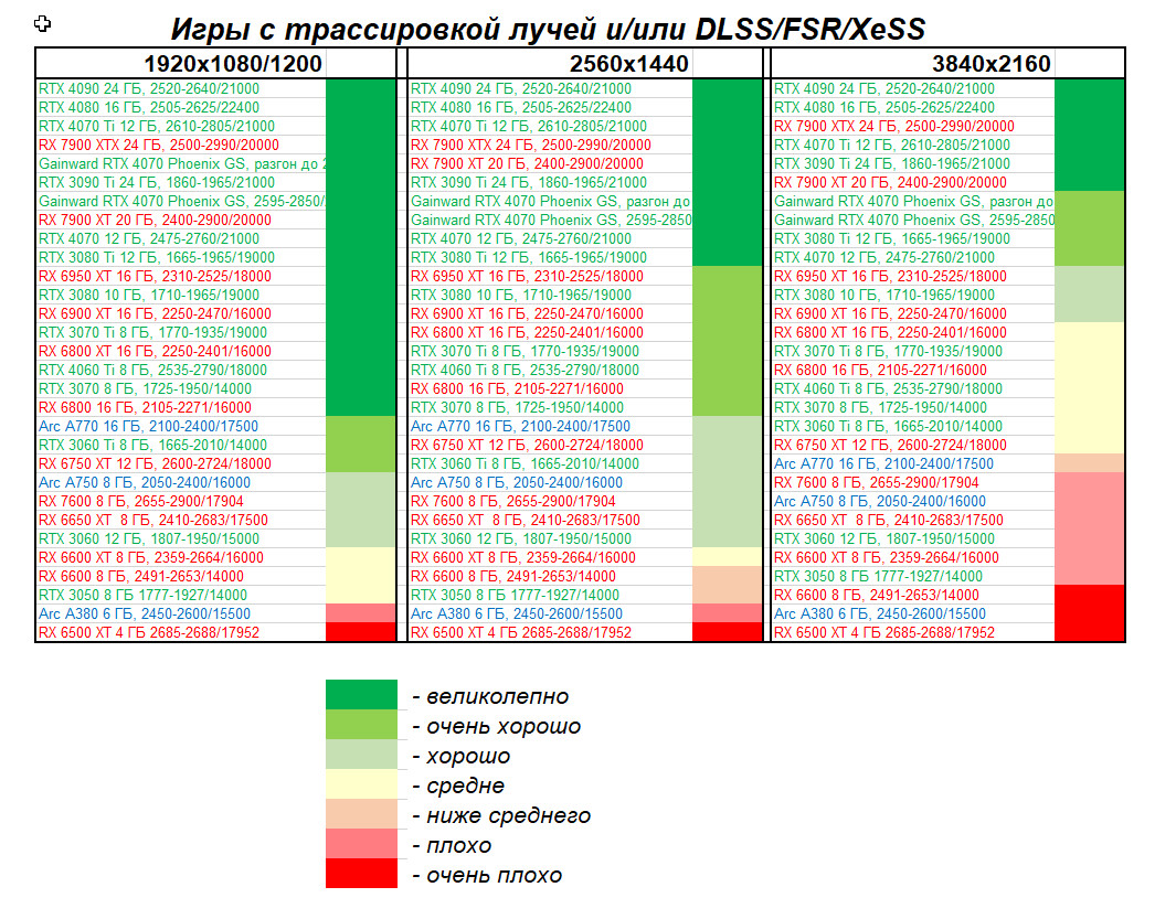 - Вариант рейтинга iXBT.com с включением RT/DLSS/FSR/XeSS