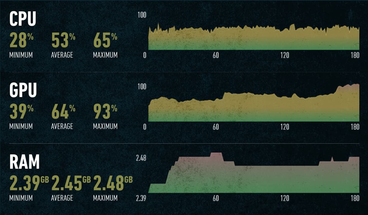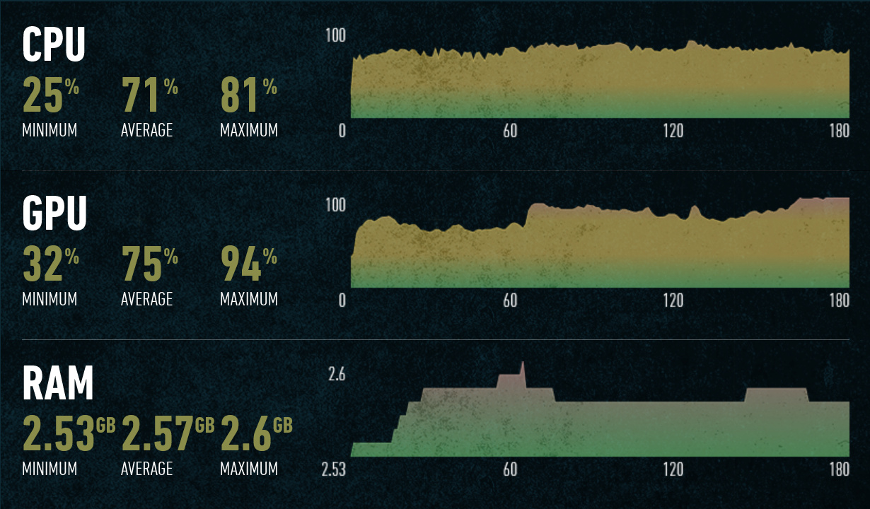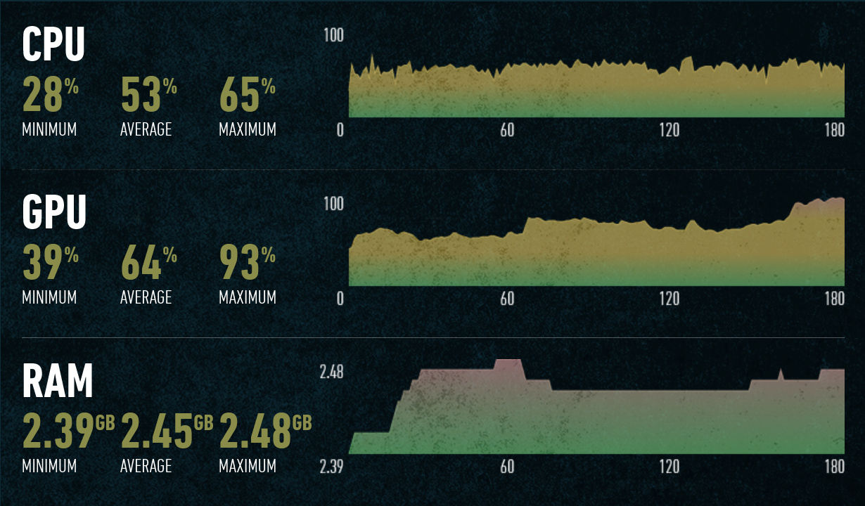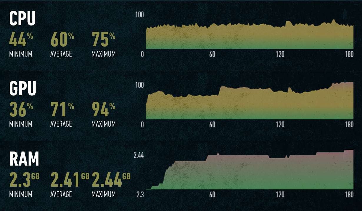 Отлично видно разницу в скорости, в зависимости от поколения Ryzen. Разница в частоте кадров у четырех поколений этих CPU оказалась весьма значительной, если Ryzen 7 1700 показывает 90—130 FPS, смена его на Ryzen 7 2700X дает уже 100—160 FPS, повышение до Ryzen 7 3700X дает дальнейший рост скорости до 140—180 FPS, ну а Ryzen 7 5800X показывает еще большую скорость — до 260 FPS. Разница в архитектурах Zen(+), Zen 2 и Zen 3 тут отлично видна.