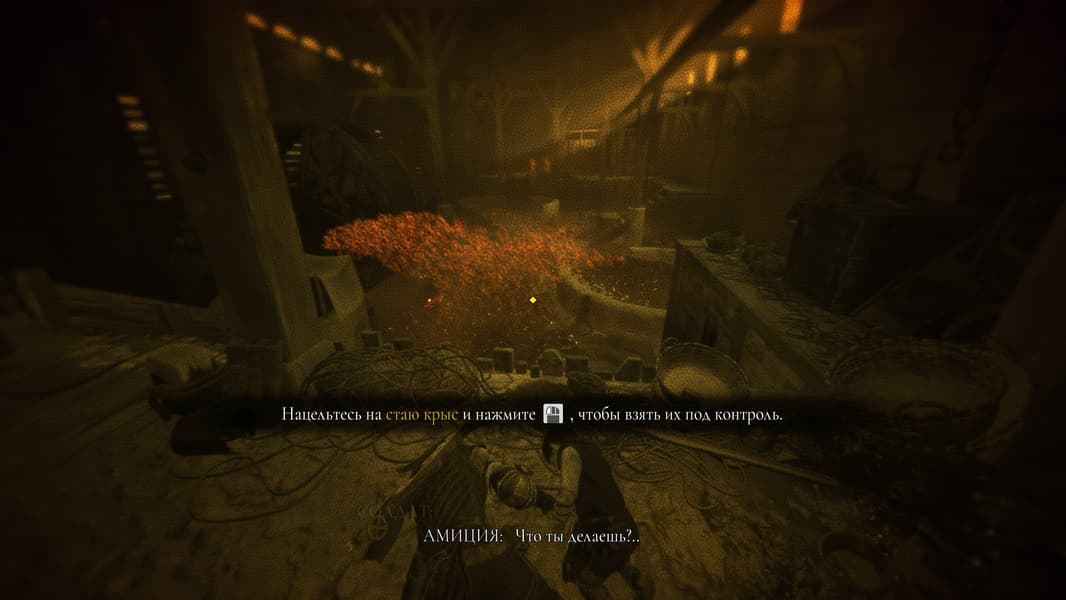 Амиция по-началу вооружена пращей и вырубает стражников без шлема одной левой, что приносит удовольствие, особенно когда на нас «прет» приличное количество суровых мужиков. Позже появится арбалет, что сделает нас более опасными. По ходу прохождения сюжета нашей героине даются разные возможности борьбы с крысами. От простого поджигания факелов и костров до кидания в крыс кувшинчиков со спиртом, который горит недолго, однако позволяет немного проскочить через очередную крысиную орду.