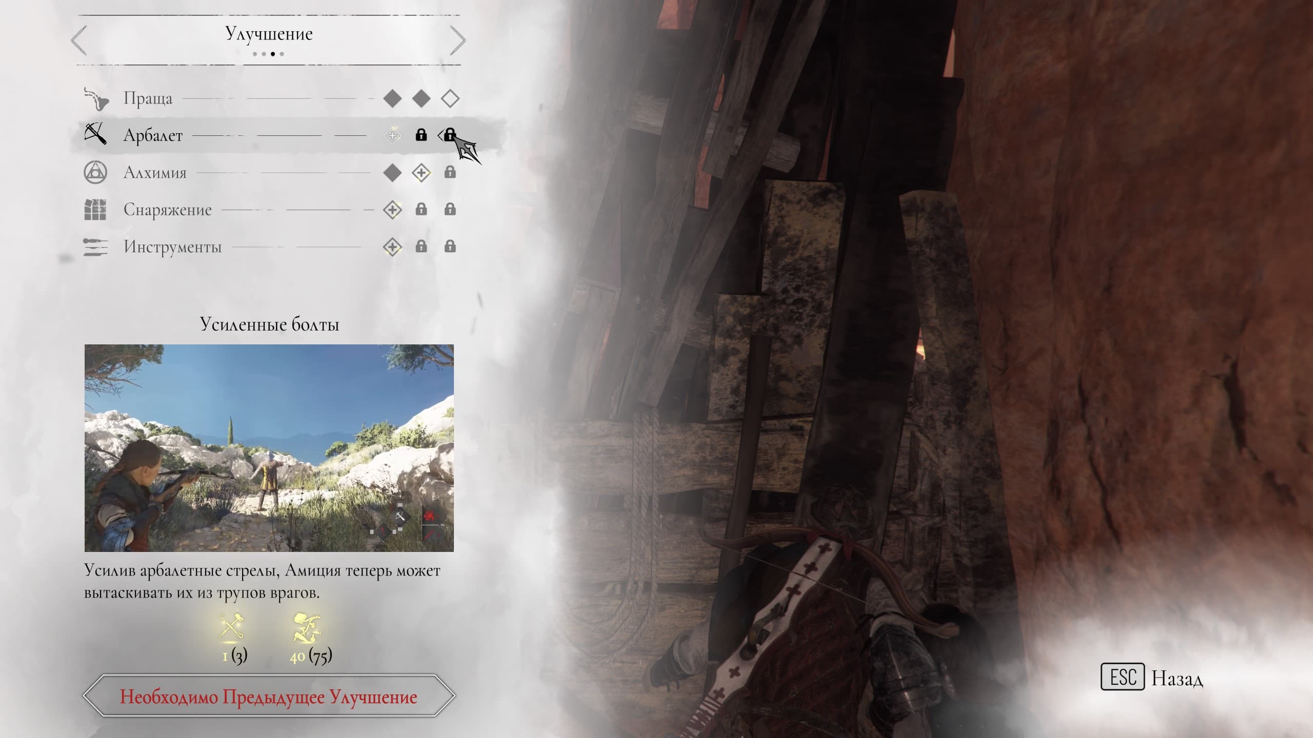 Также «прокачиваются» навыки, позволяющие перемещаться еще тише или иметь в своем арсенале больше горшочков с горючим. Горшки и алхимические примочки в игре можно встретить почти на каждом повороте, и не нужно бояться, что из-за крыс вам не удалось открыть труднодоступный ящик, – в скором времени на пути вам попадется другой. Вариант «прокачки» навыков таков, что мы либо совершенствуем свою скрытность и тихое перемещение, либо получаем более агрессивные навыки боёв. Снаряжение Амиции можно модернизировать, как и во многих других играх, на верстаках.