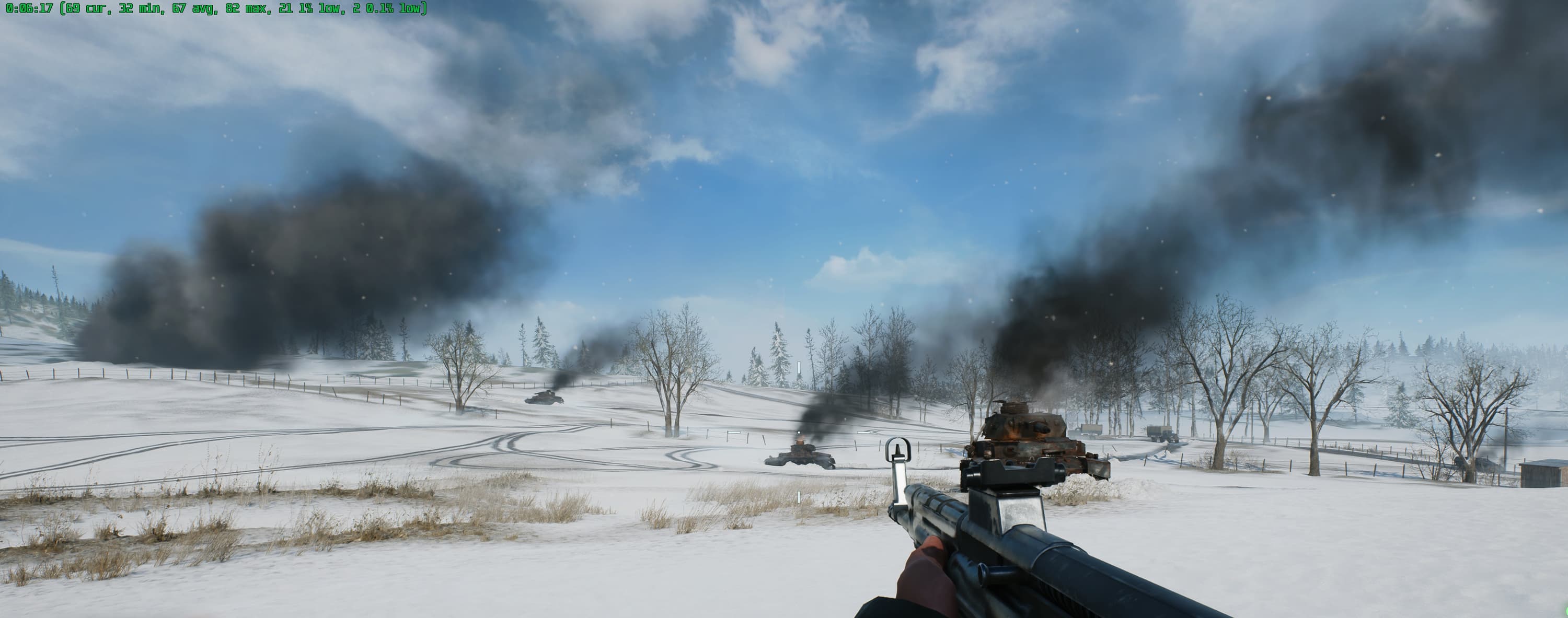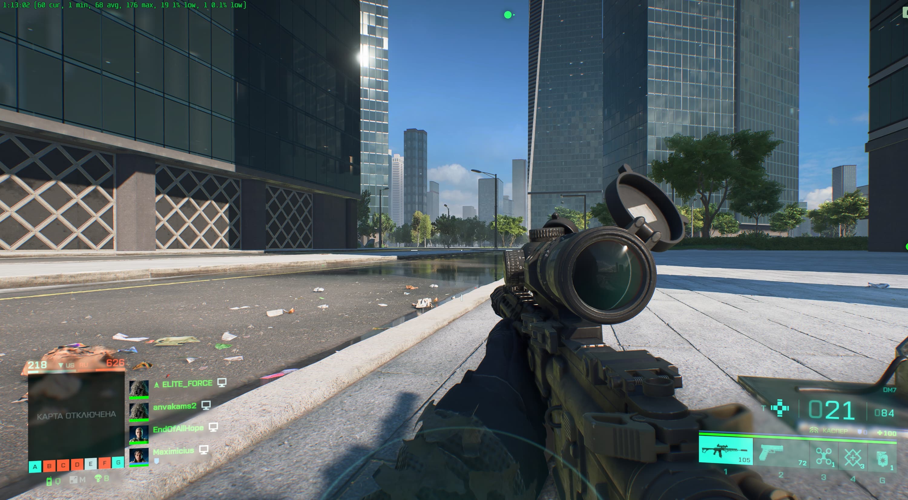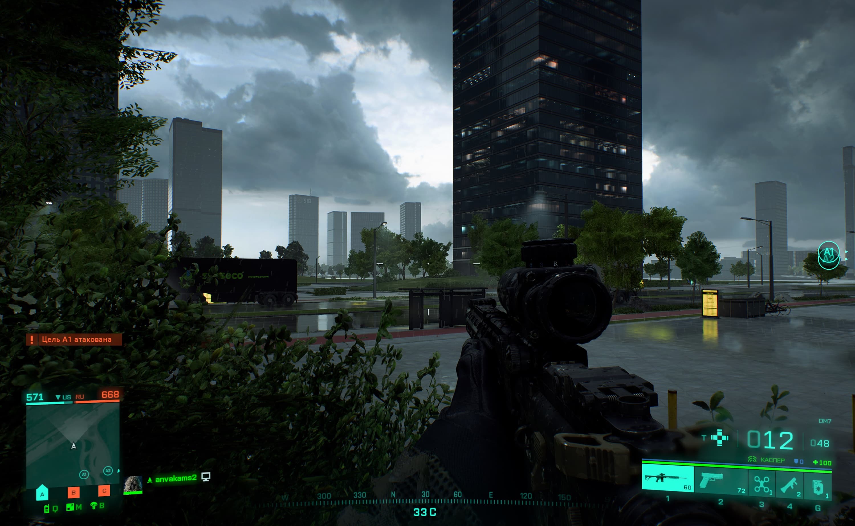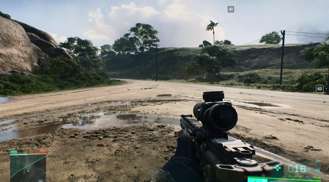 Хочу сразу отметить, что в Battlefield 2042 имеется поддержка трассировки лучей (RT), однако существенного изменения графики с включением этой технологии ожидать не стоит, поэтому играя на старых или младших видеокартах, вы теряете не так уж много. Игра хорошо оптимизирована, и в местах, где требуется детальная прорисовка для реалистичности, эта реалистичность вполне обеспечивается и без трассировки лучей: видны отражения в лужах, дым и огонь от техники и взрывов.